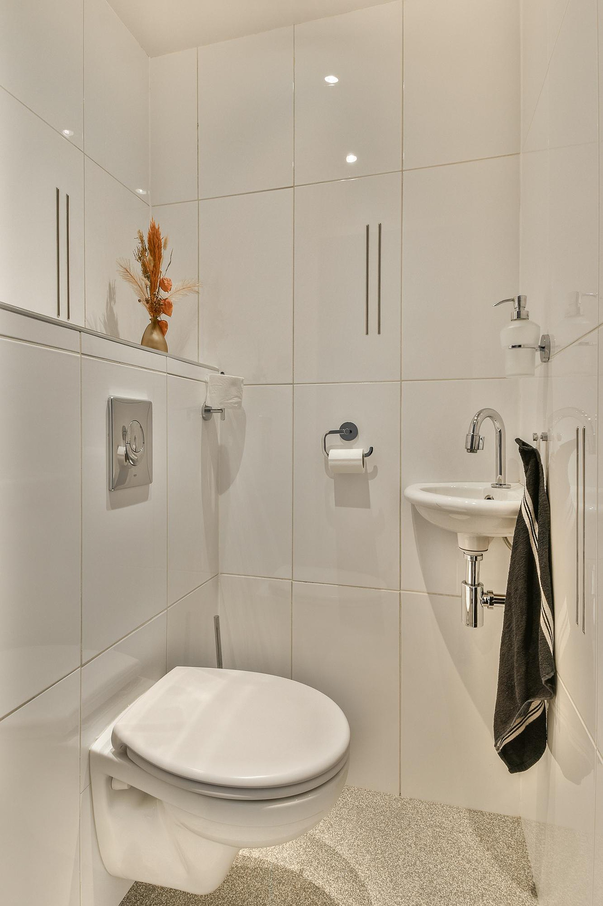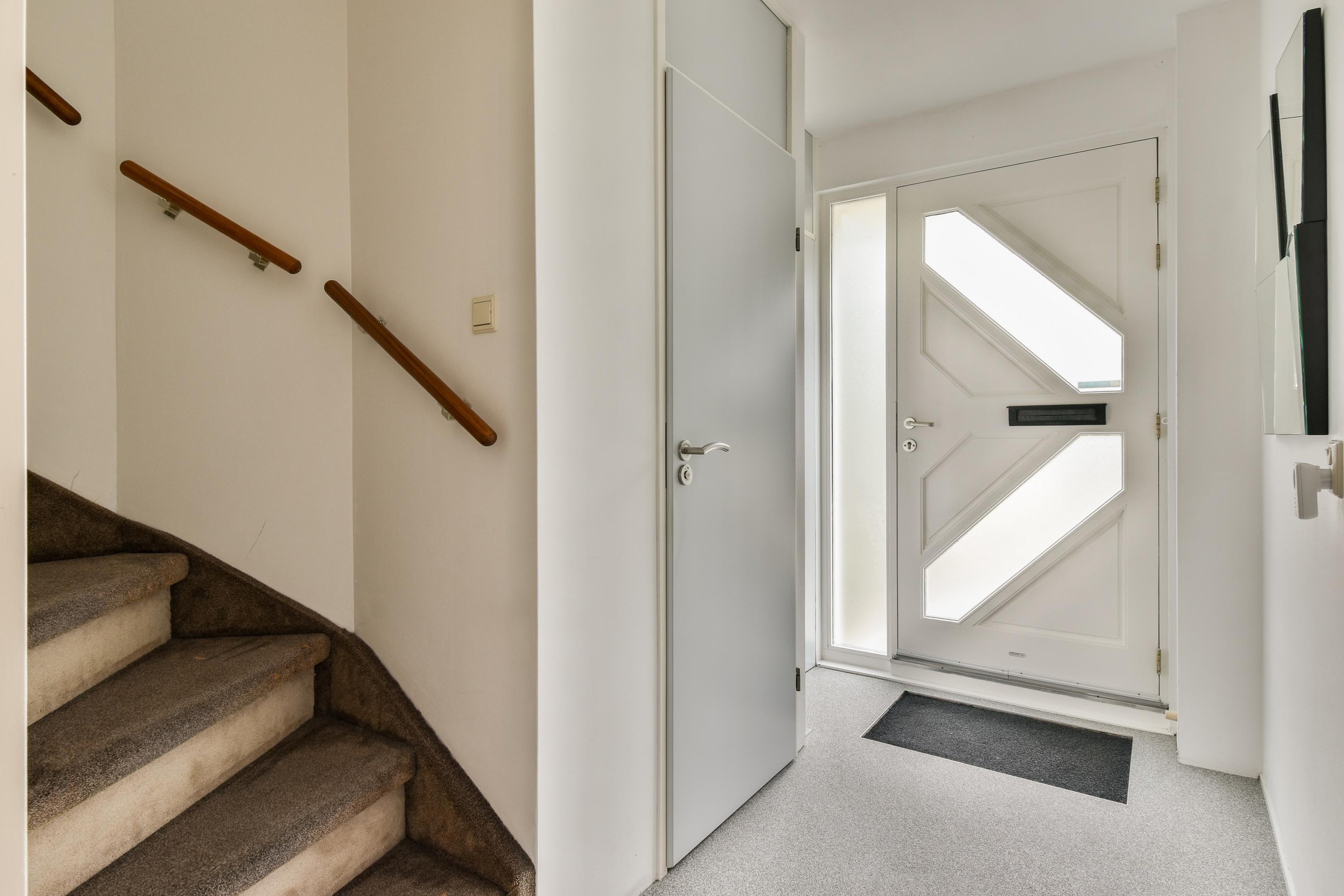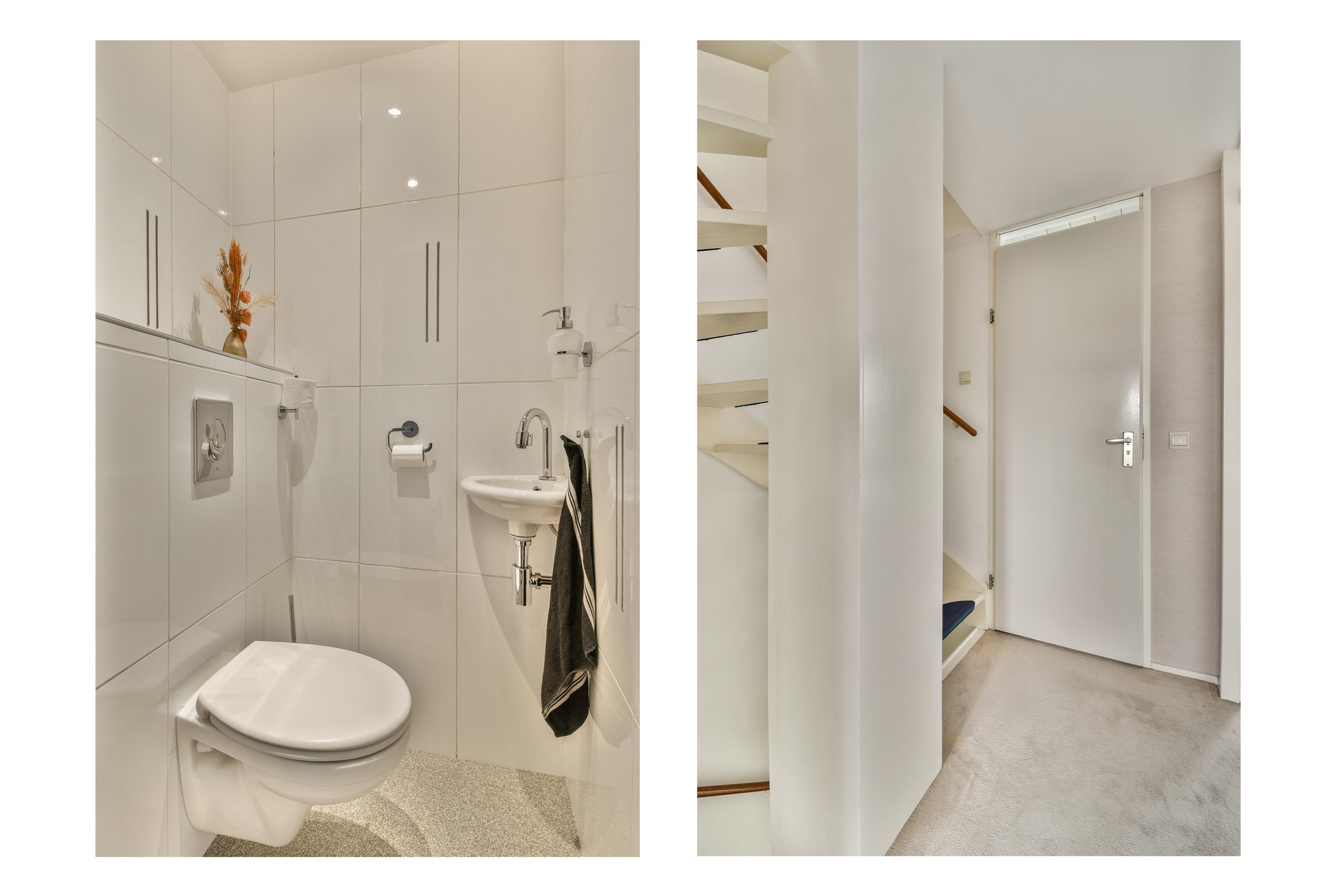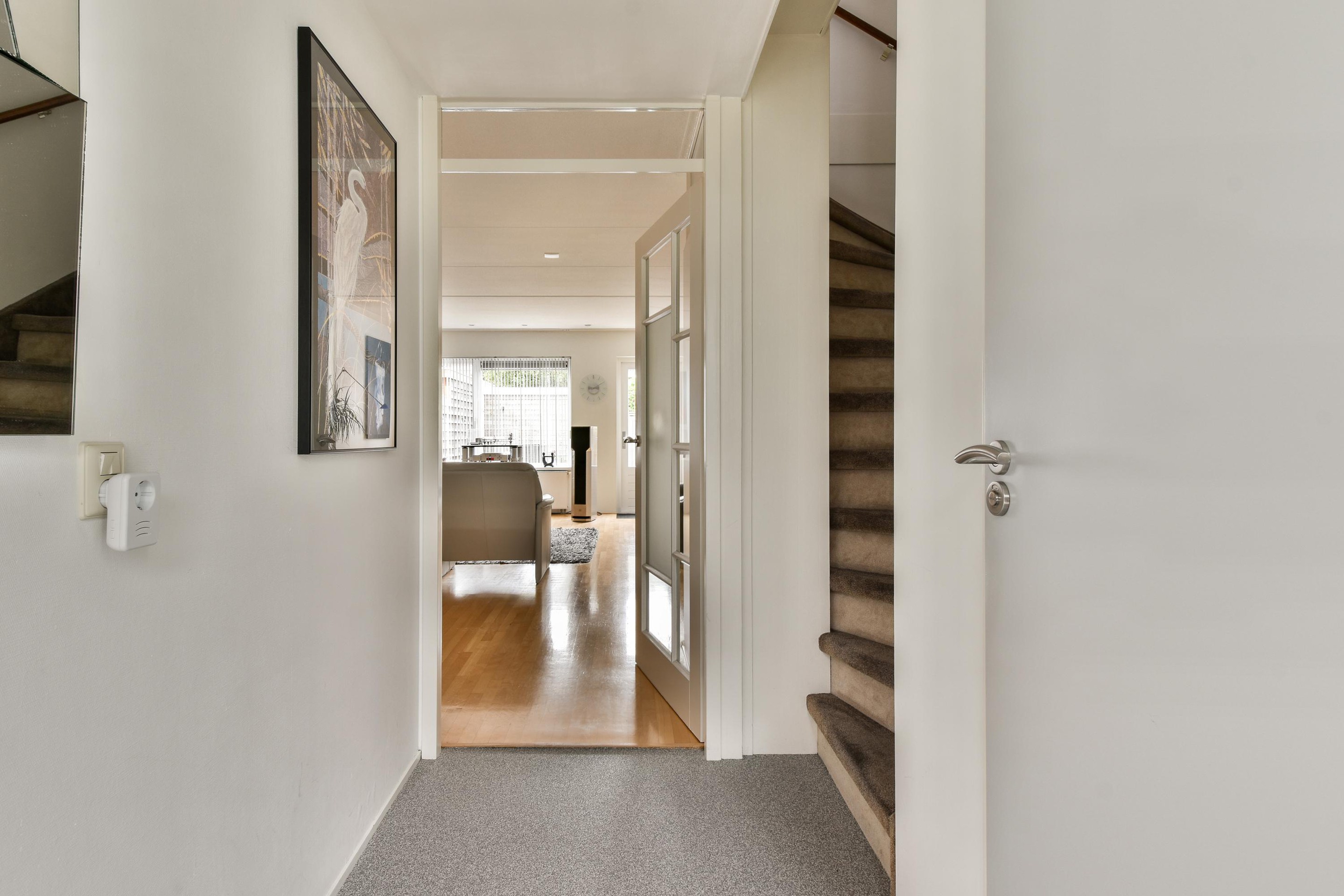Bij binnenkomst in deze fijne woning word je direct welkom geheten in de ruime hal met de meterkast, garderoberuimte, trapopgang naar de eerste verdieping en een modern toilet met stijlvolle afwerking. Hier proef je meteen de verzorgde uitstraling die door de hele woning is doorgevoerd.