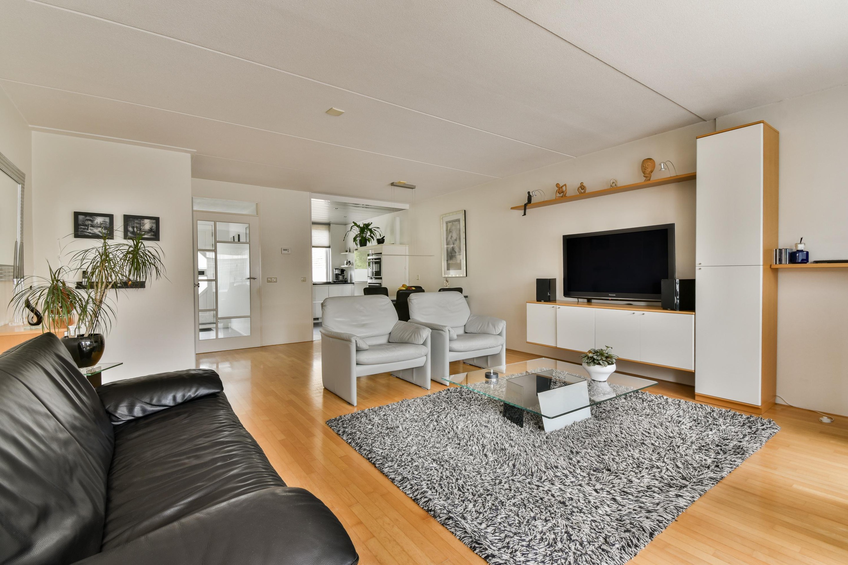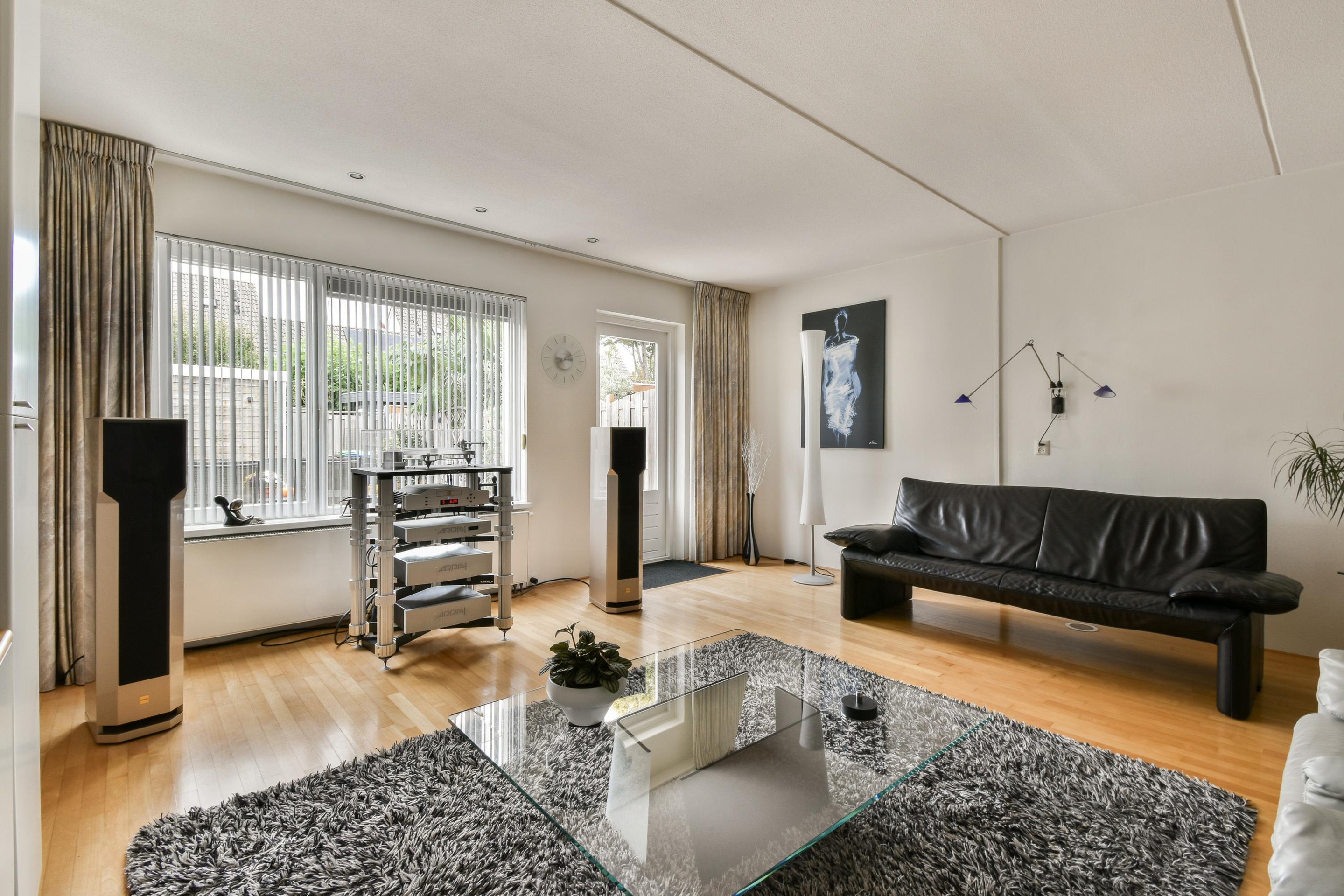 e lichte woonkamer aan de achterzijde is een heerlijke plek om te ontspannen. Dankzij de grote ramen valt er volop daglicht naar binnen, waardoor de ruimte een open en warme sfeer heeft. De uitbouw en de neutrale afwerking vormen samen een perfecte basis voor elke woonstijl. Of je nu gezellig met vrienden borrelt of rustig geniet van een avond op de bank, hier voel je je direct thuis.