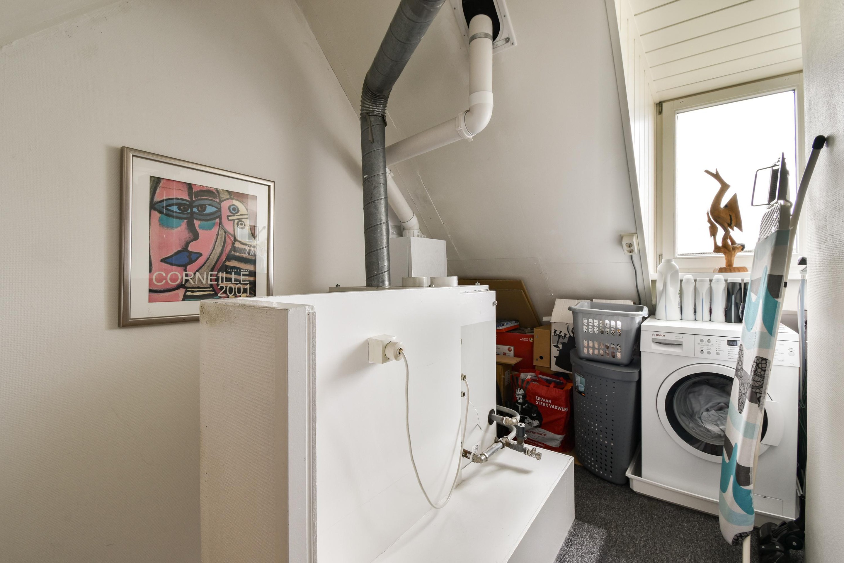Op de overloop gelegen wasmachine en droger aansluiting, de opstelplaats van de Cv-ketel en de hete luchtverwarmingsunit.