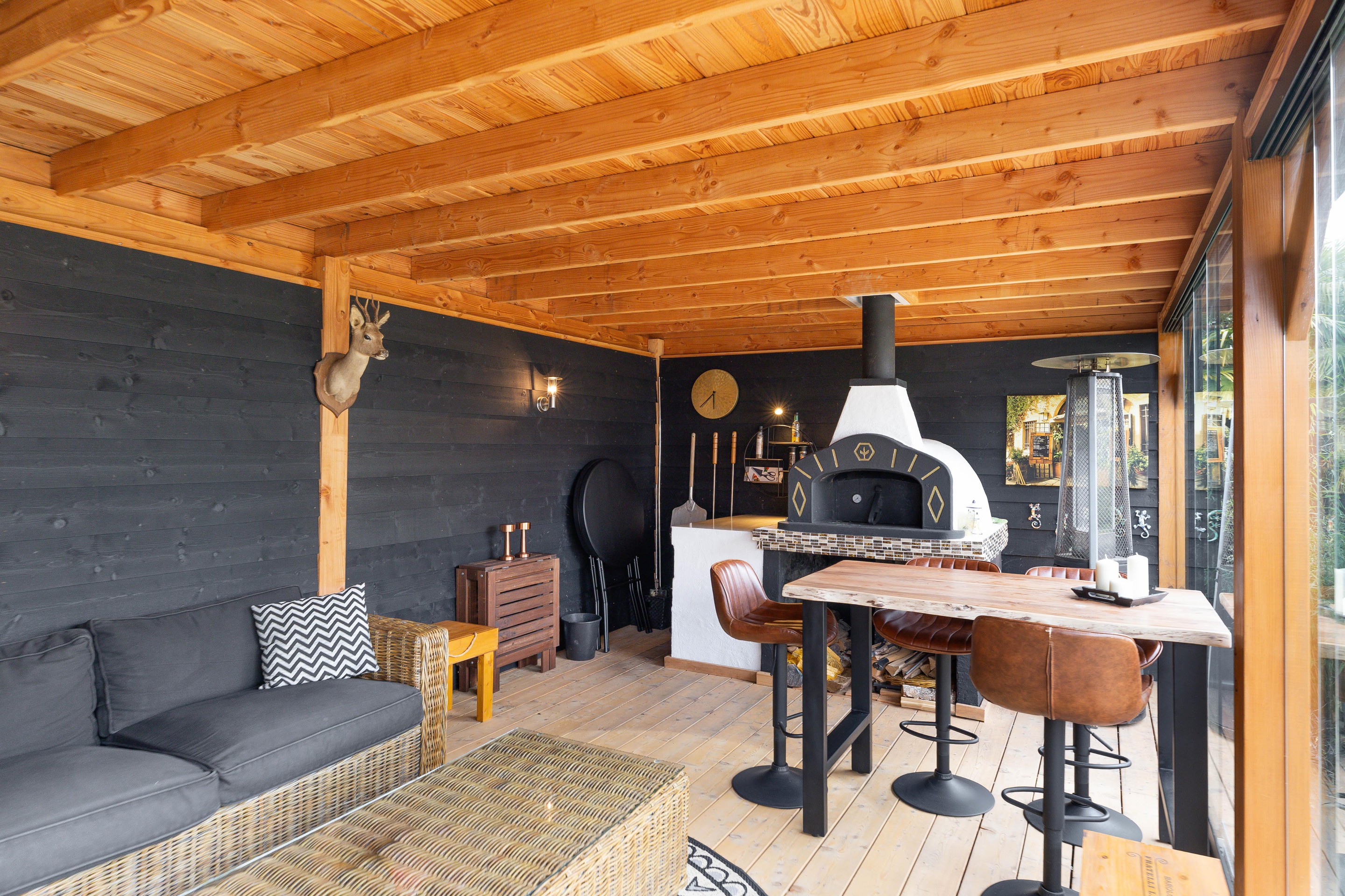 - Luxe afsluitbare overkapping met steenoven/pizza oven;