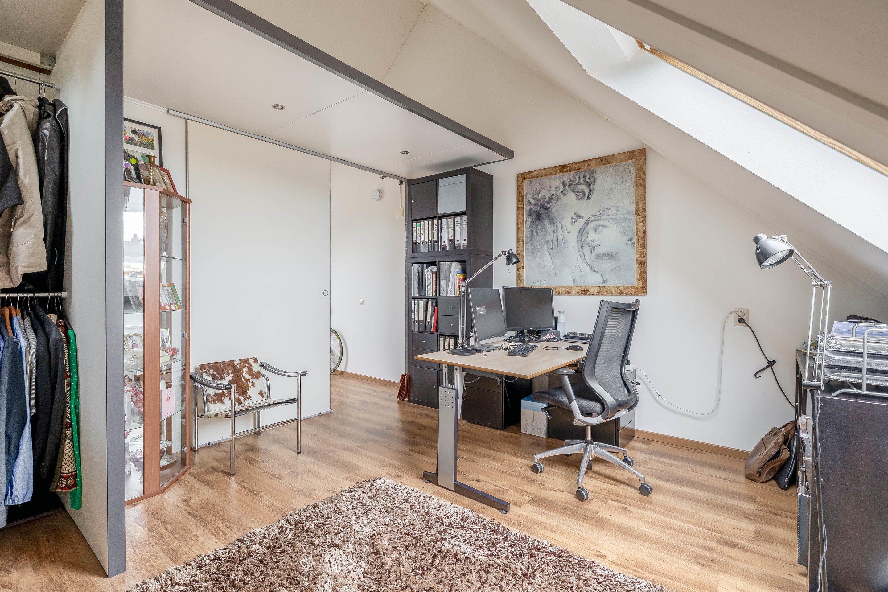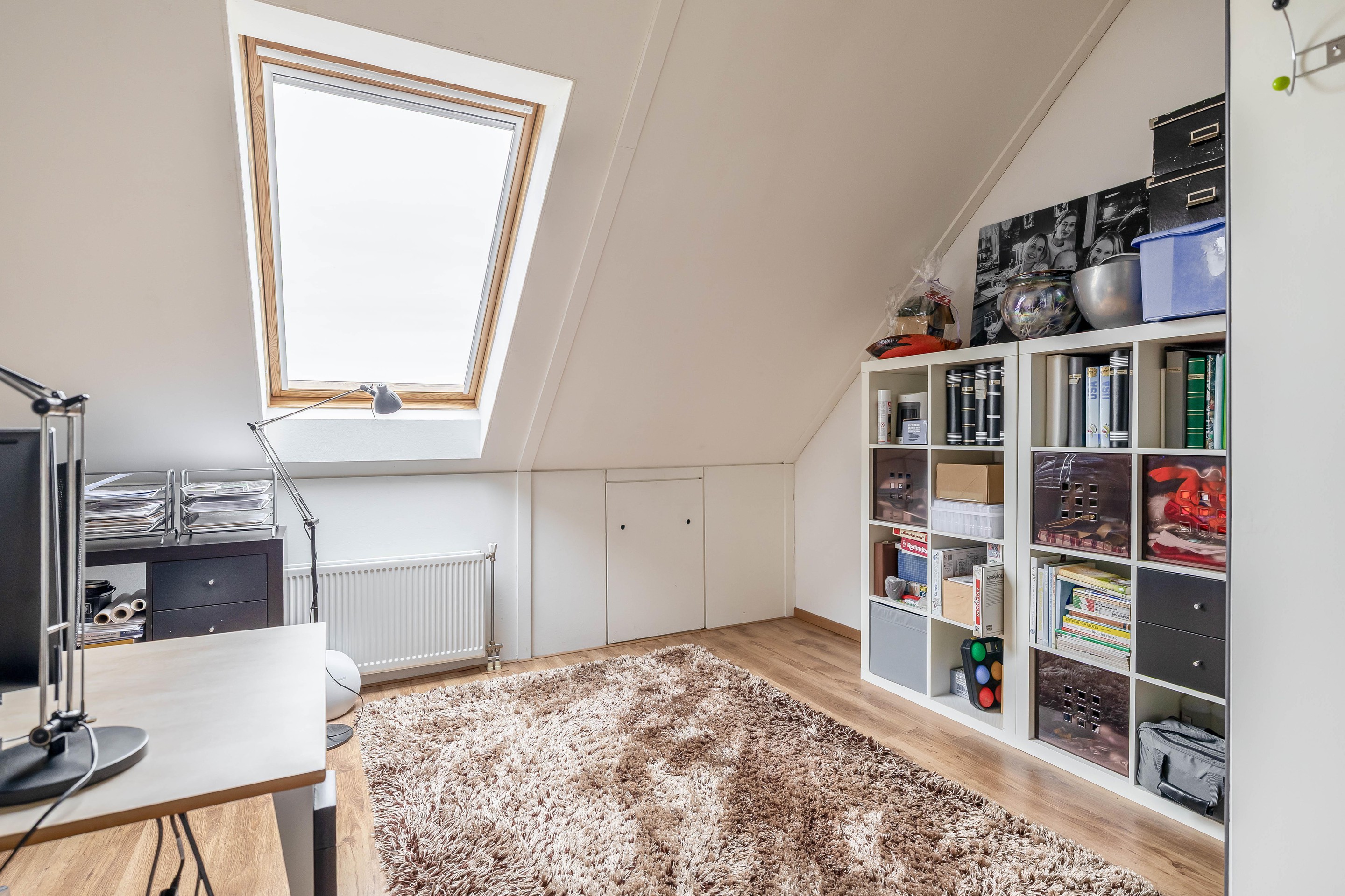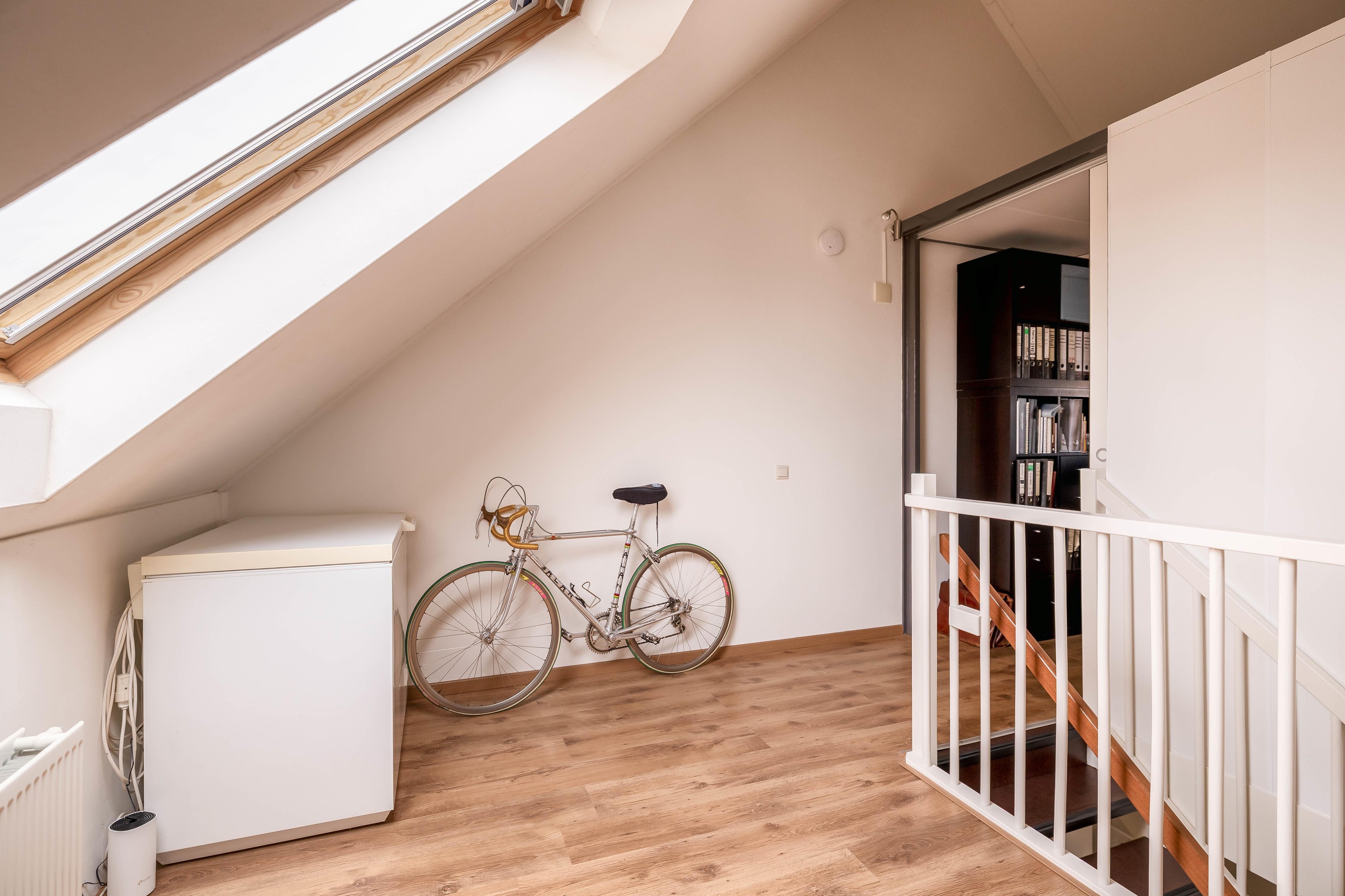 Hier vind je de ruime voorzolder met opstelplaats voor de was apparatuur en de installaties. Ook is er nog een ruime derde slaapkamer en extra bergruimte. Ideaal als slaapkamer, werkplek of hobbyruimte.
