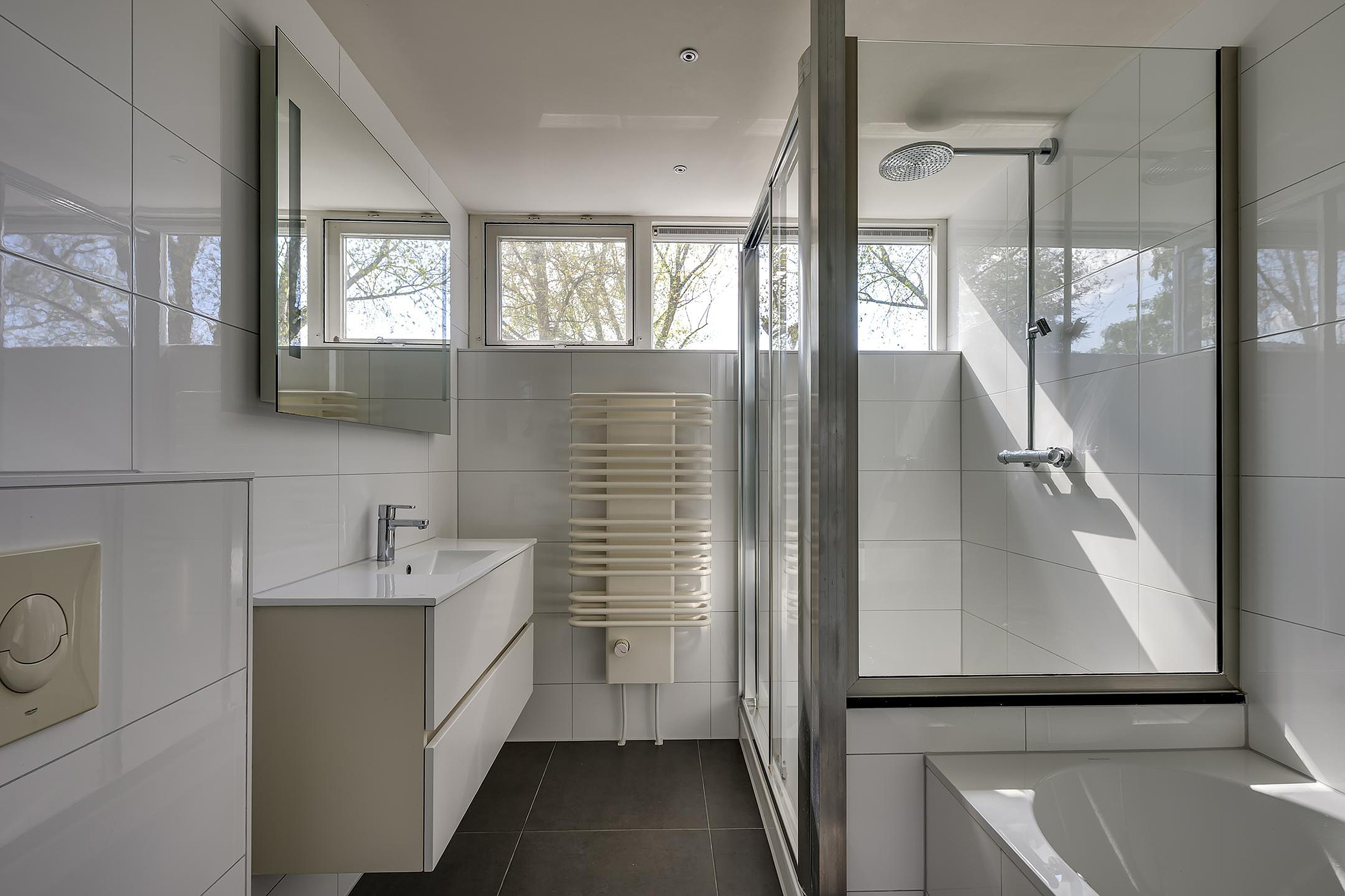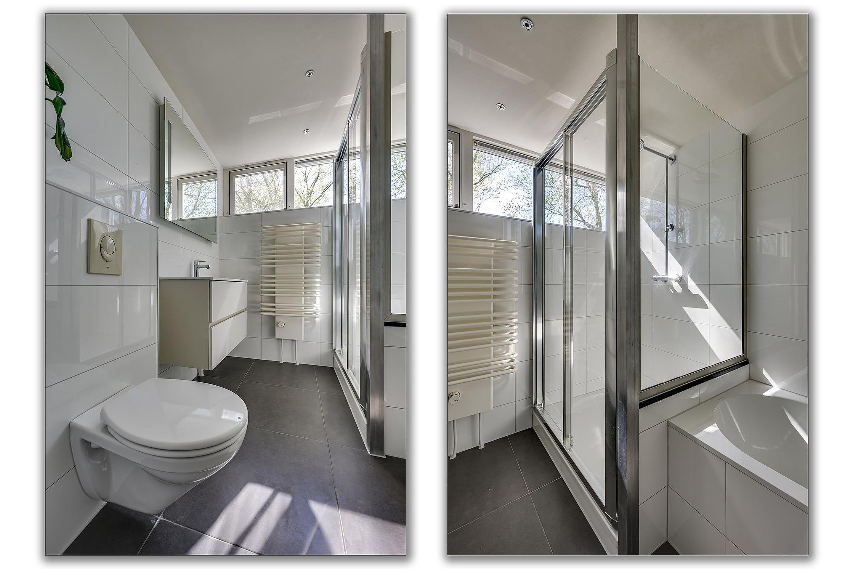 7. Moderne badkamer met ligbad, douche en wastafelmeubel;