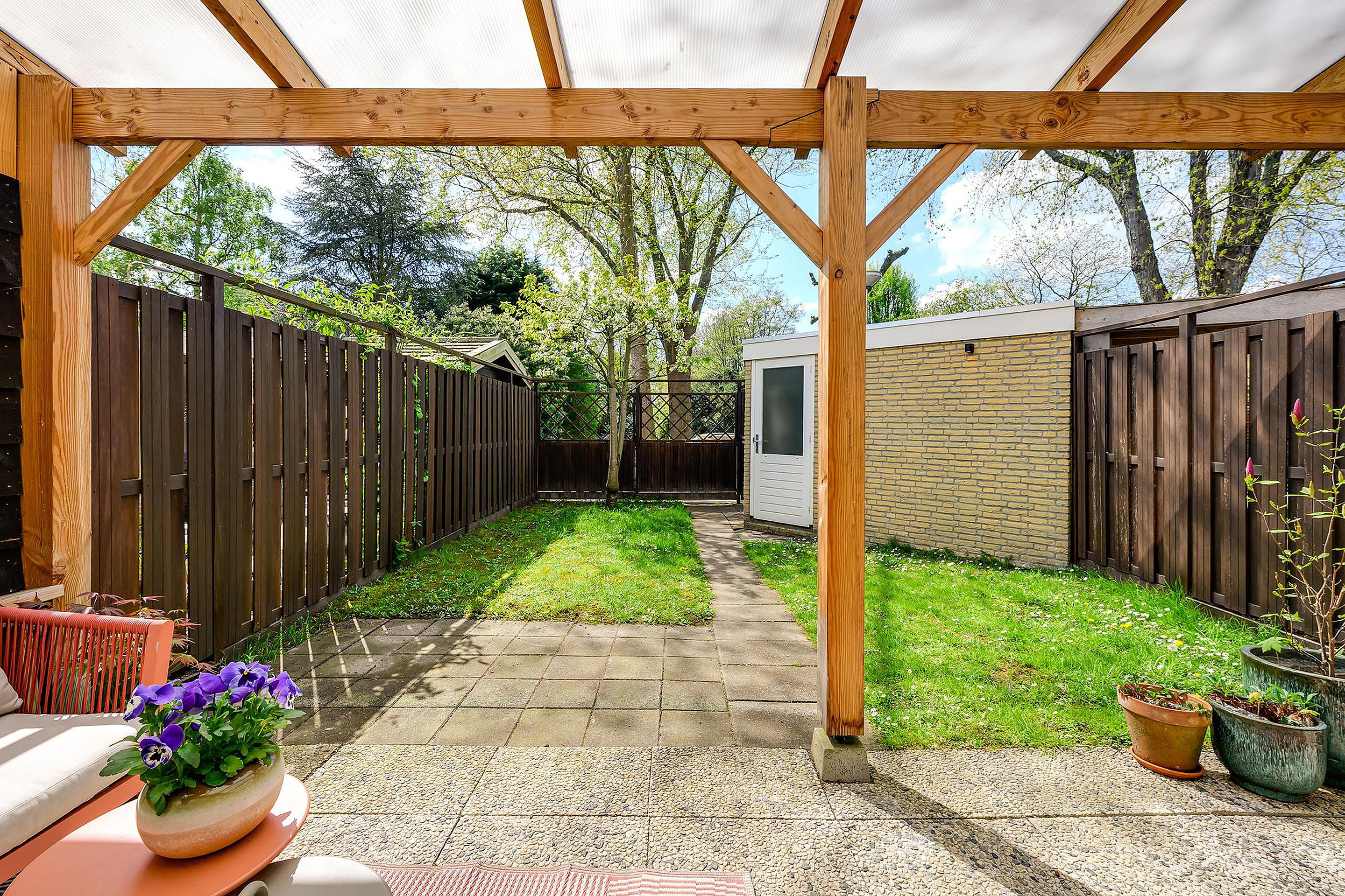 - Achtertuin met overkapping en veel privacy;