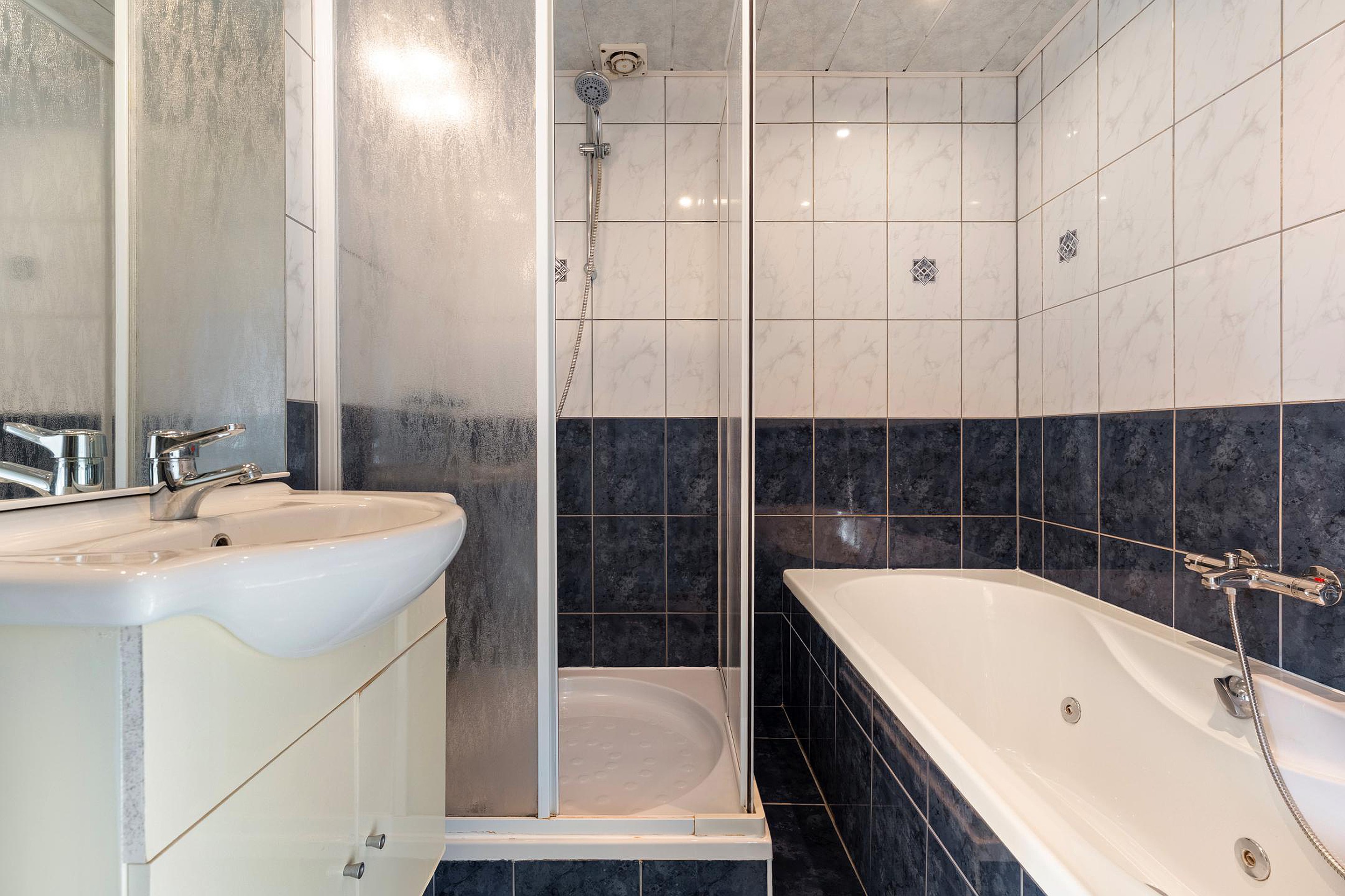 - badkamer met wastafel, douche en ligbad