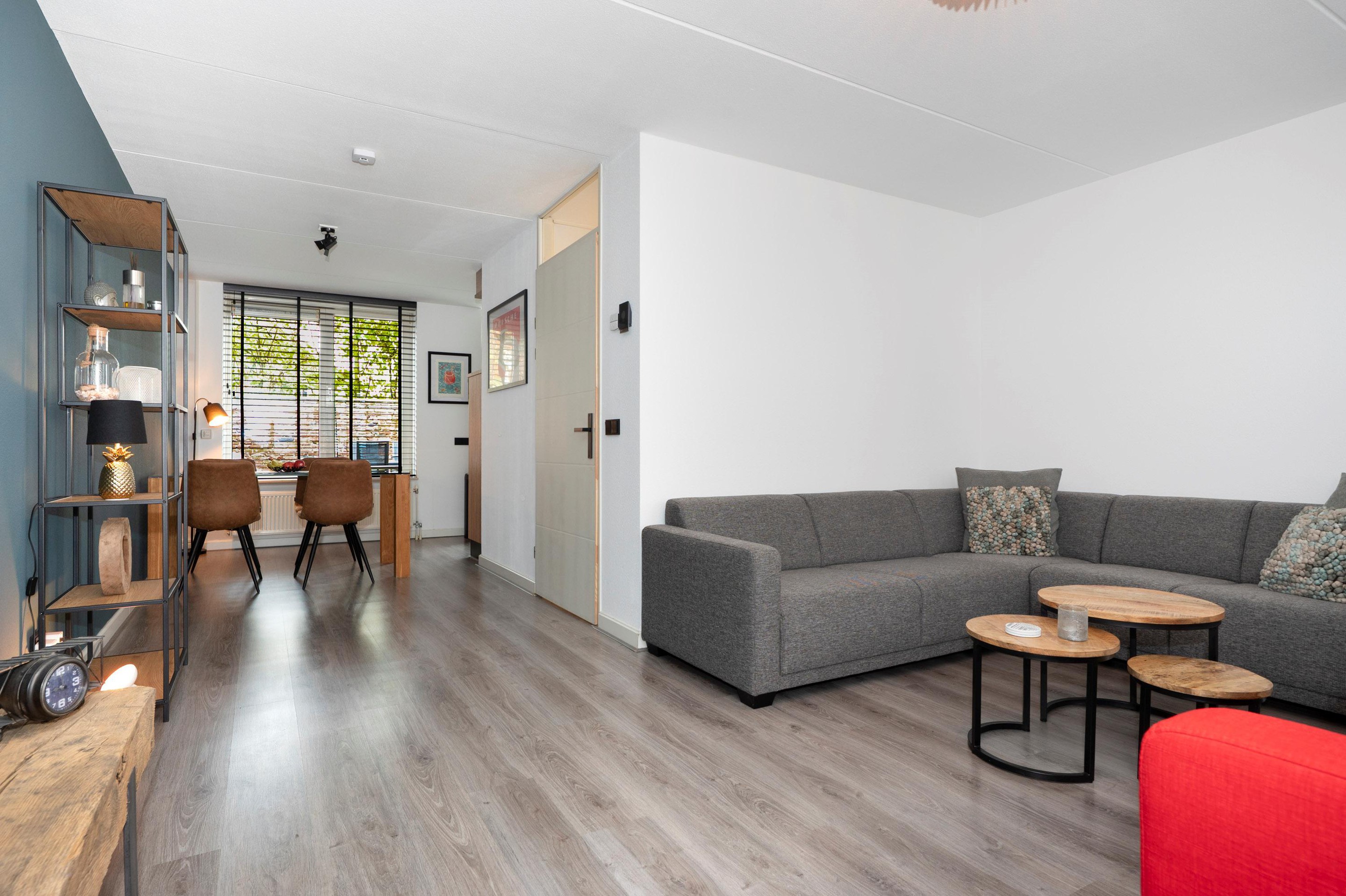 Over de gehele begane grond ligt een laminaatvloer. In de woonkamer hangt een split-unit airco/warmtepomp (2021), waarmee je in elk seizoen de temperatuur eenvoudig regelt.
