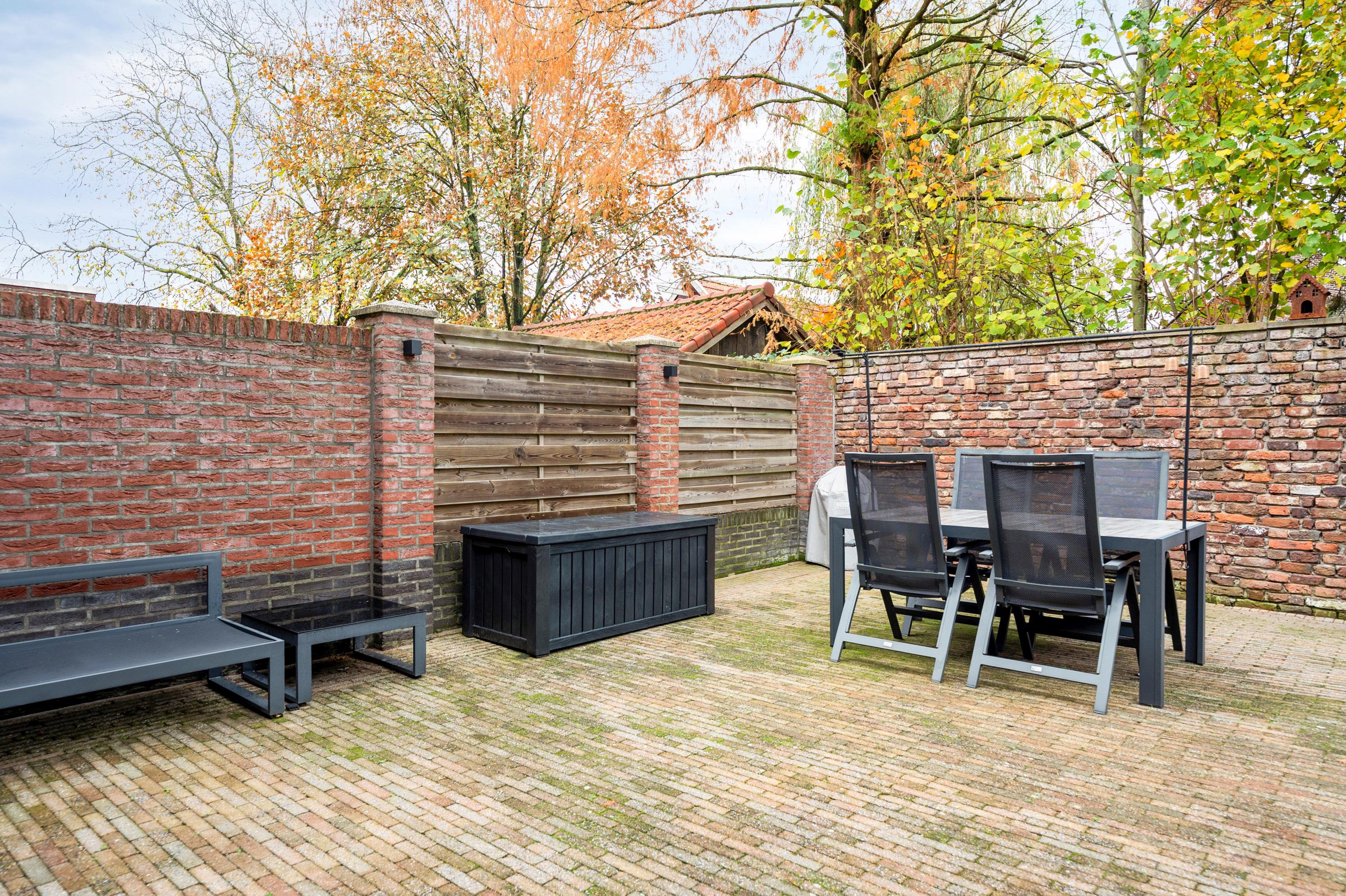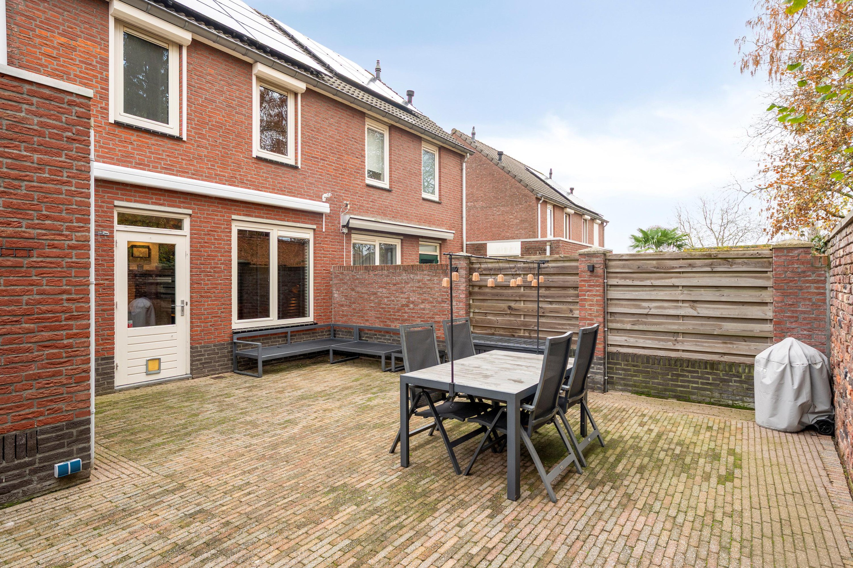 Vanuit de keuken loop je zo de onderhoudsarme, volledig beklinkerde tuin in met veel privacy, een heerlijke plek. Daarnaast is de tuin voorzien van een elektrisch bedienbaar zonnescherm, zodat je op zonnige dagen heerlijk in de schaduw kunt zitten.