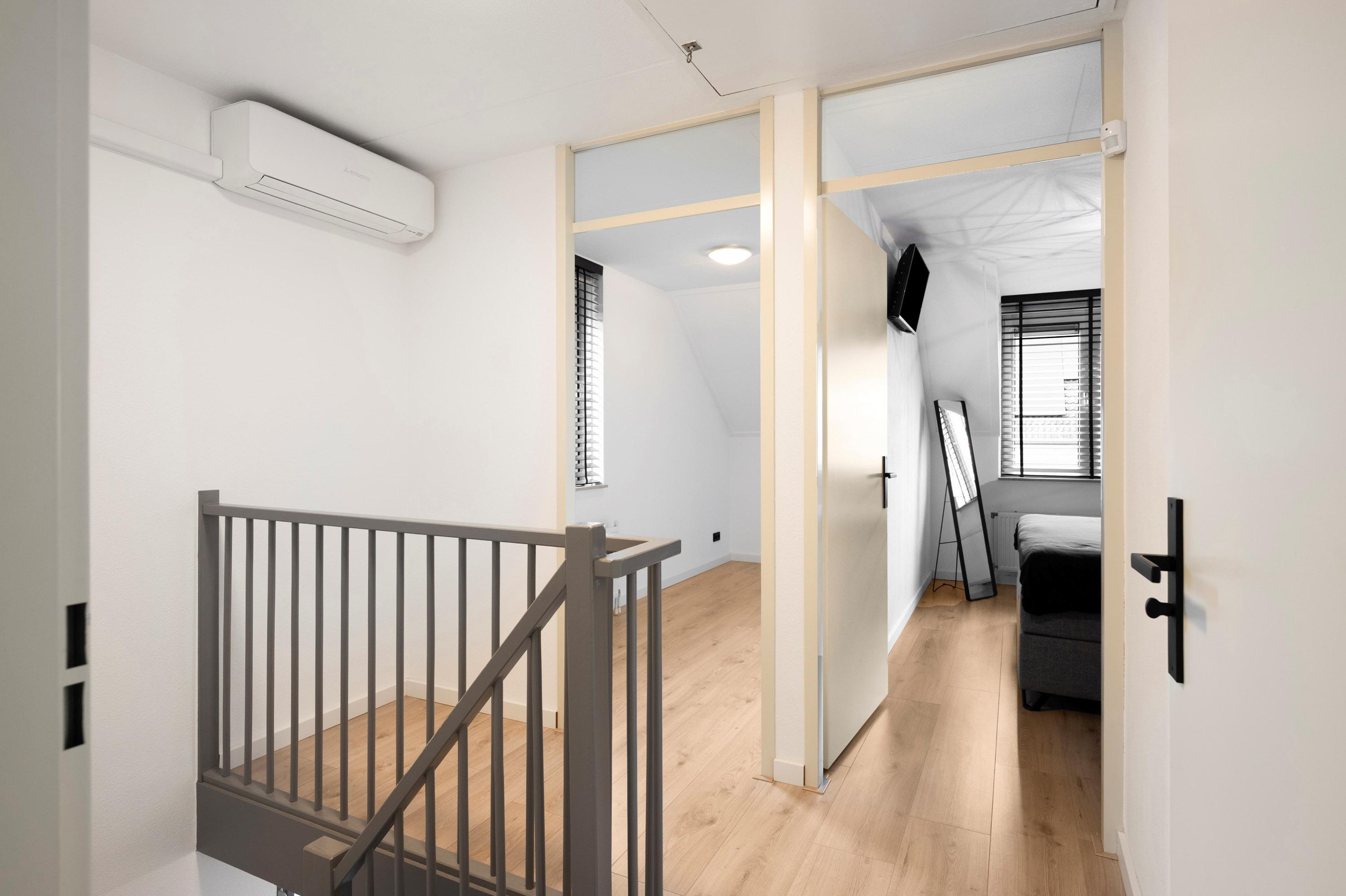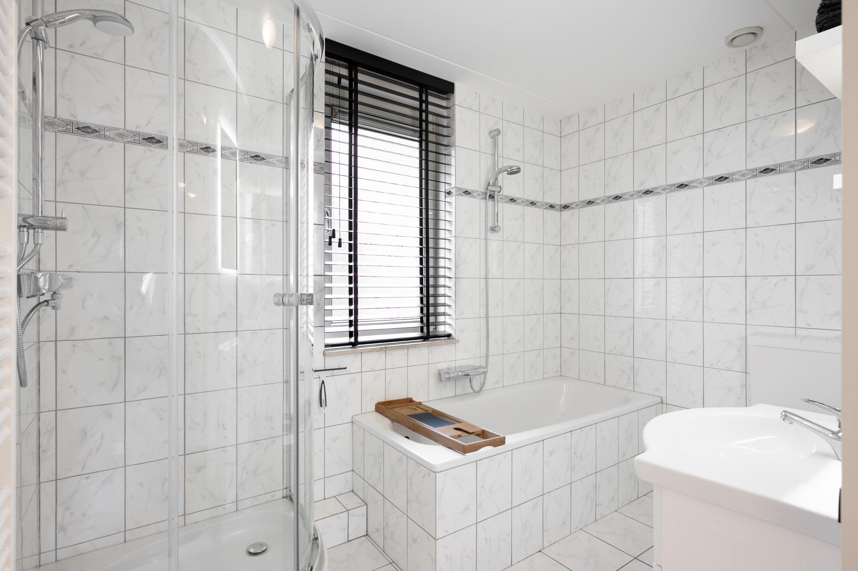 Lichte overloop, drie slaapkamers (twee met handige inbouwkasten) en een keurige, volledig betegelde badkamer met douche, ligbad, was meubel, designradiator en tweede toilet. Ook op deze verdieping zie je een moderne laminaatvloer terug. In de overloop hangt een split-unit airco/warmtepomp (2020) waarmee je in elk seizoen de temperatuur eenvoudig regelt. De ramen zijn voorzien van rolluiken.