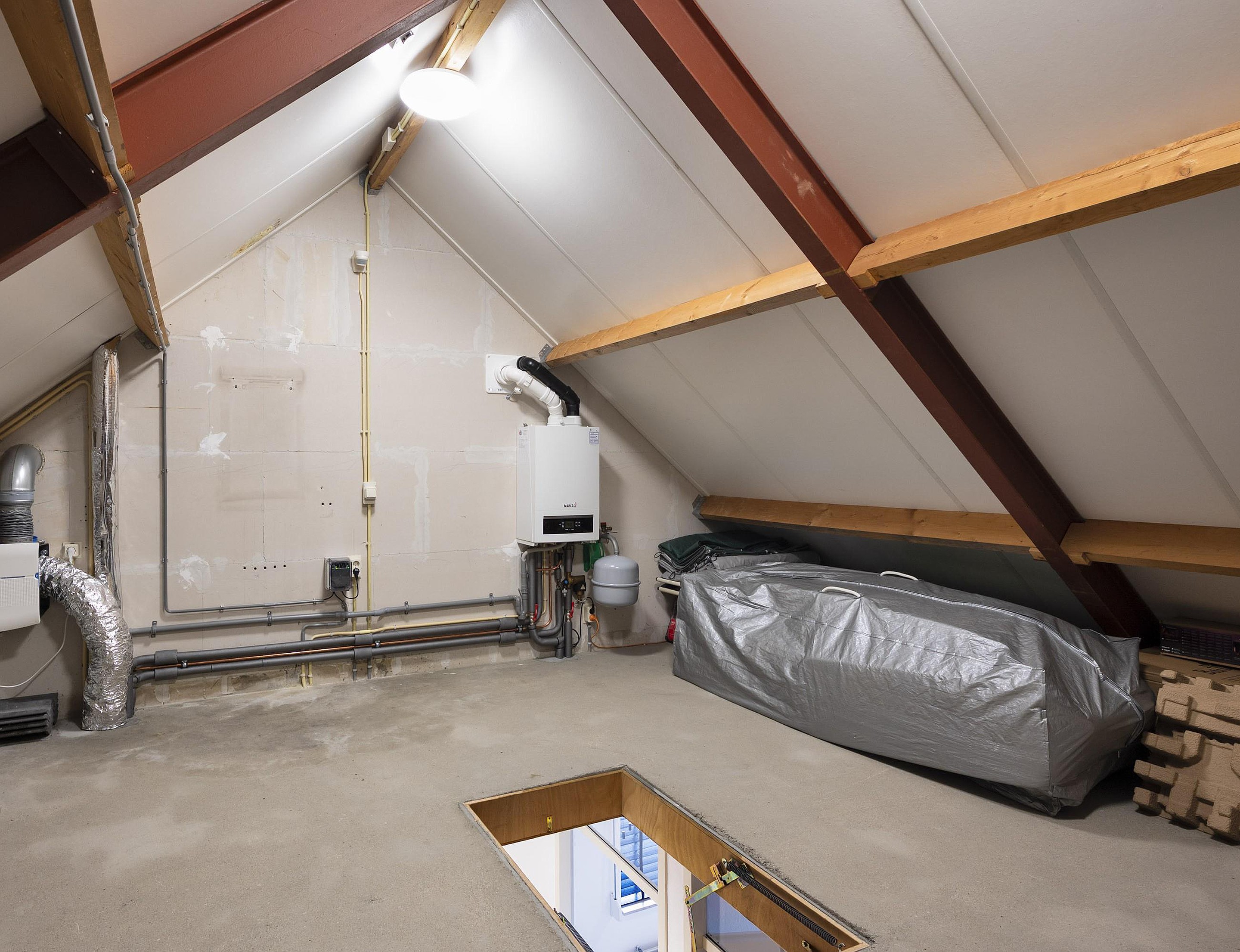Via een vlizotrap bereik je de praktische bergzolder met cv-installatie en mechanische ventilatie.