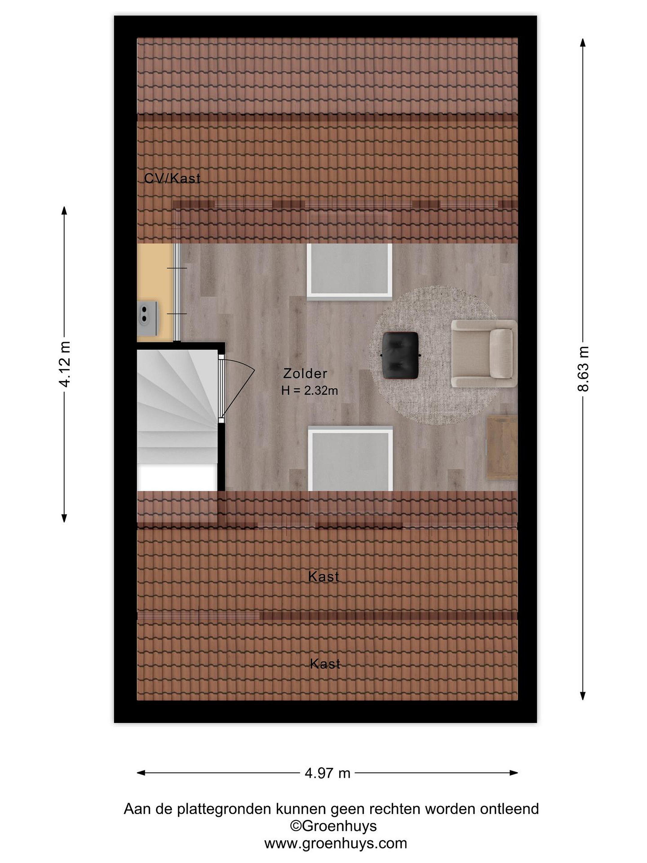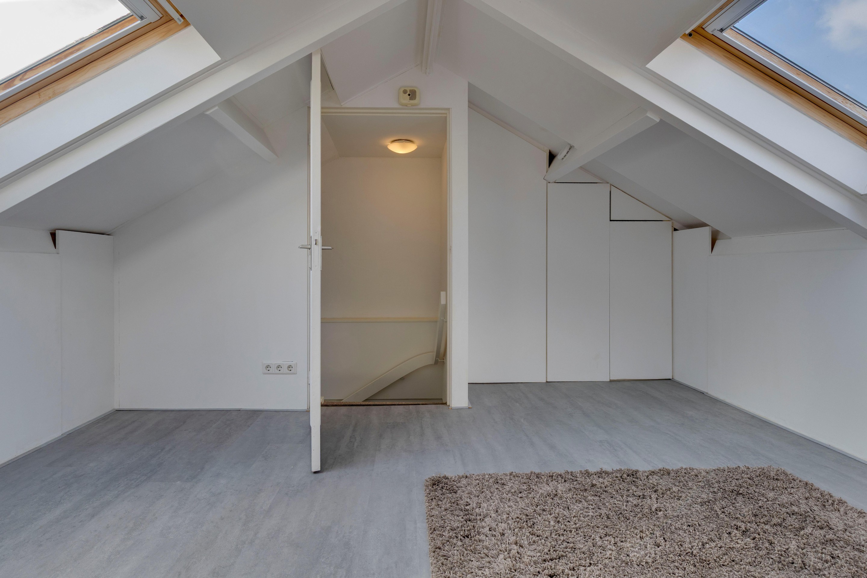 Via een vaste trap bereik je de zolderkamer, voorzien van twee Velux dakramen met verduistering, volop bergruimte achter de schuine kanten (met schuifdeuren), een nette inbouwkast met de CV-ketel (Nefit 2019) en dakisolatie.