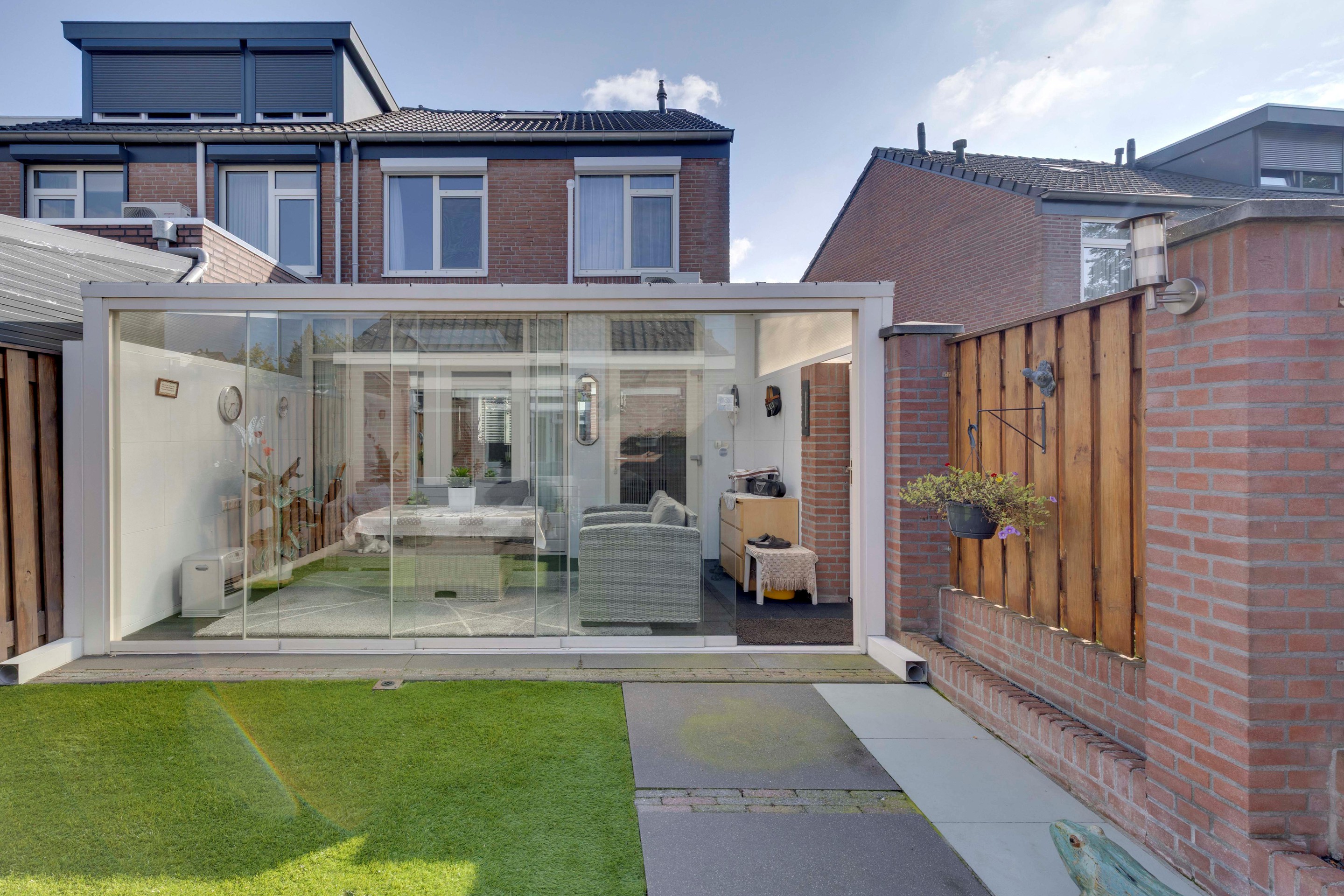 * Serre/tuinkamer met glazen schuifwanden en zonwering