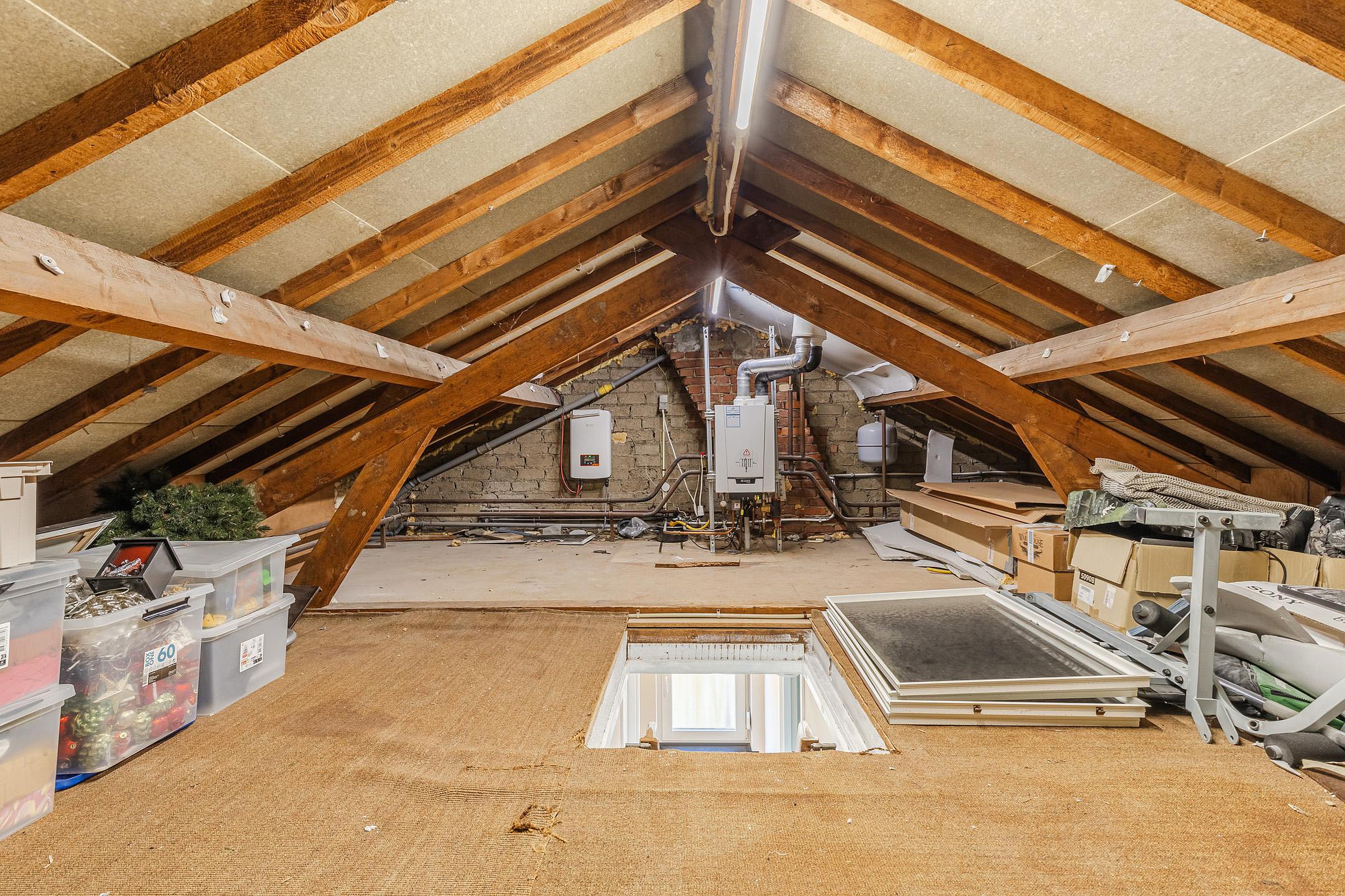 Middels een vlizotrap is de zolderverdieping te bereiken. De mogelijkheid bestaat om een vaste trap te realiseren. Op de zolderverdieping is de combi CV-ketel gesitueerd (2016 Remeha) en de omvormer van de zonnepanelen.