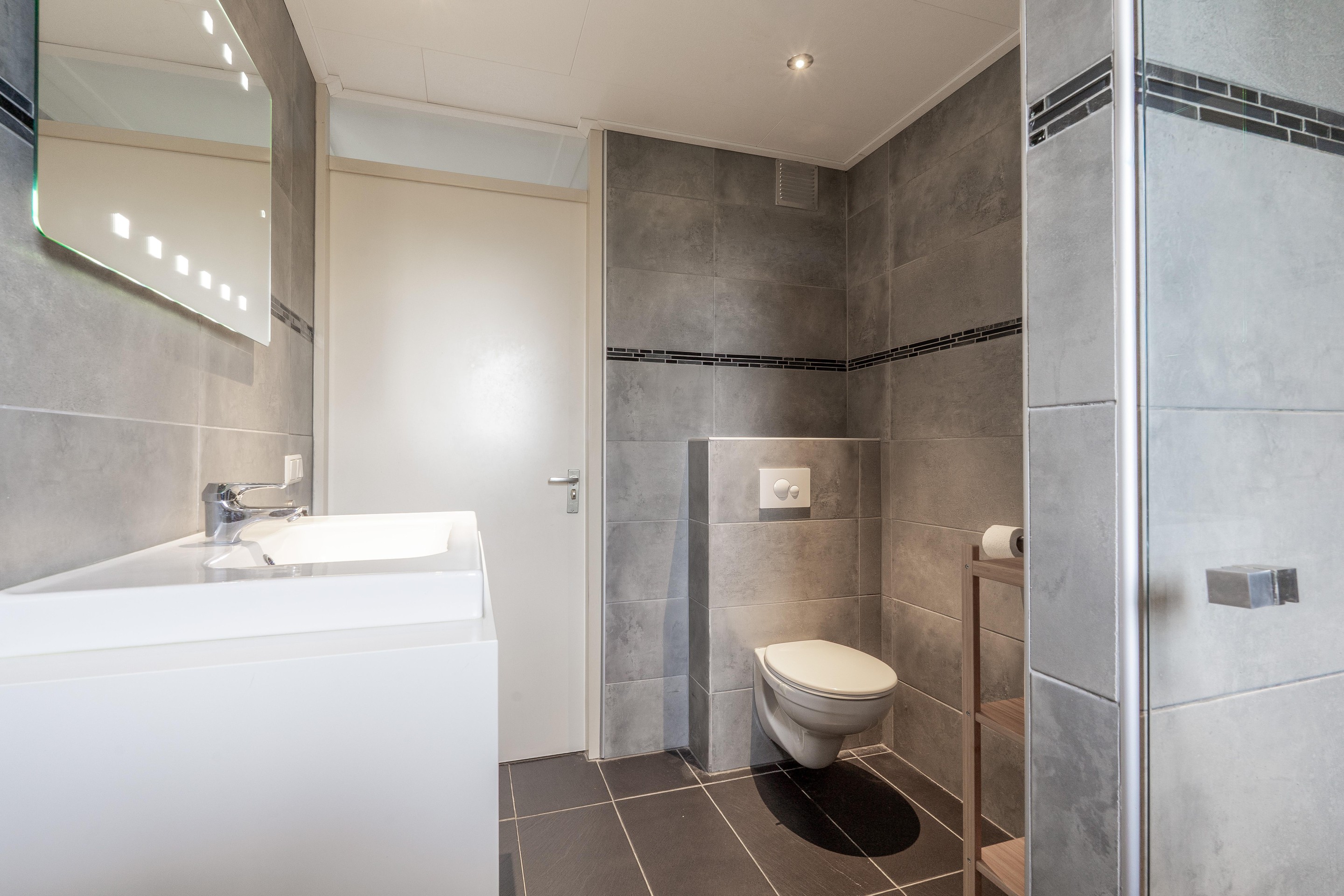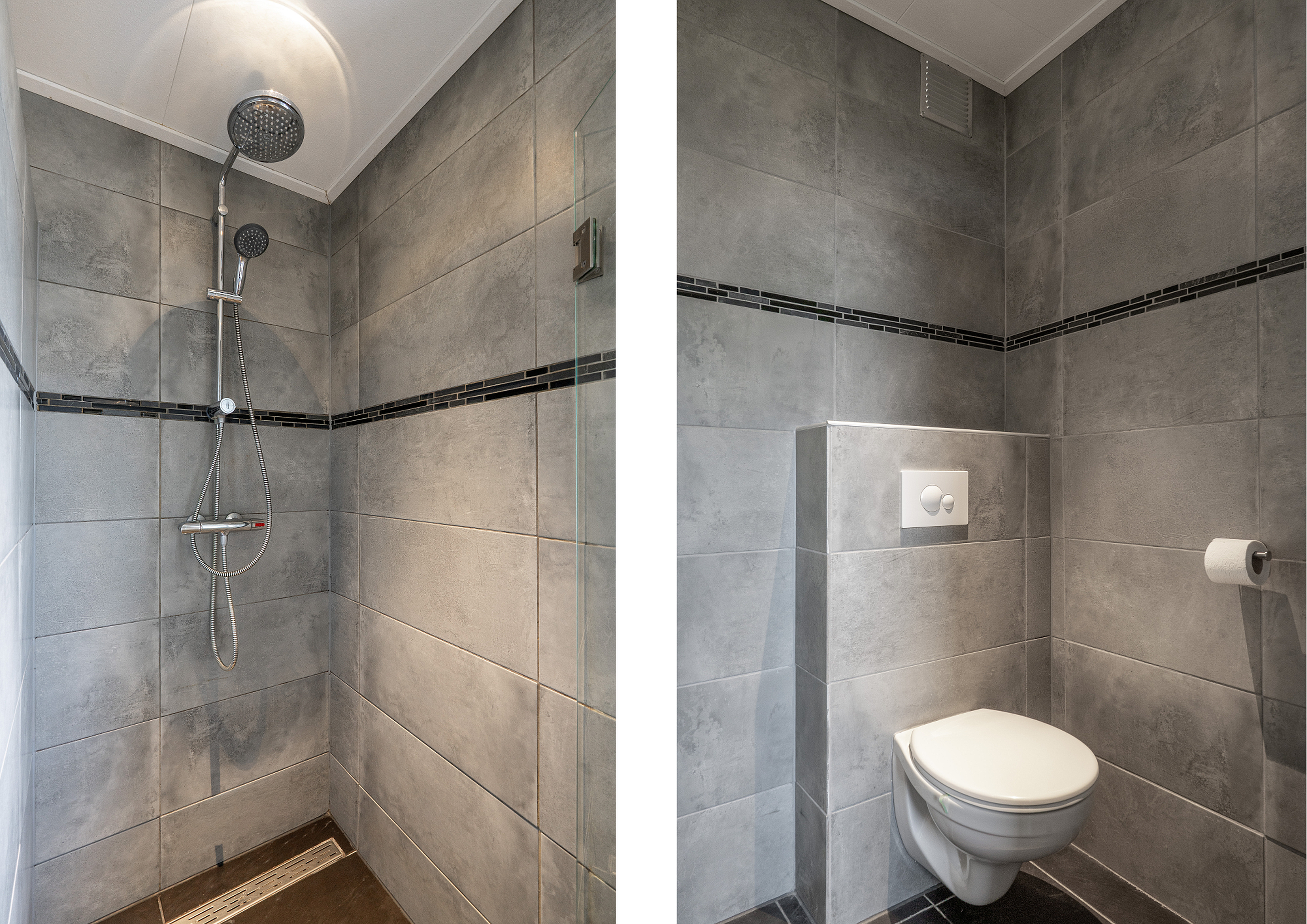 1e verdieping: overloop, 3 slaapkamers, moderne badkamer voorzien van inloopdouche, wastafelmeubel, handdoeken radiator en 2e toilet (zwevend closet).