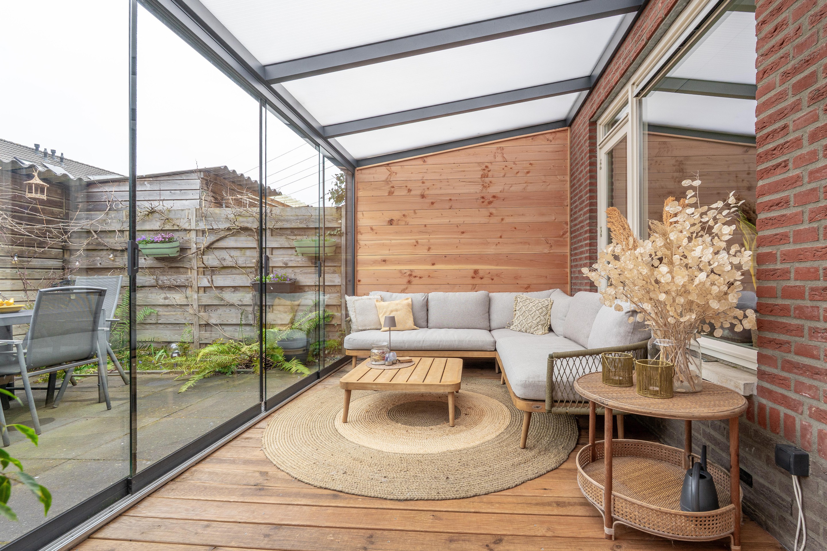 - achtertuin voorzien van aluminium overkapping/serre (5x2,5m);