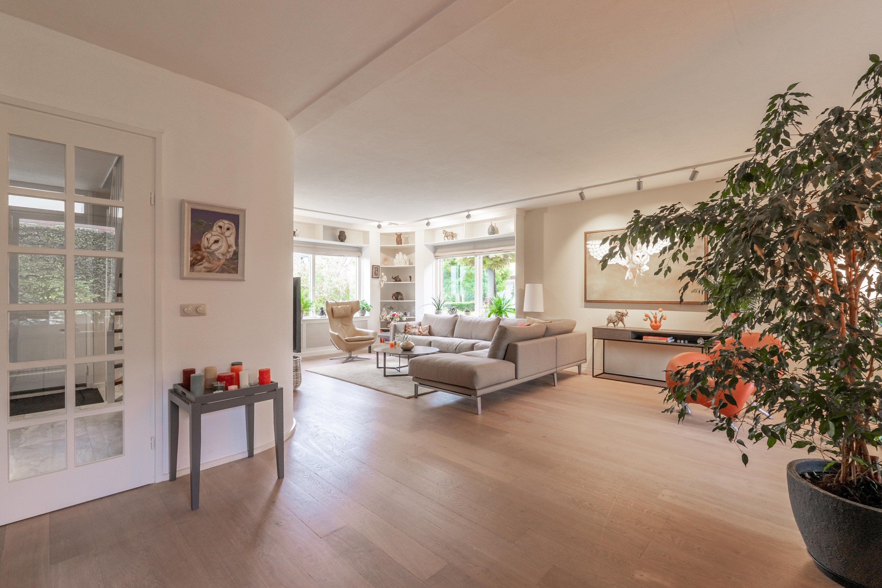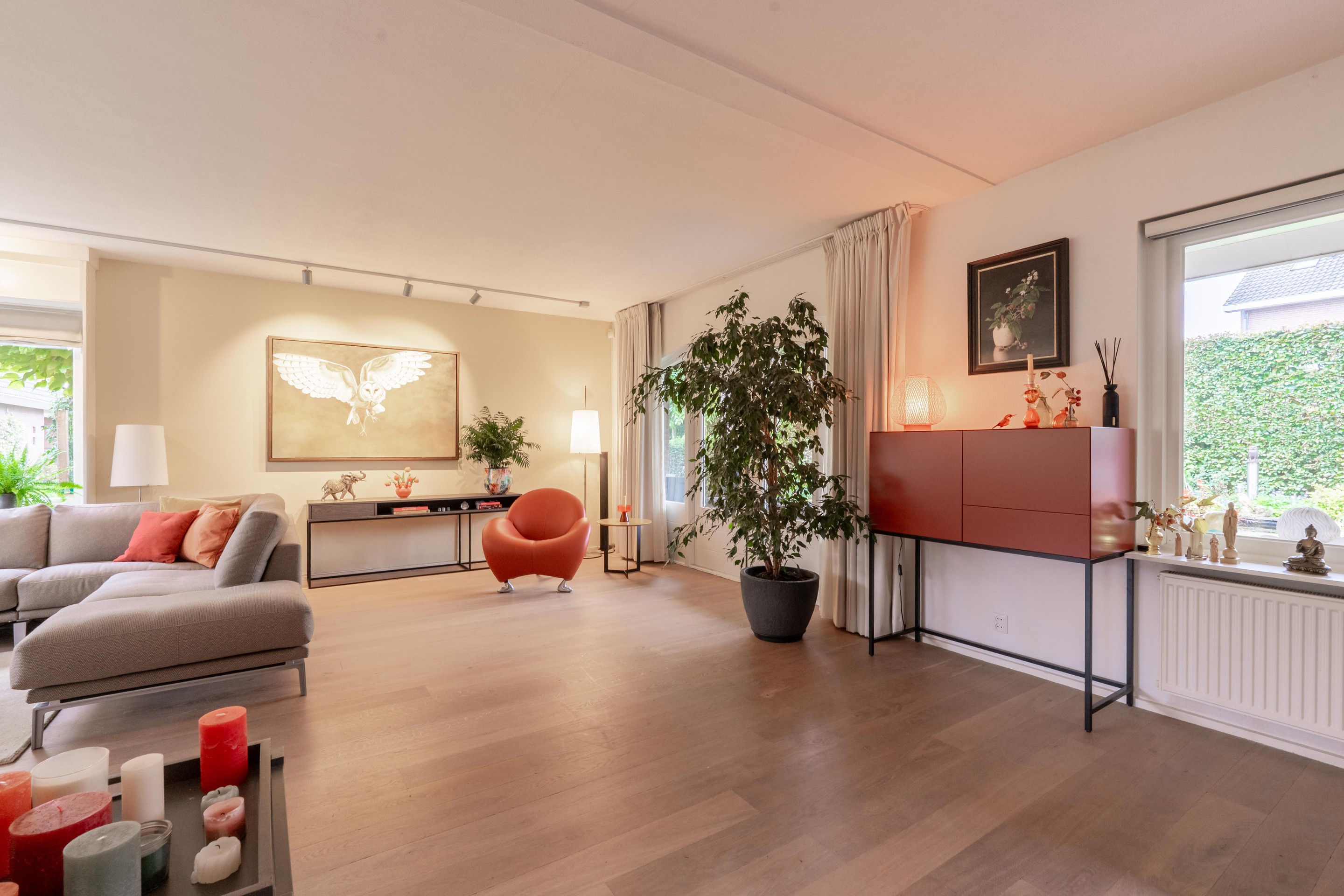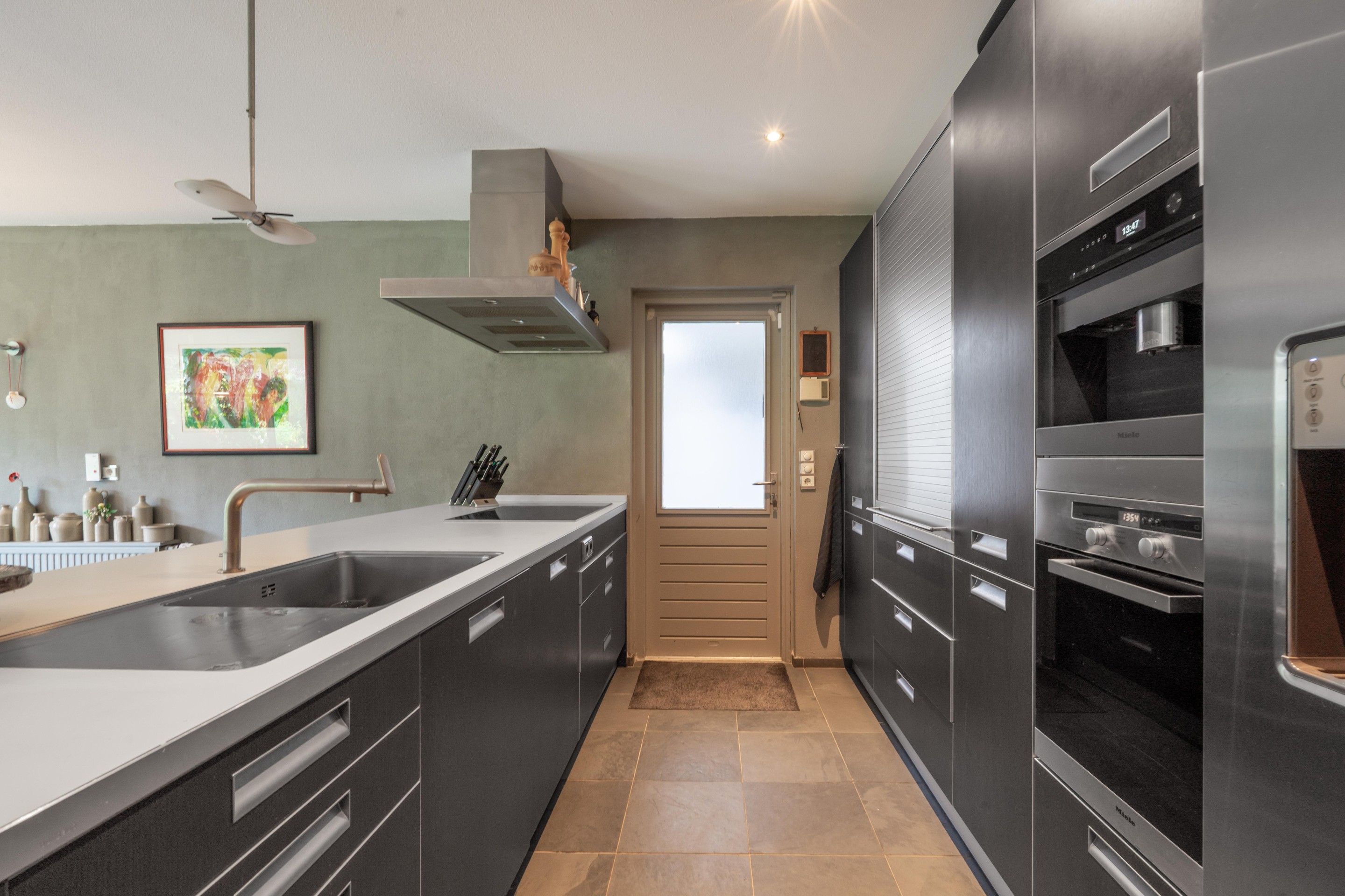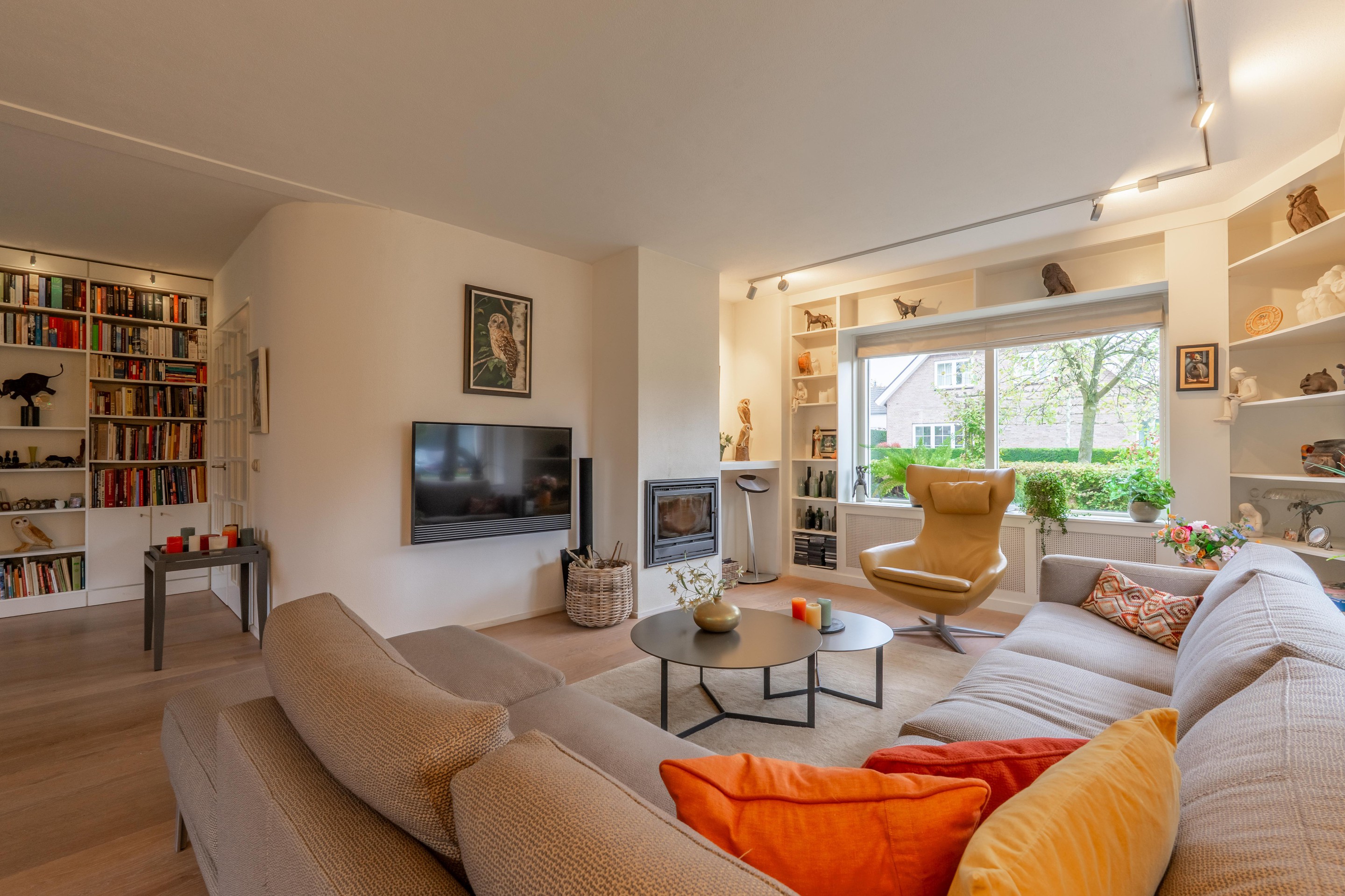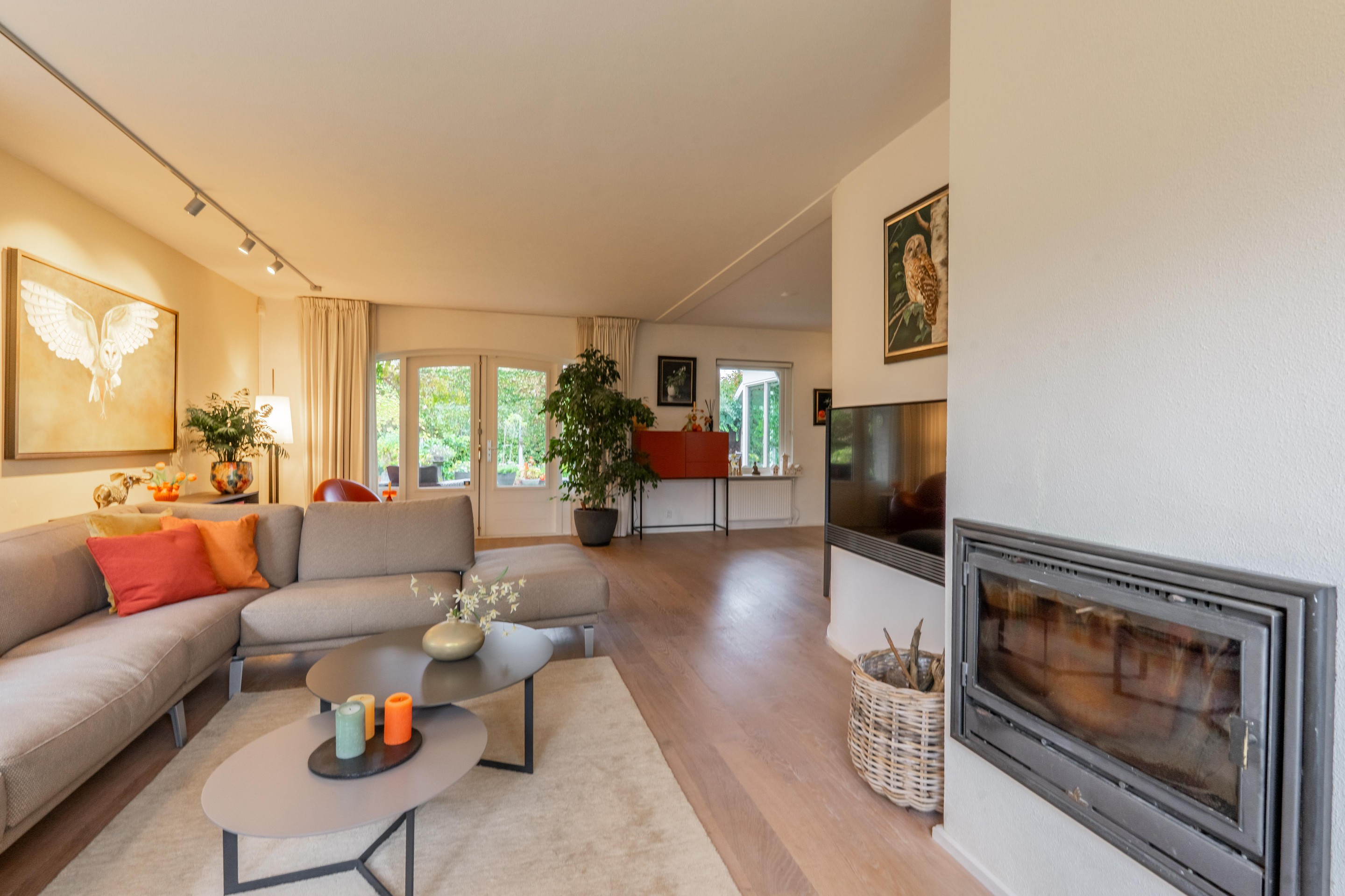 Begane grond: overdekte entree, royale hal met garderobe, meterkast v.v. glasvezel internet, modern toilet(zwevend) met fonteintje, trapopgang, werkkamer/kantoor, royale woonkamer voorzien van een sfeervolle openhaard, eikenhouten parketvloer,, op maat gemaakte vaste kasten en openslaande deuren naar de veranda, woonkeuken met luxe kwaliteitsinrichting van Bulthaup met een kook-/spoeleiland en voorzien van alle inbouw apparatuur waaronder een inductiekookplaat, afzuigschouw, vaatwasser, koffie-/espresso apparaat (bonenmaler), heteluchtoven en koel-/vrieskast, tussenhal, 2e woonkamer met grote glazen pui met prachtig uitzicht op de tuin, via de keuken is tevens de bijkeuken bereikbaar(voormalig garage).