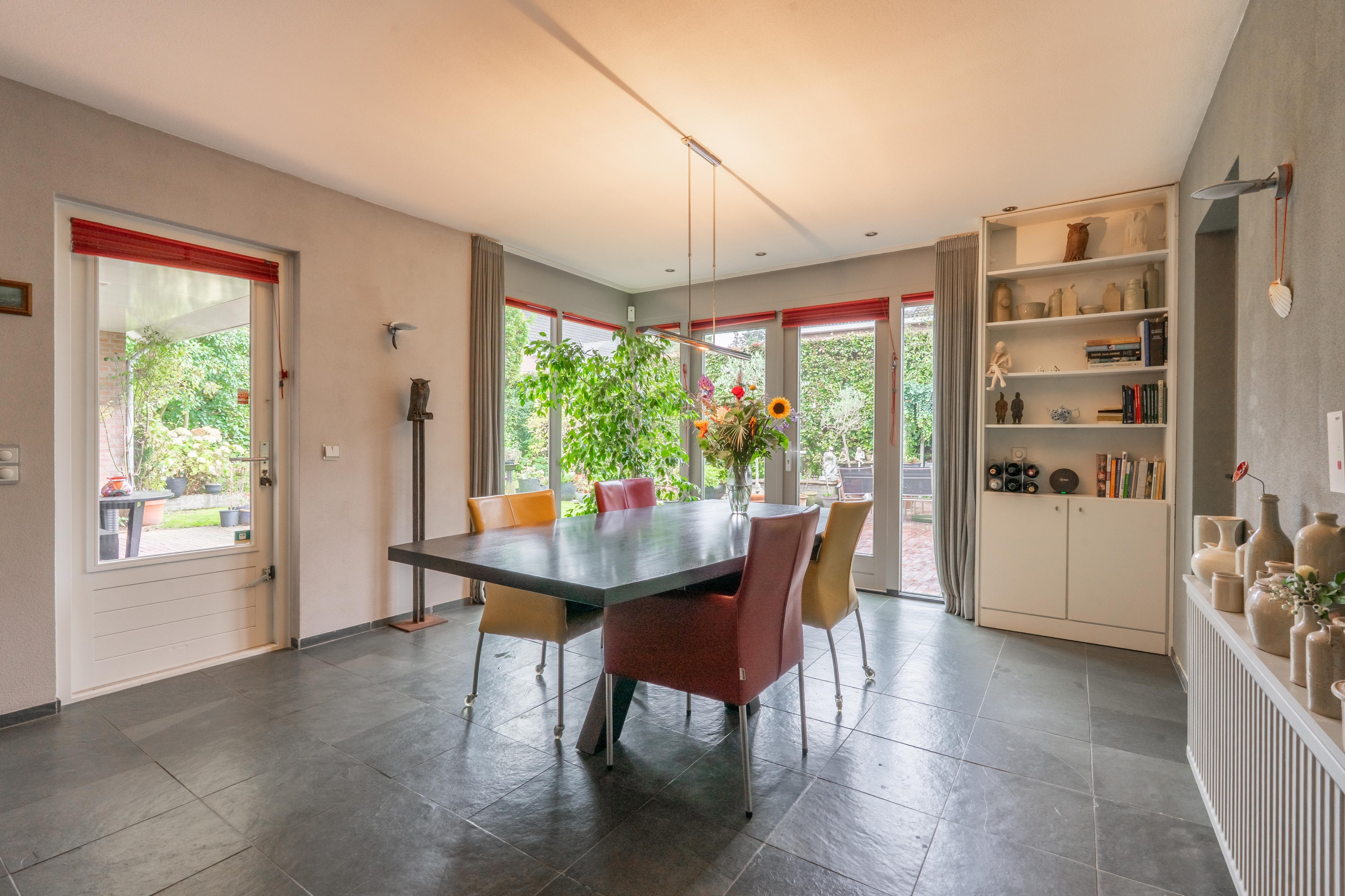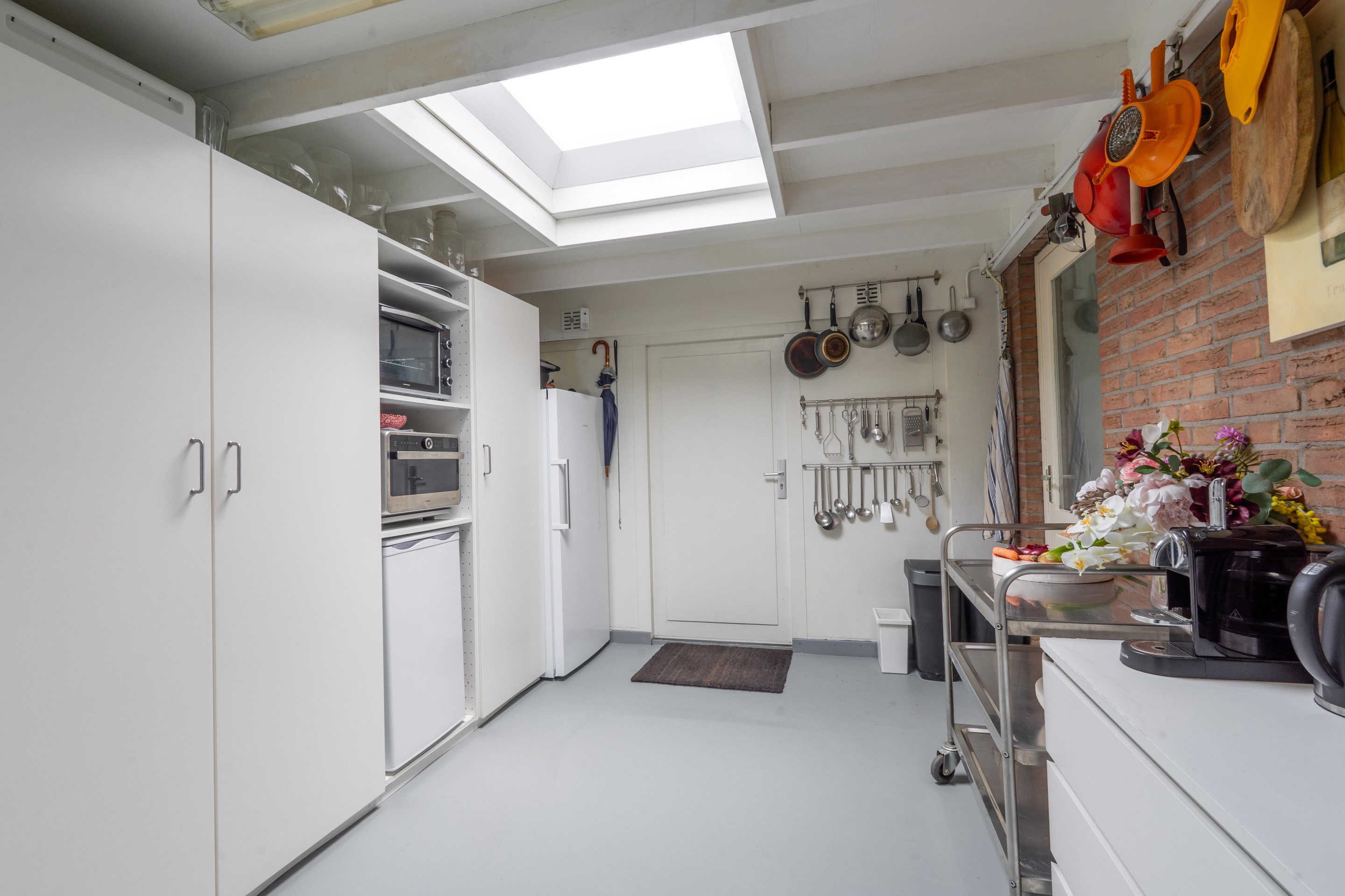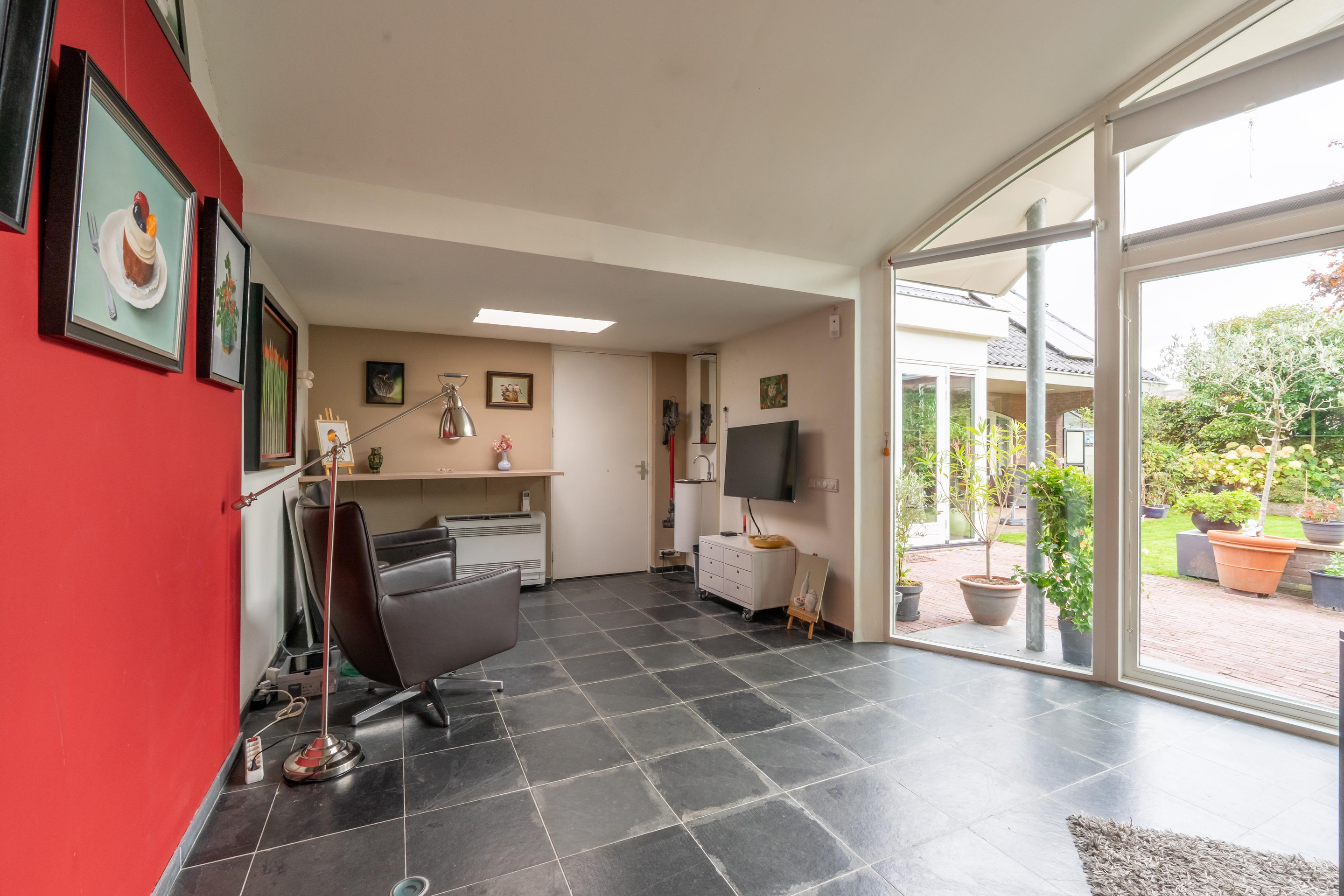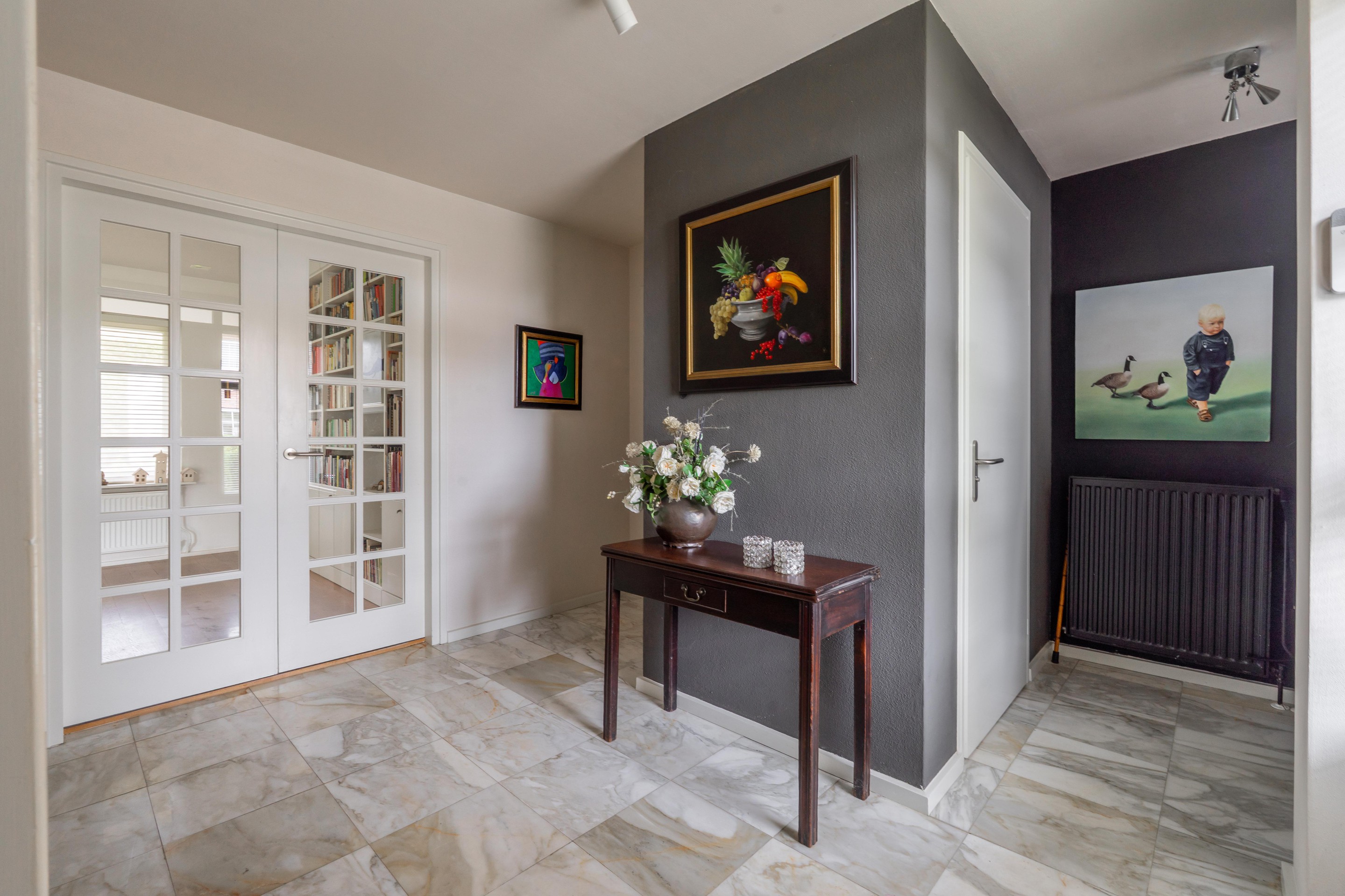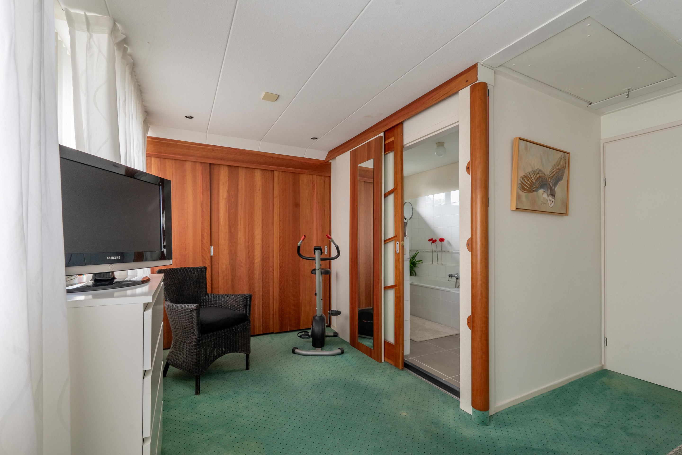 Begane grond: overdekte entree, royale hal met garderobe, meterkast v.v. glasvezel internet, modern toilet(zwevend) met fonteintje, trapopgang, werkkamer/kantoor, royale woonkamer voorzien van een sfeervolle openhaard, eikenhouten parketvloer,, op maat gemaakte vaste kasten en openslaande deuren naar de veranda, woonkeuken met luxe kwaliteitsinrichting van Bulthaup met een kook-/spoeleiland en voorzien van alle inbouw apparatuur waaronder een inductiekookplaat, afzuigschouw, vaatwasser, koffie-/espresso apparaat (bonenmaler), heteluchtoven en koel-/vrieskast, tussenhal, 2e woonkamer met grote glazen pui met prachtig uitzicht op de tuin, via de keuken is tevens de bijkeuken bereikbaar(voormalig garage).