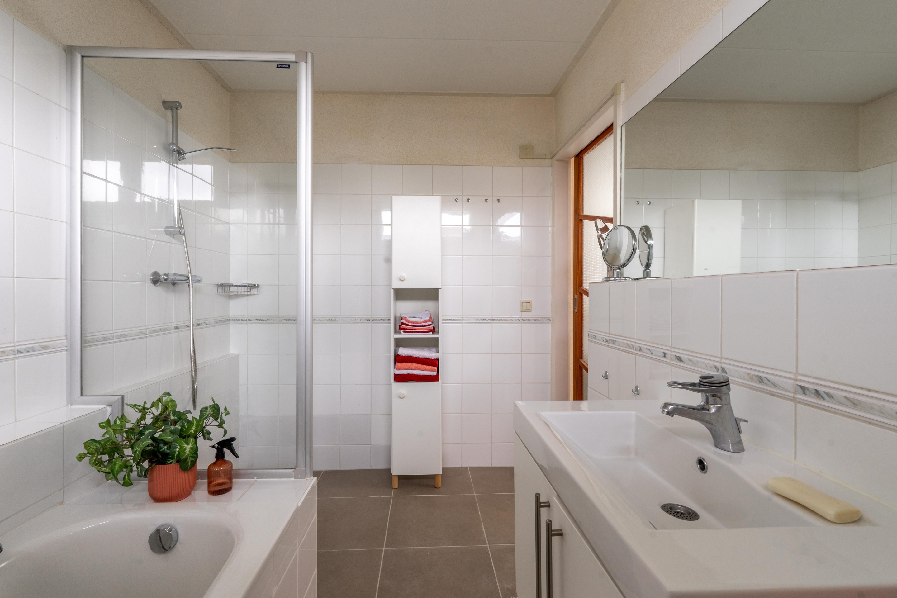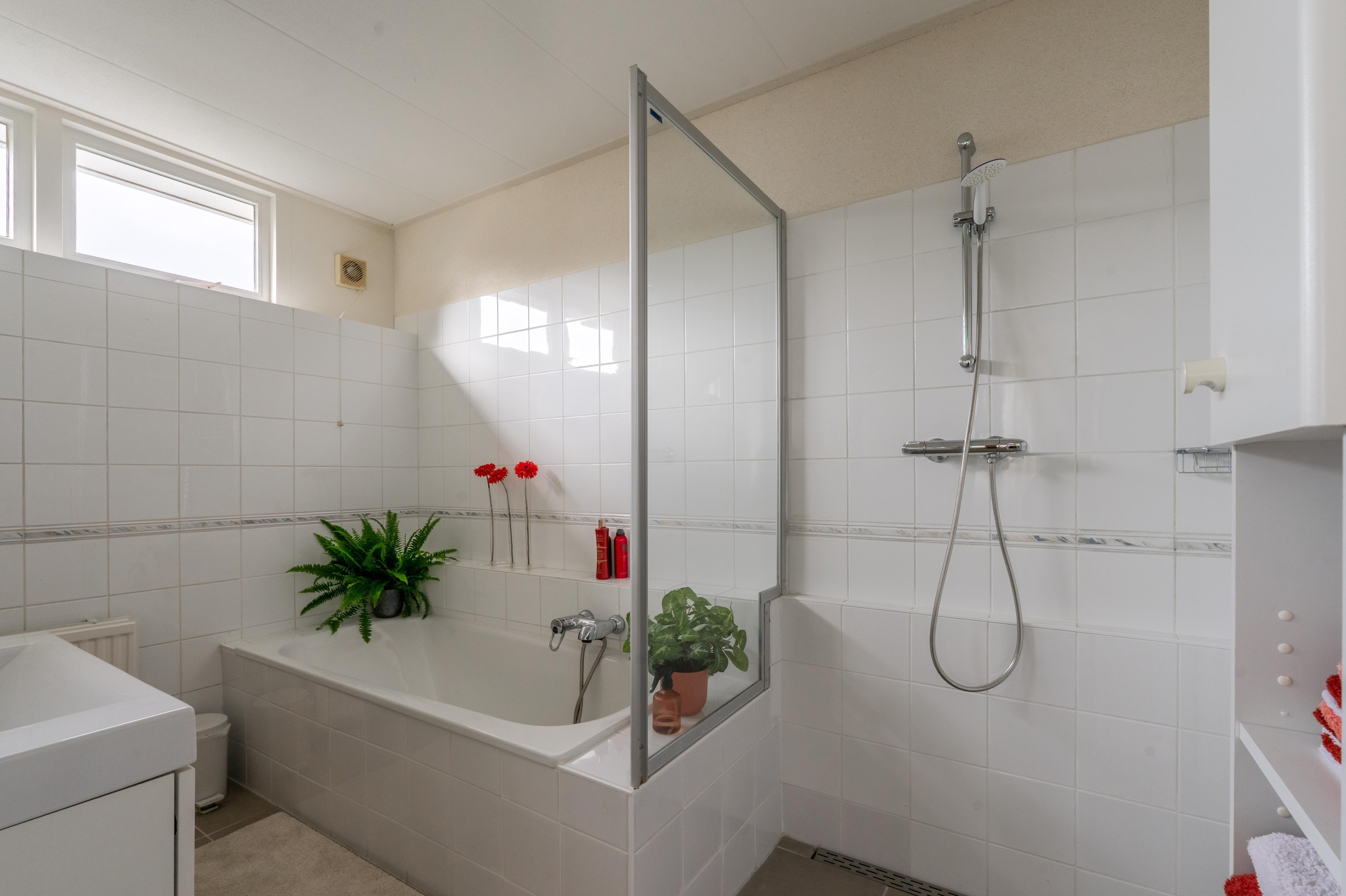 1e verdieping: royale overloop v.v. dakkapel, royale ouderslaapkamer 21 m2 met een badkamer en suite voor het ultieme hotel gevoel, via een schuifdeur bereik je de badkamer v.v. een inloopdouche, ligbad en wastafelmeubel, de overloop geeft verder toegang tot 2 ruime slaapkamers (resp. 16 m2 en 12 m2), separaat toilet en een badkamer met wastafelmeubel en inloopdouche, voorts geeft de ouderslaapkamer via een vlizotrap toegang tot een royale bergvliering en een luik naar een royaal knieschot met veel bergruimte.