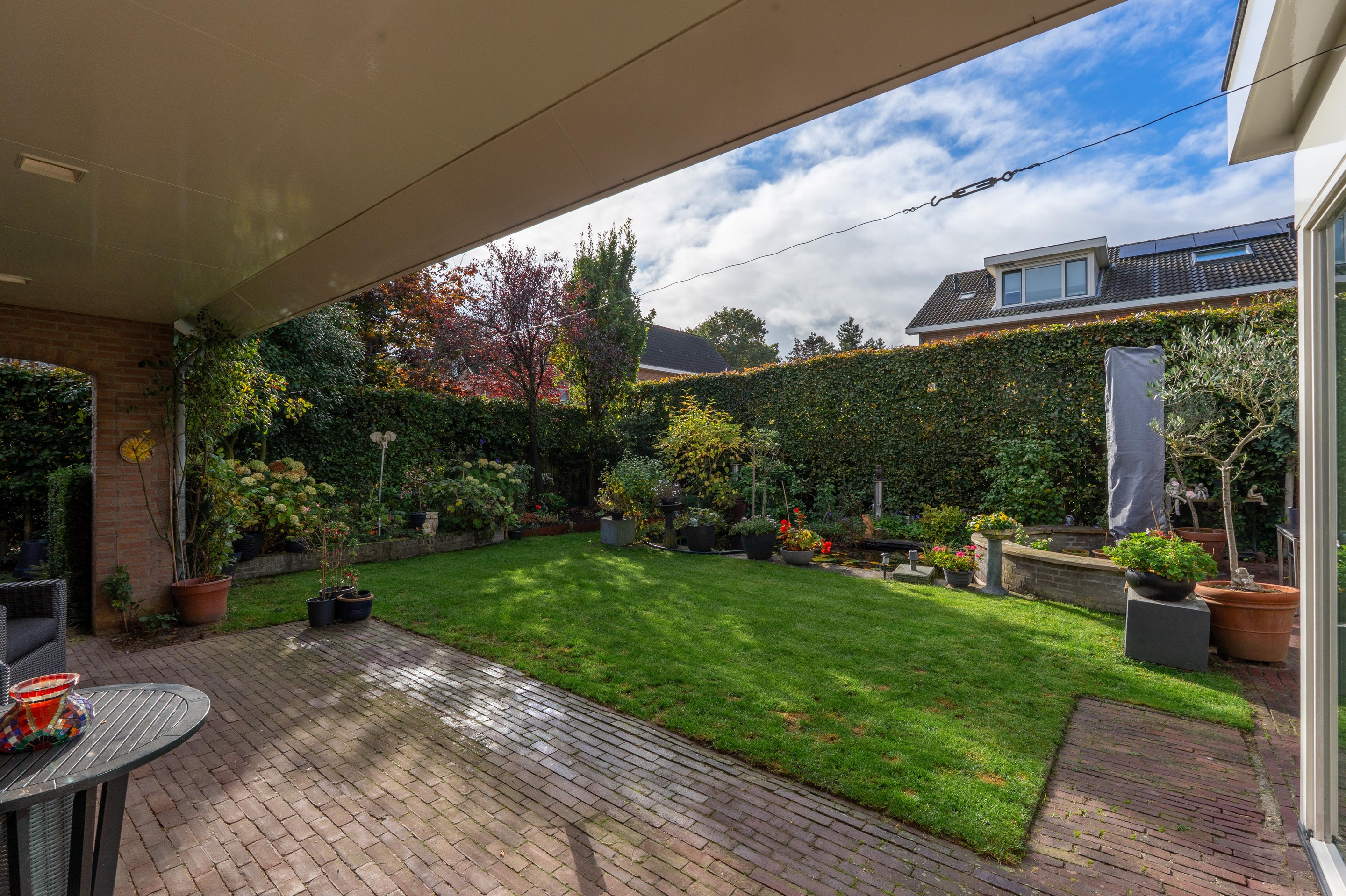 Rondom het huis vind je een fraai aangelegde tuin die vanuit de woonkamers en woonkeuken te bewonderen is. Vanuit de woonkamer betreed je de veranda waar je onder het genot van een drankje kunt genieten van de ondergaande zon.