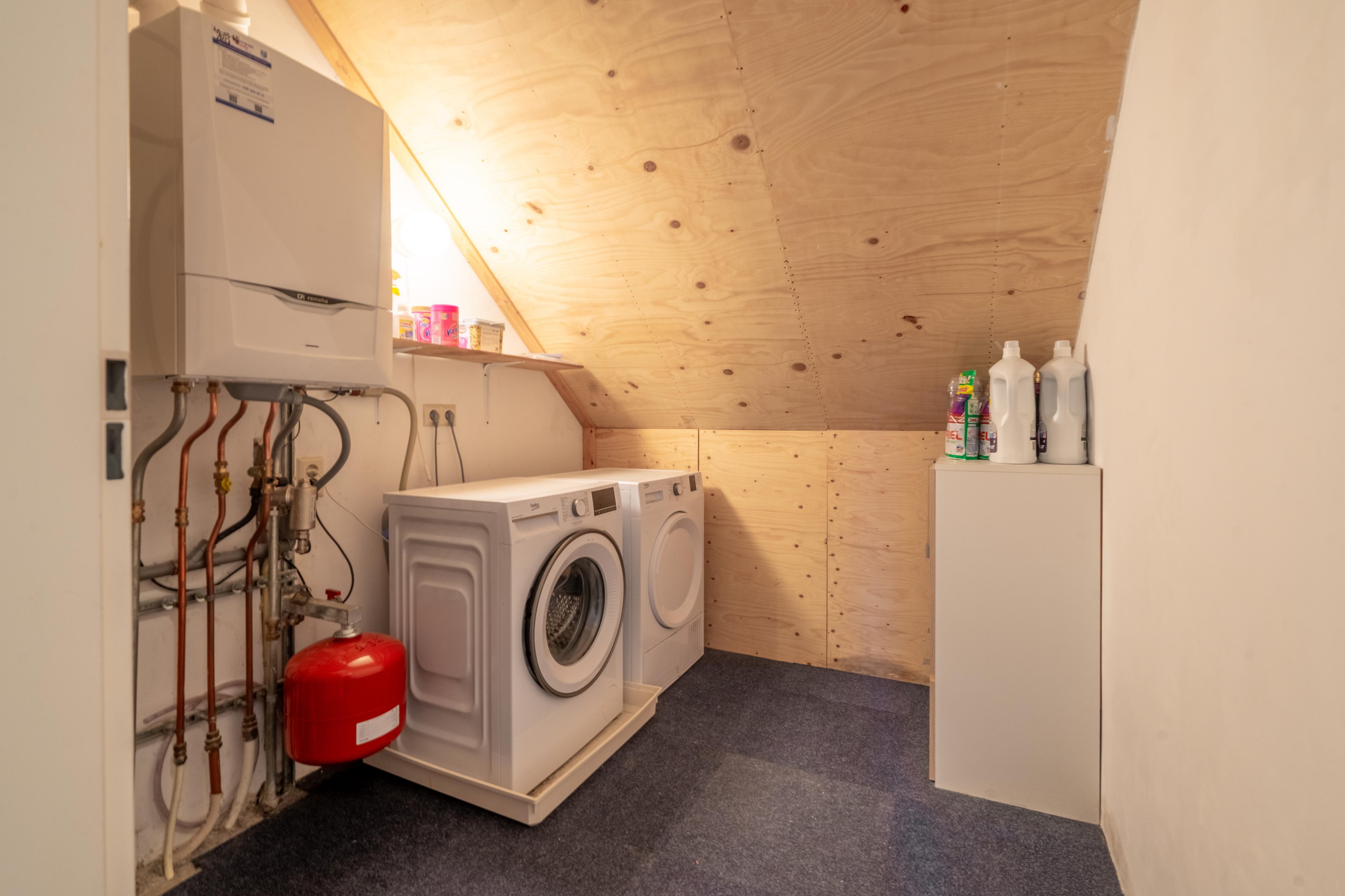 2e verdieping: via vaste trap bereikbaar, overloop, was-/stookruimte voorzien van wasmachineaansluiting, mechanische ventilatie en cv-opstelling, royale 3e slaapkamer met dakkapel, voorts veel bergruimte achter knieschotten.