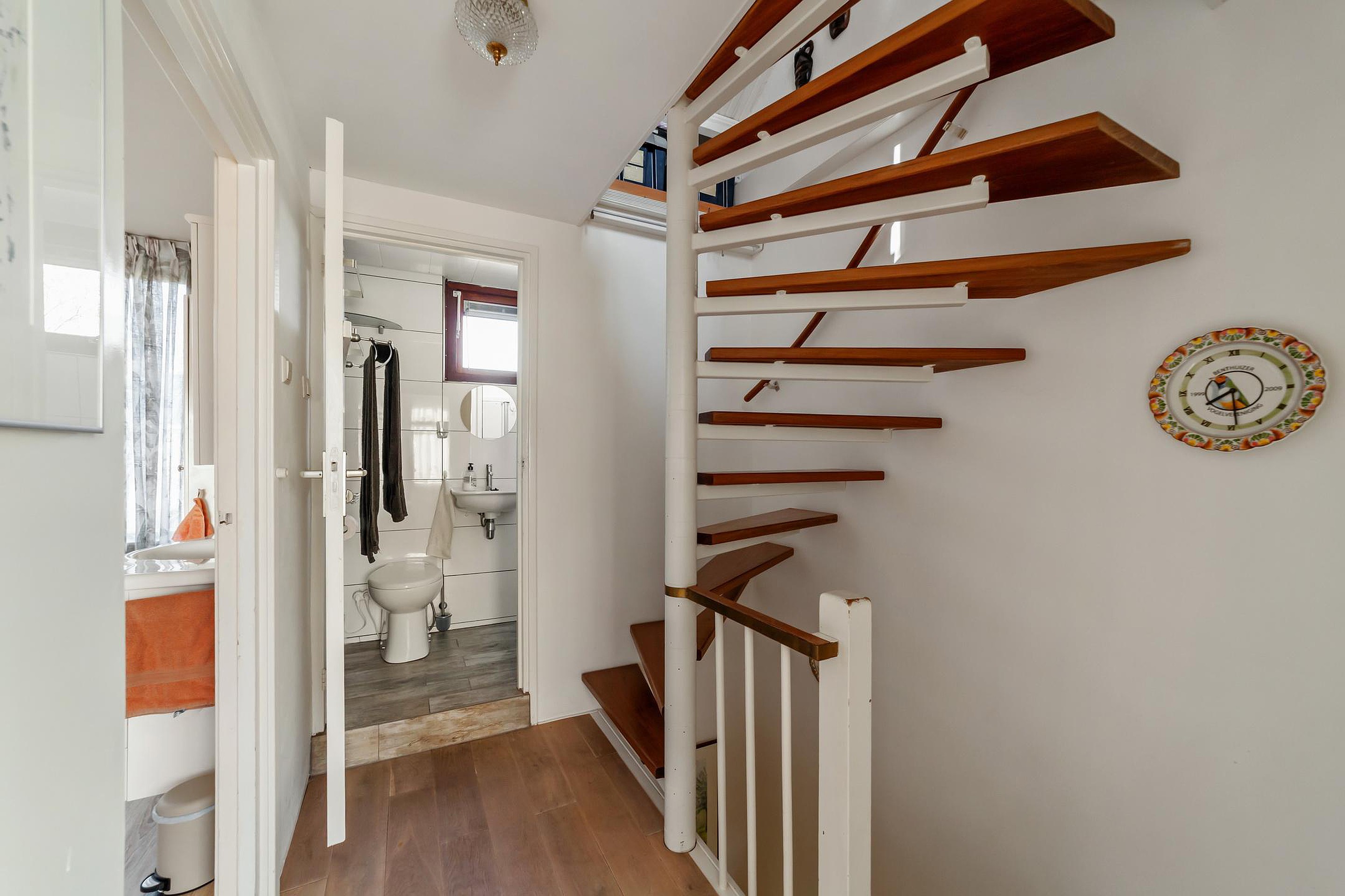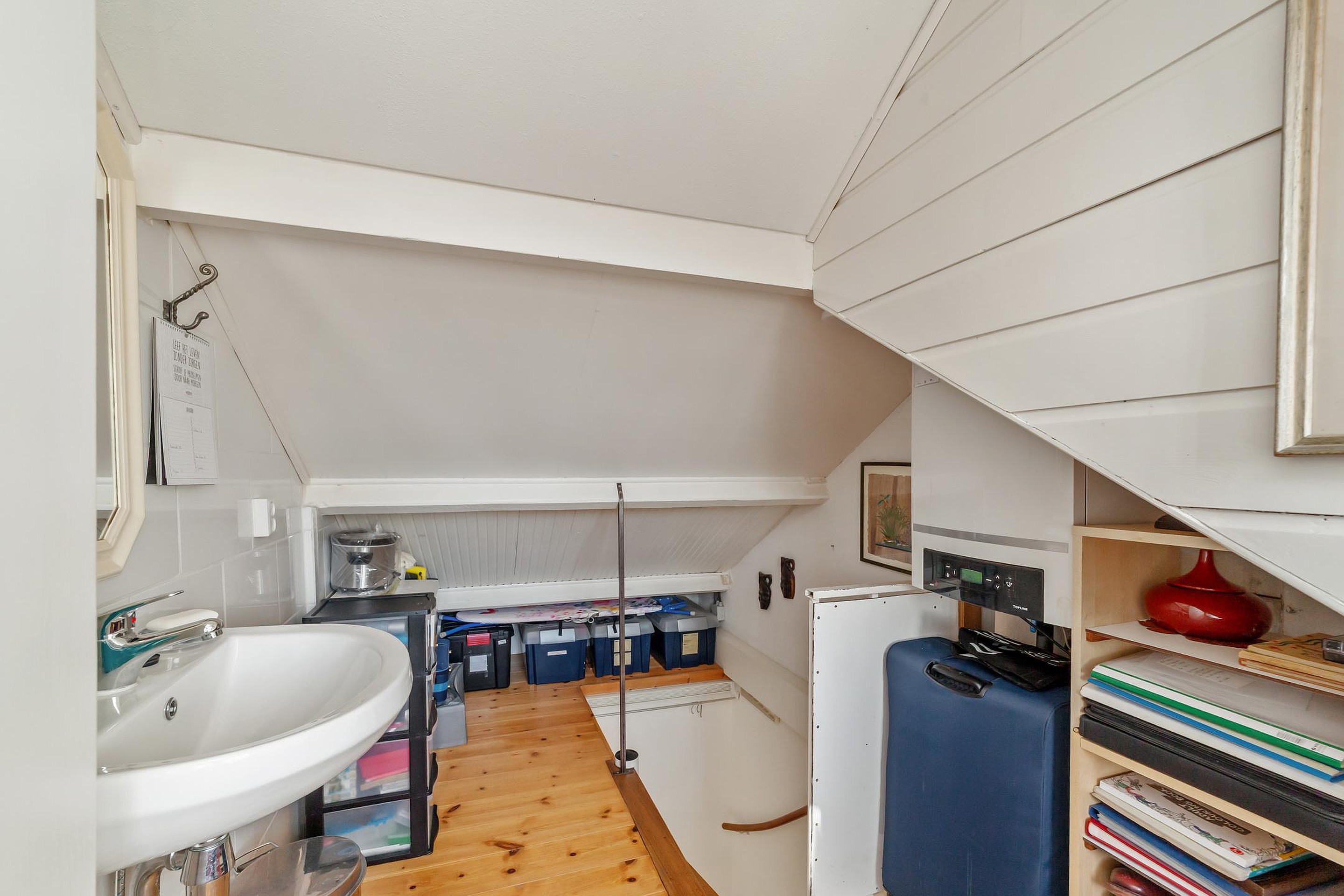 Op de overloop bevinden zich een wastafel en de opstelling voor de CV-ketel.
