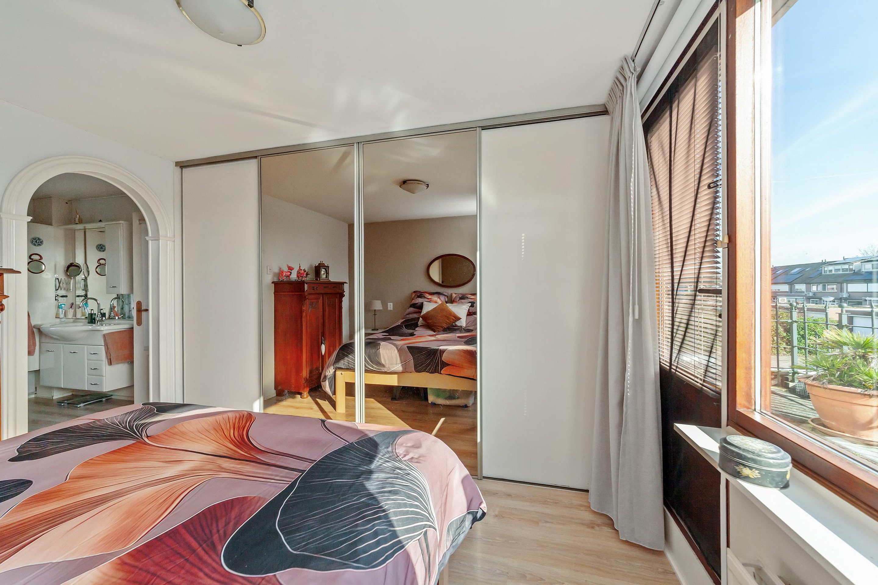 De slaapkamer aan de voorzijde geeft tevens toegang tot de ruime master bedroom welke aan de achterzijde ligt. Deze kamer beschikt over een groot terras, een vaste kastenwand en airconditioning. Beide kamers zijn voorzien van een nette laminaatvloer.