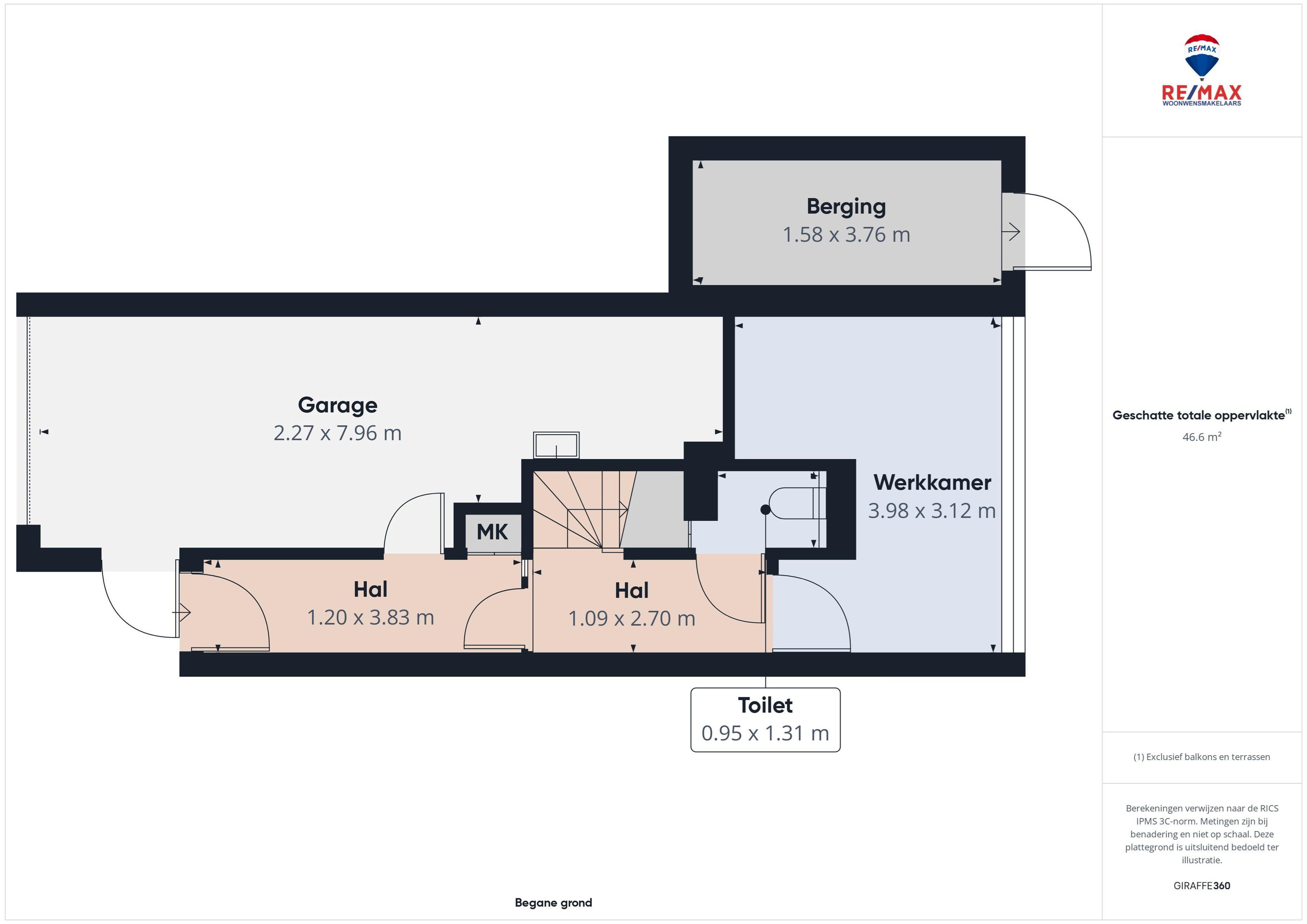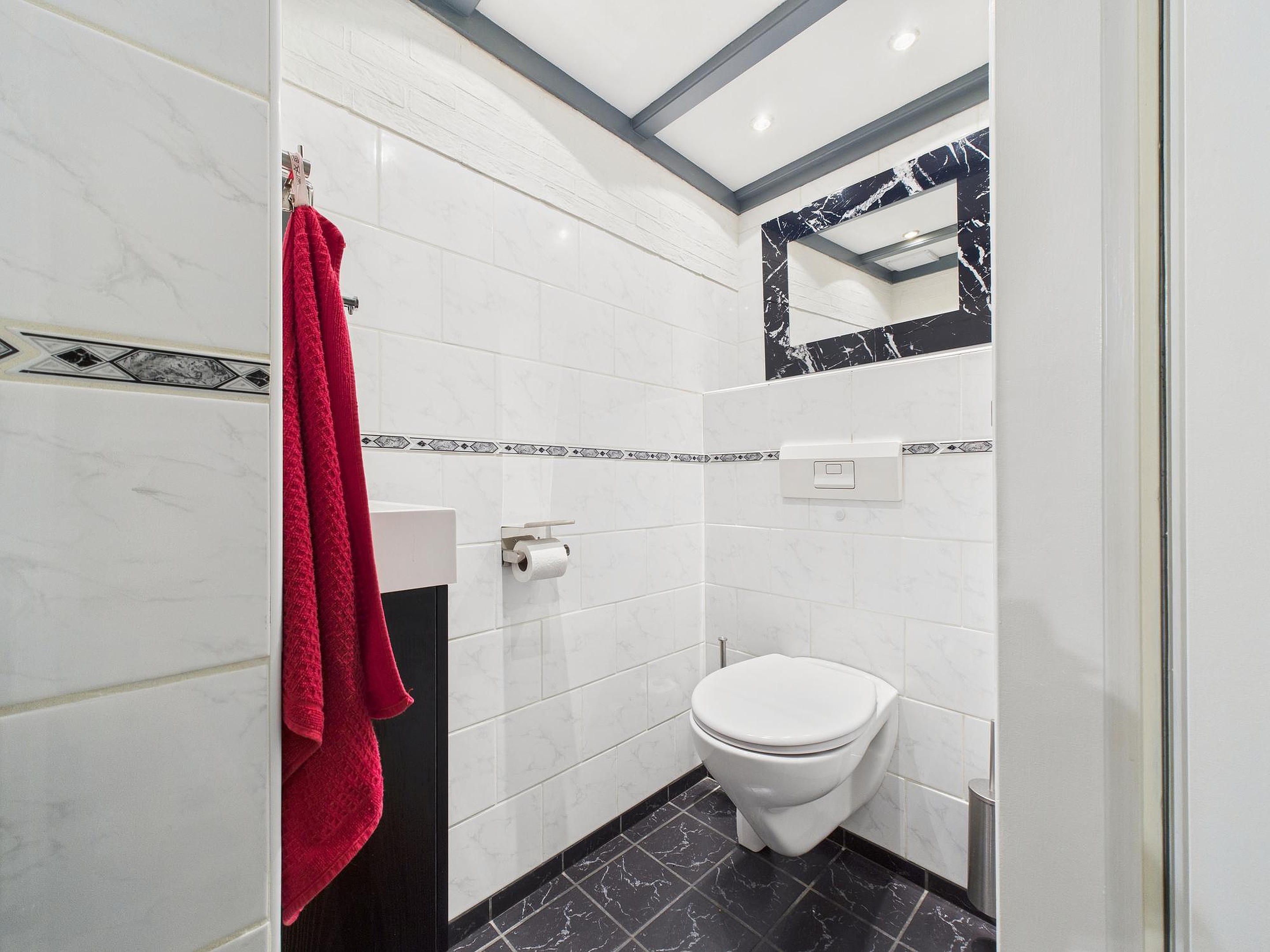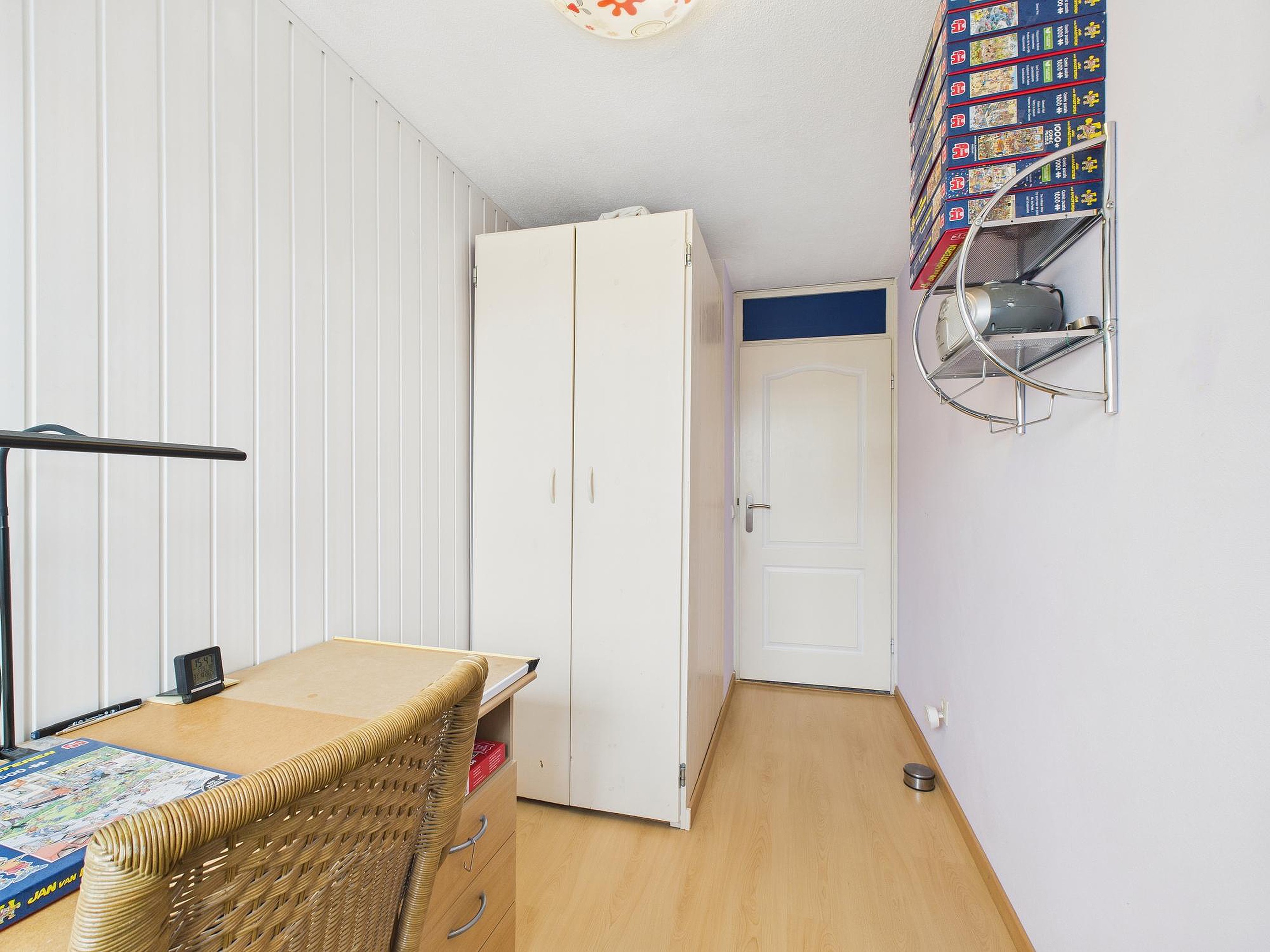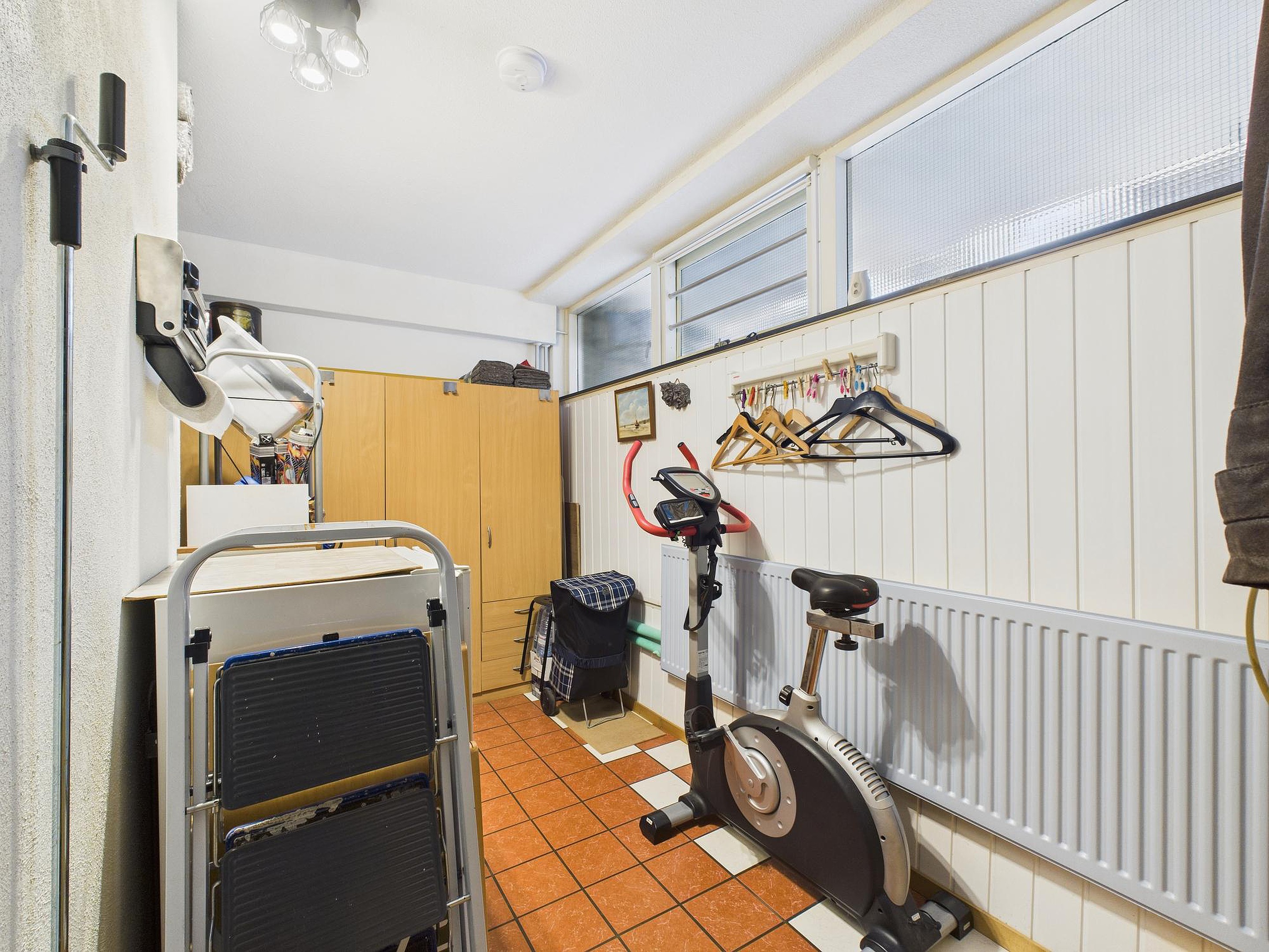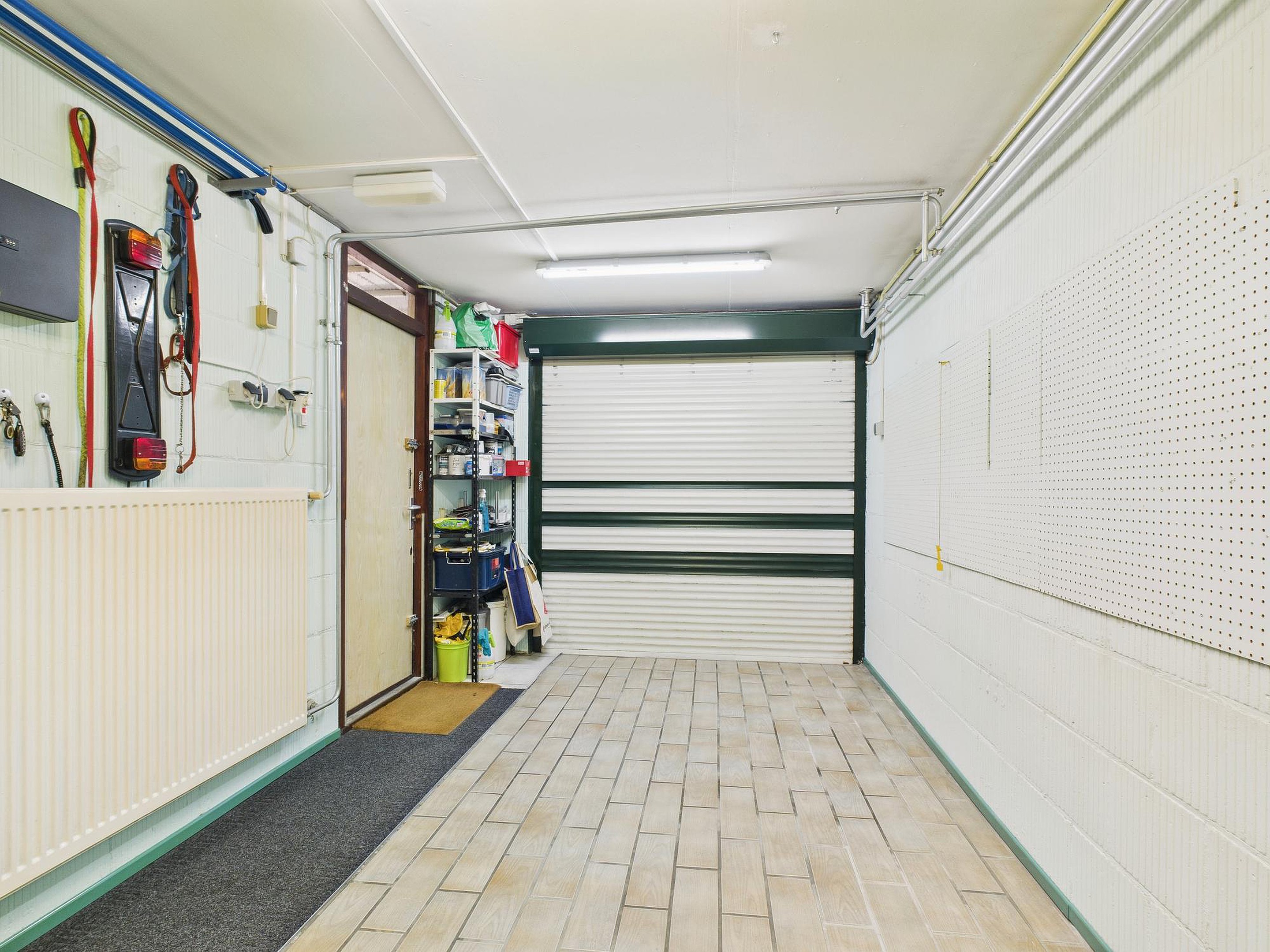 Bij binnenkomst in de hal bevinden zich hier de meterkast, toegang tot de inpandige garage/berging en via de gang het toilet en een slaap-/werkkamer. De verwarmde garage is multifunctioneel inzetbaar en beschikt ook over aansluitingen voor wasapparatuur. De kamer op de begane grond is momenteel ingericht als bijkeuken/opslag, echter kan ook ideaal als logeerkamer, werkkamer of hobbyruimte fungeren.