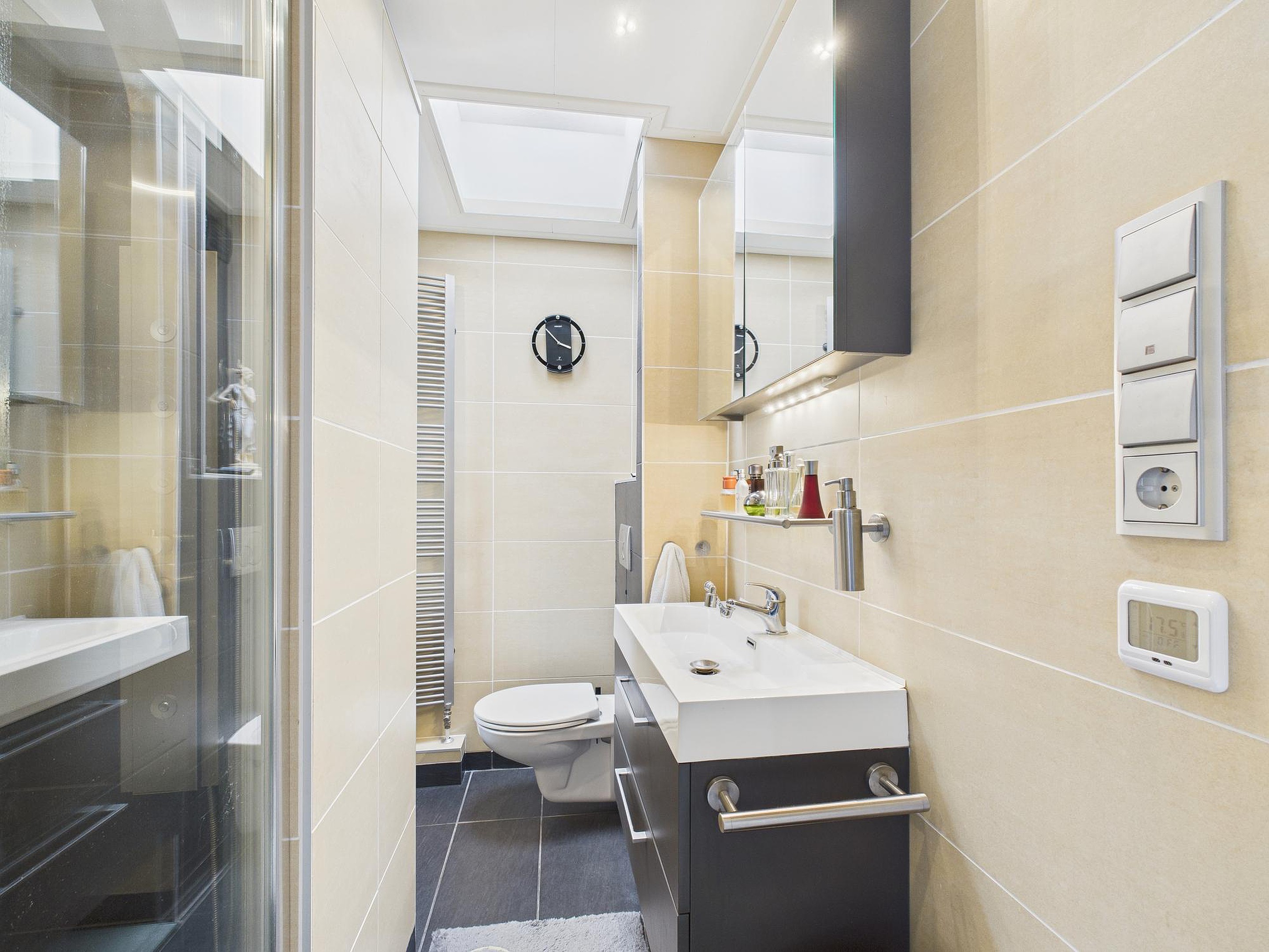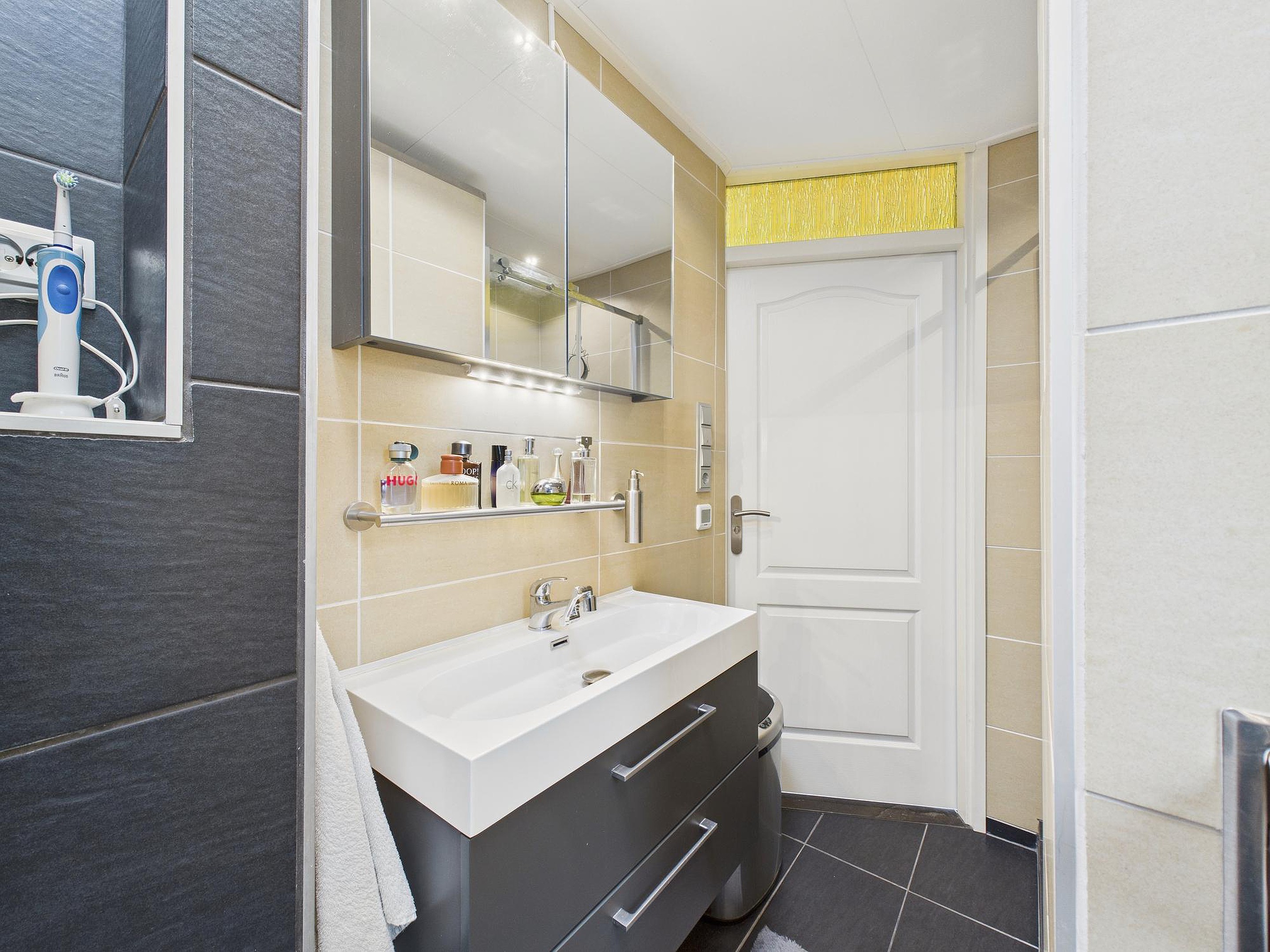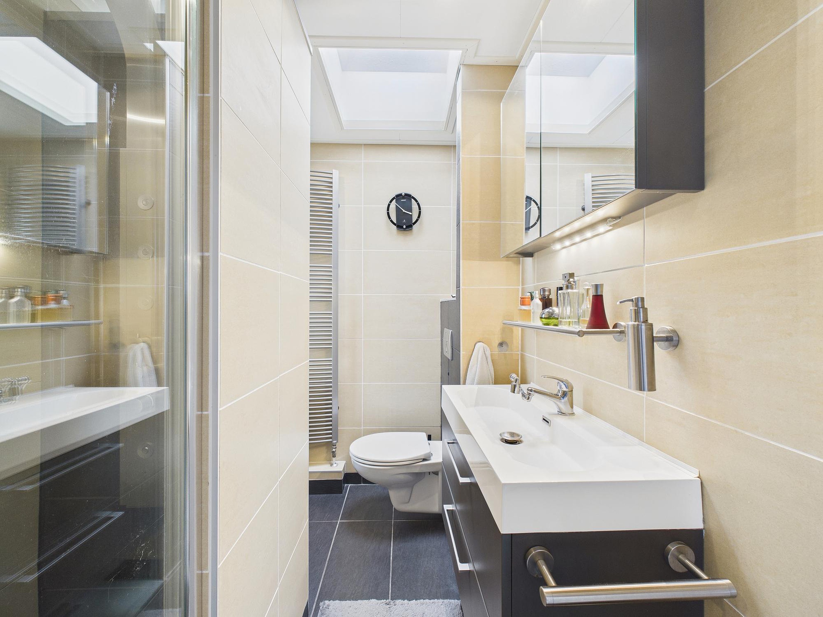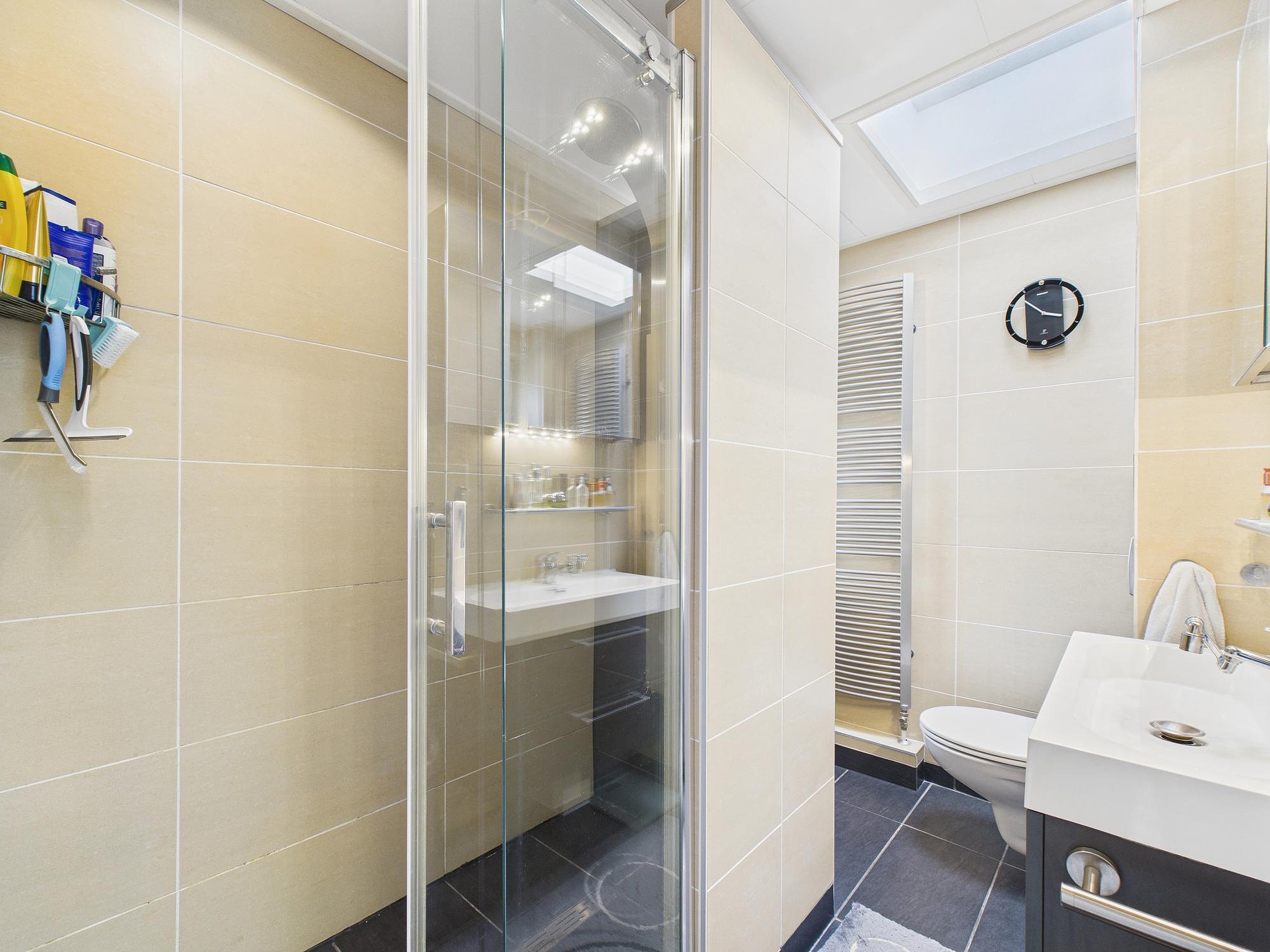 Op de overloop bevindt zich een lichtkoepel en twee handige inbouwkasten, waarvan één met de opstelplaats van de Cv-ketel. Er bevinden zich twee slaapkamers aan de voorzijde, beide met een nette laminaatvloer. De ruime slaapkamer aan de achterzijde biedt volop ruimte voor een 2-persoonsbed en kast. De badkamer is compleet uitgerust met een inloopdouche, toilet, wastafelmeubel en designradiator. Een lichtkoepel én een raam zorgen voor aangenaam daglicht.