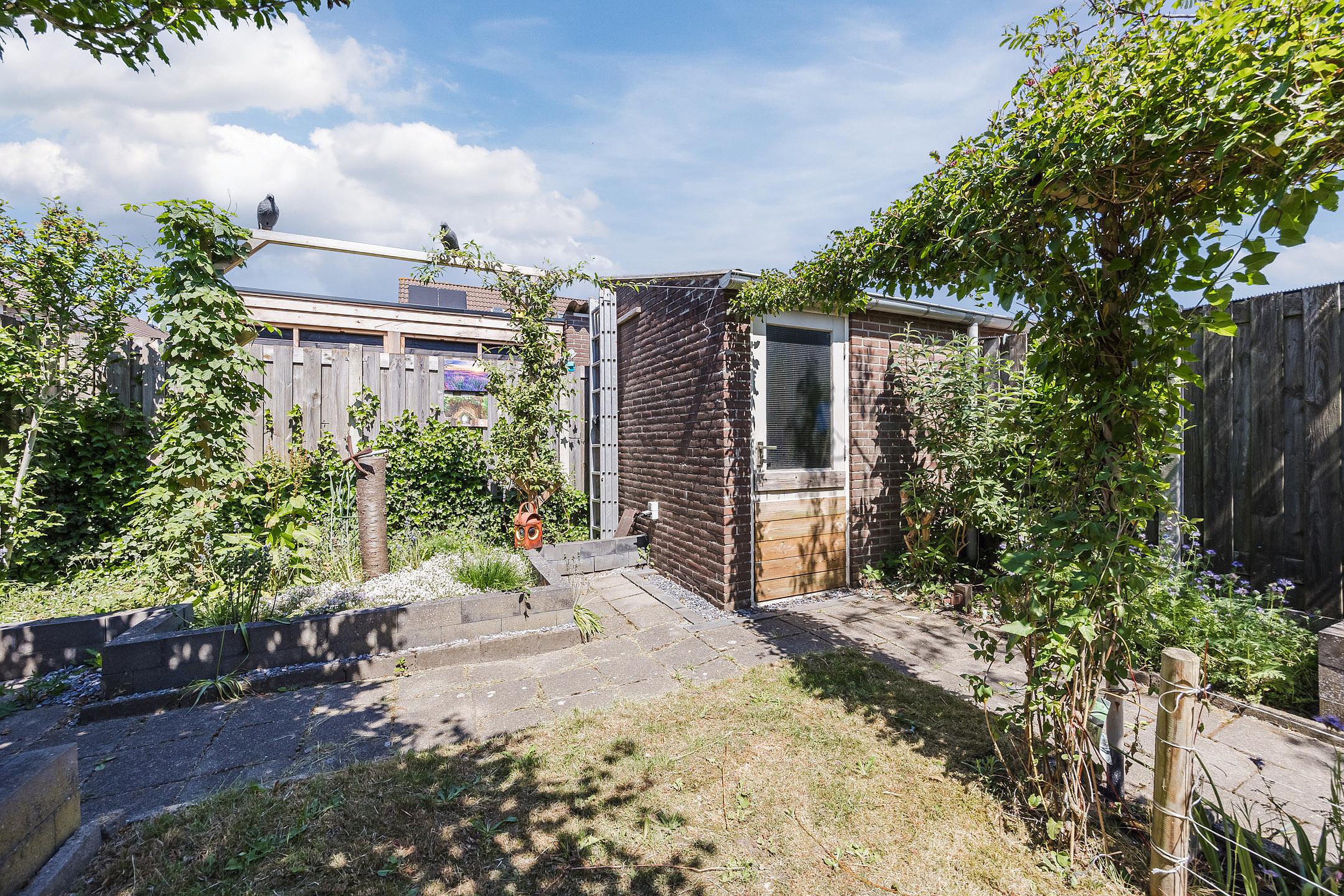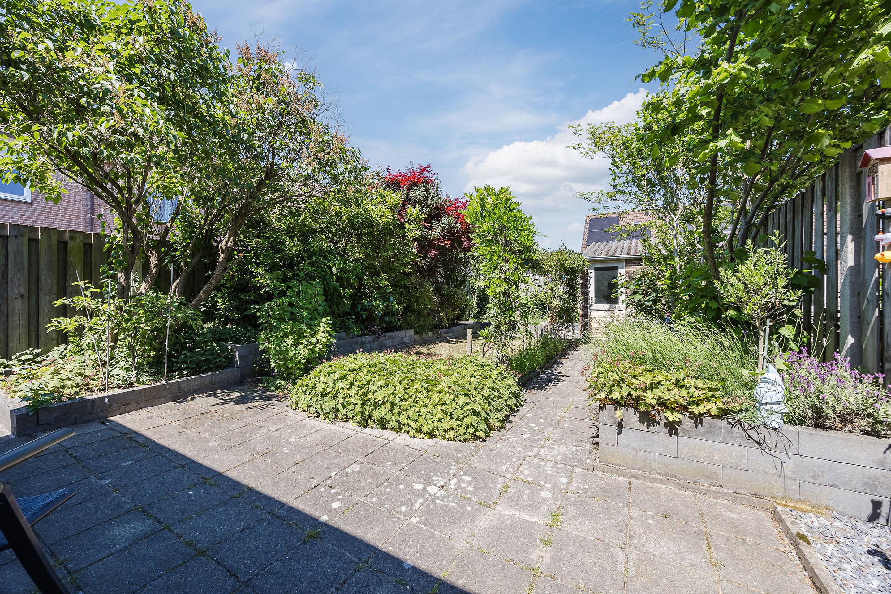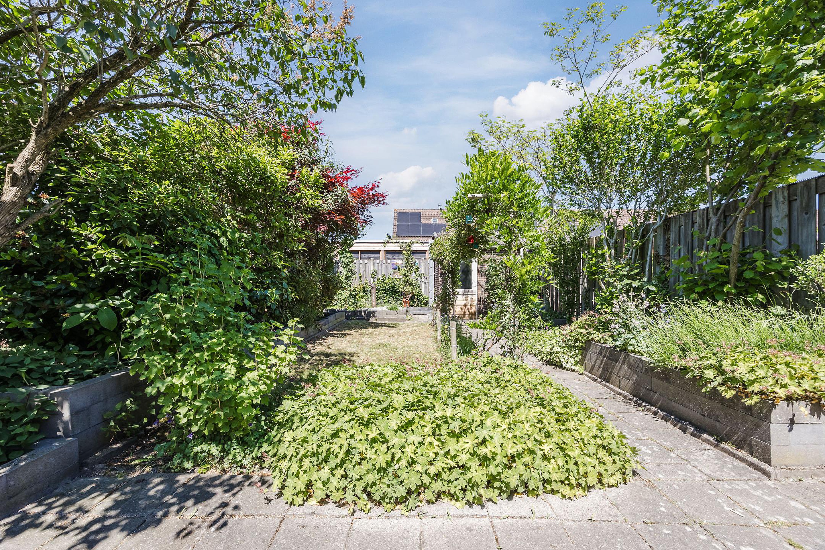 De woning heeft een voor-, zij- en achtertuin met achterom. Achterin staat een vrijstaande stenen schuur met elektra. De tuin is goed onderhouden en diep genoeg om óók in de late uurtjes nog zon te pakken.