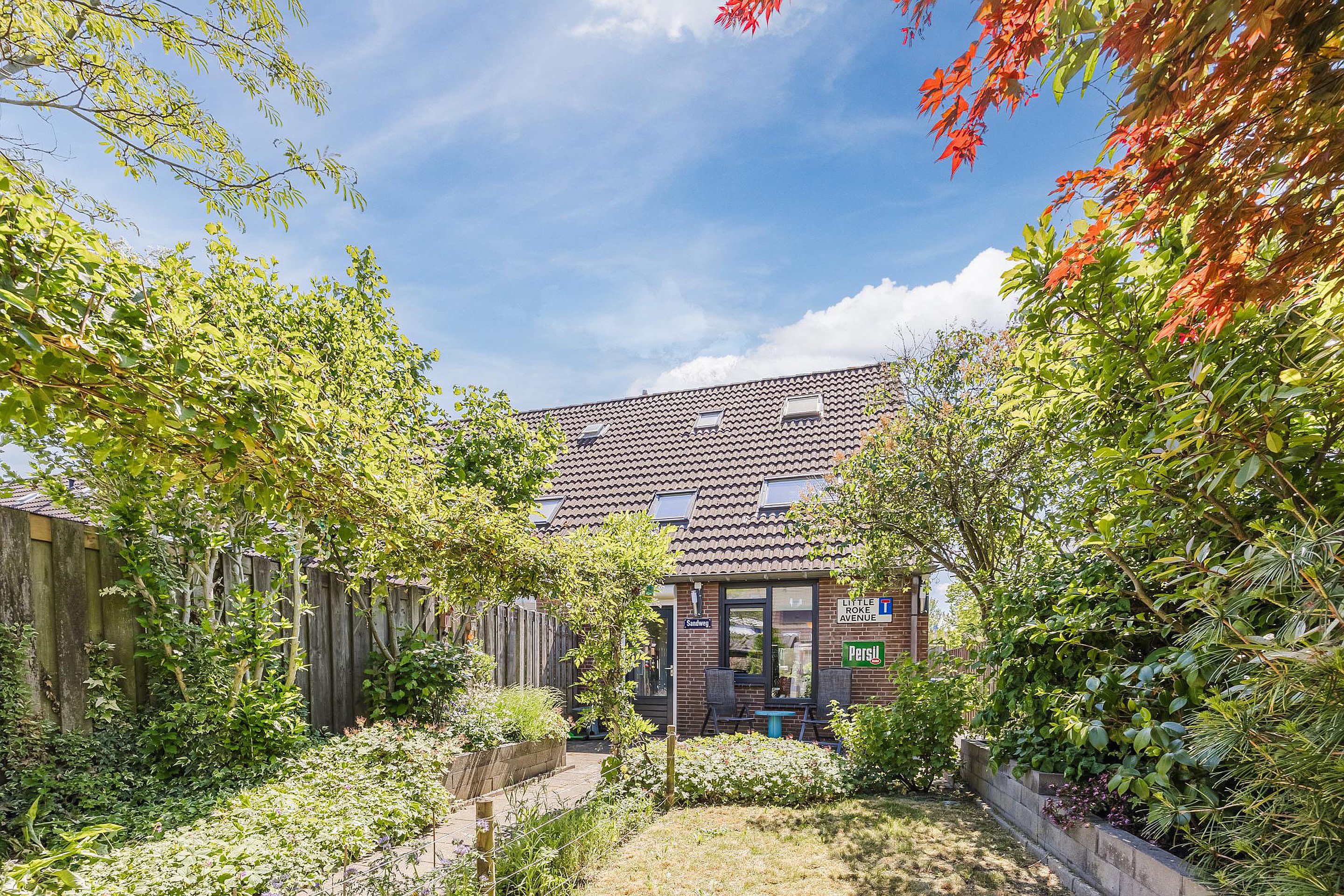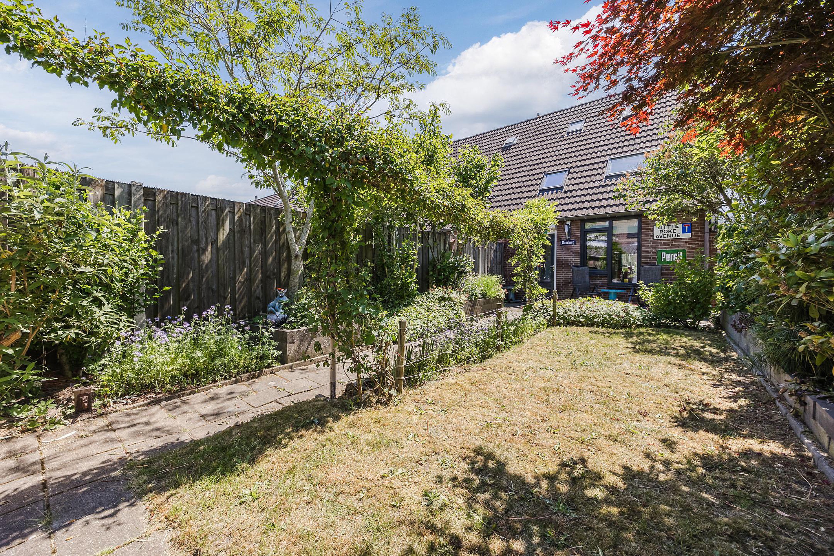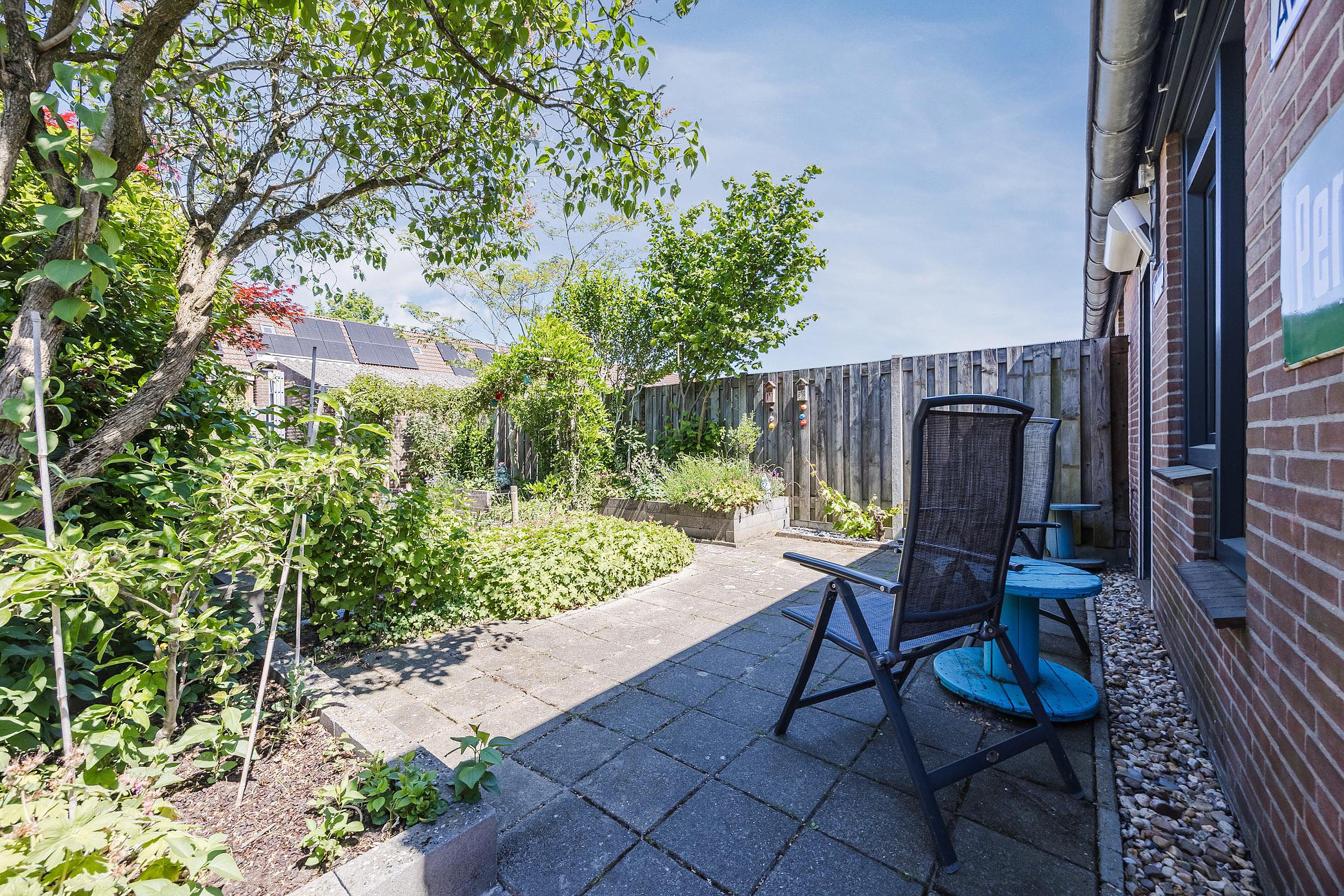 De woning heeft een voor-, zij- en achtertuin met achterom. Achterin staat een vrijstaande stenen schuur met elektra. De tuin is goed onderhouden en diep genoeg om óók in de late uurtjes nog zon te pakken.