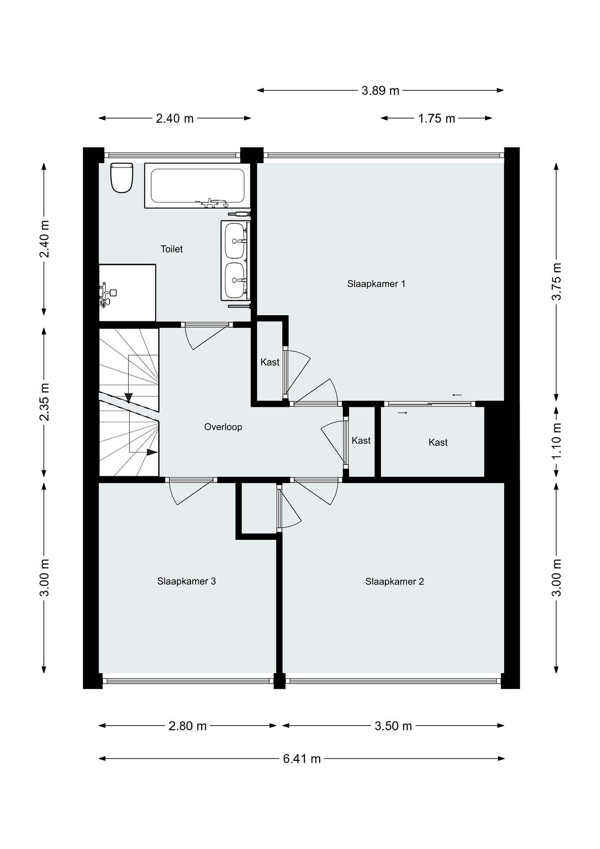 De L-vormige ingedeelde overloop geeft toegang tot drie slaapkamers, de badkamer en de trapopgang naar de tweede-/zolderverdieping. Praktisch is de aanwezige vaste kast waar spelletjes of het linnengoed in kan worden opgeborgen.