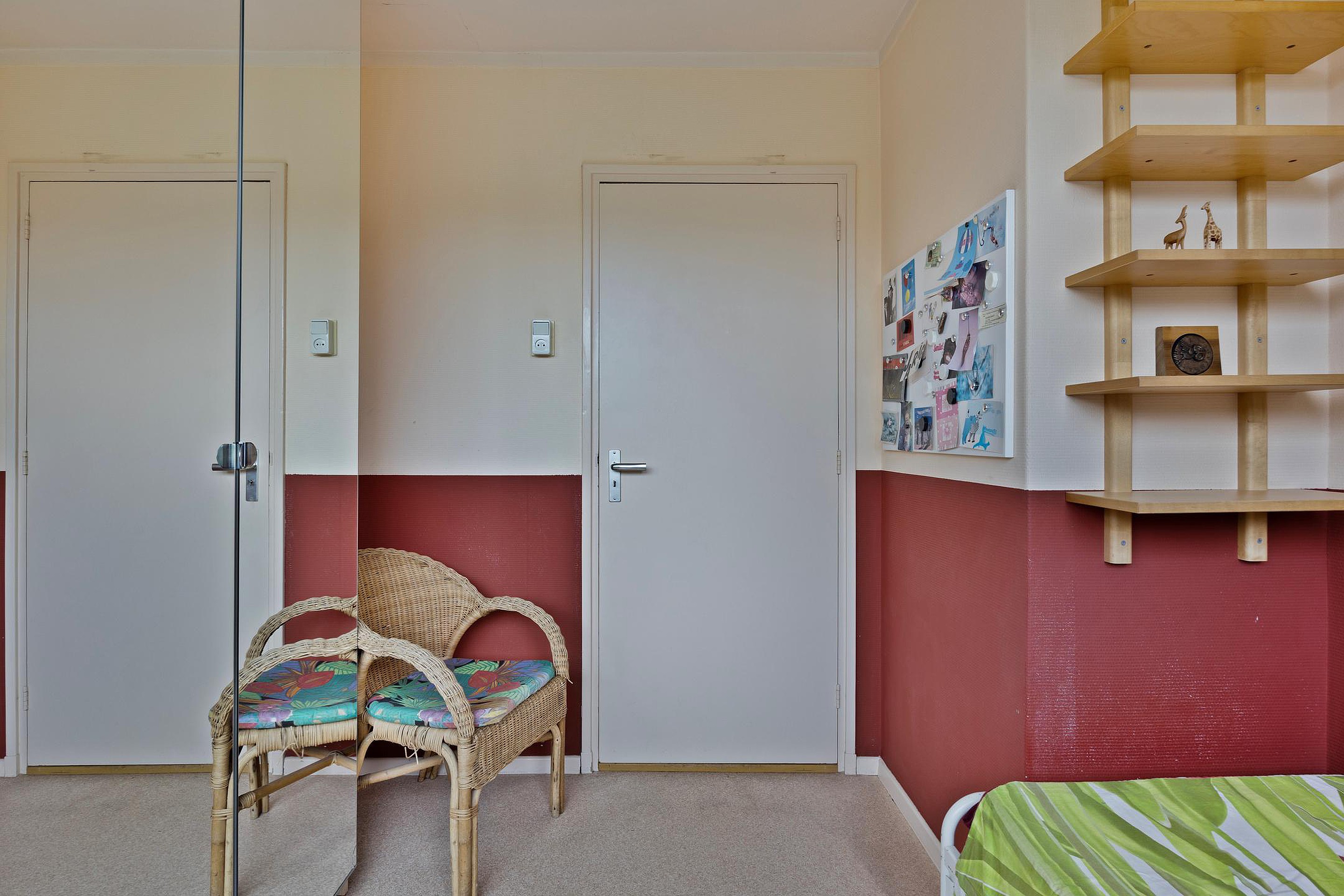 De perfecte kinderkamer die ook heel goed te gebruiken is als thuiskantoor. Wederom doordat de raampartij over vrijwel de geheel breedte van de kamer is gesitueerd kan het daglicht goed binnenkomen wat de kamer extra fijn doet aanvoelen. Een bed, kast en bureau het past er allemaal in.