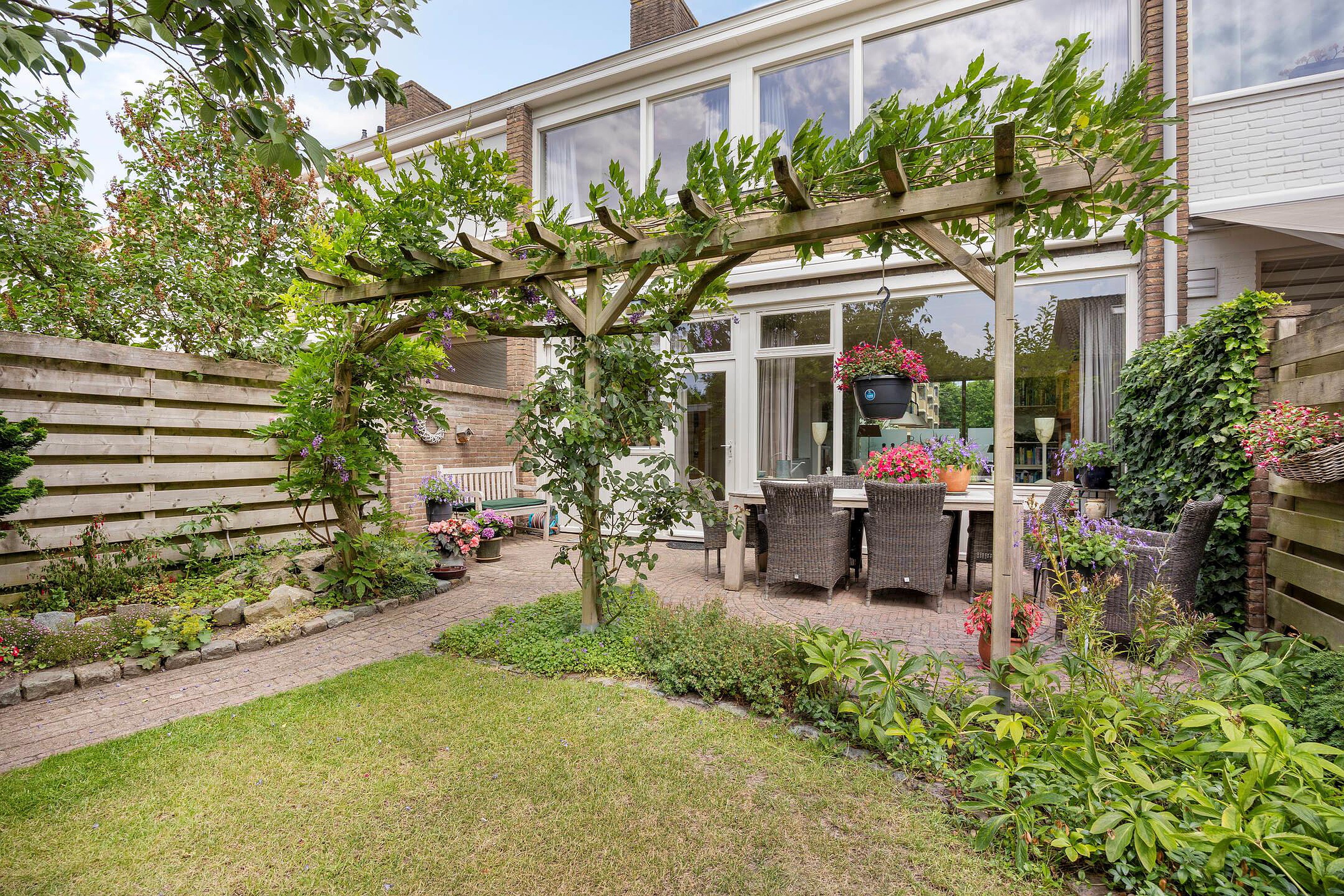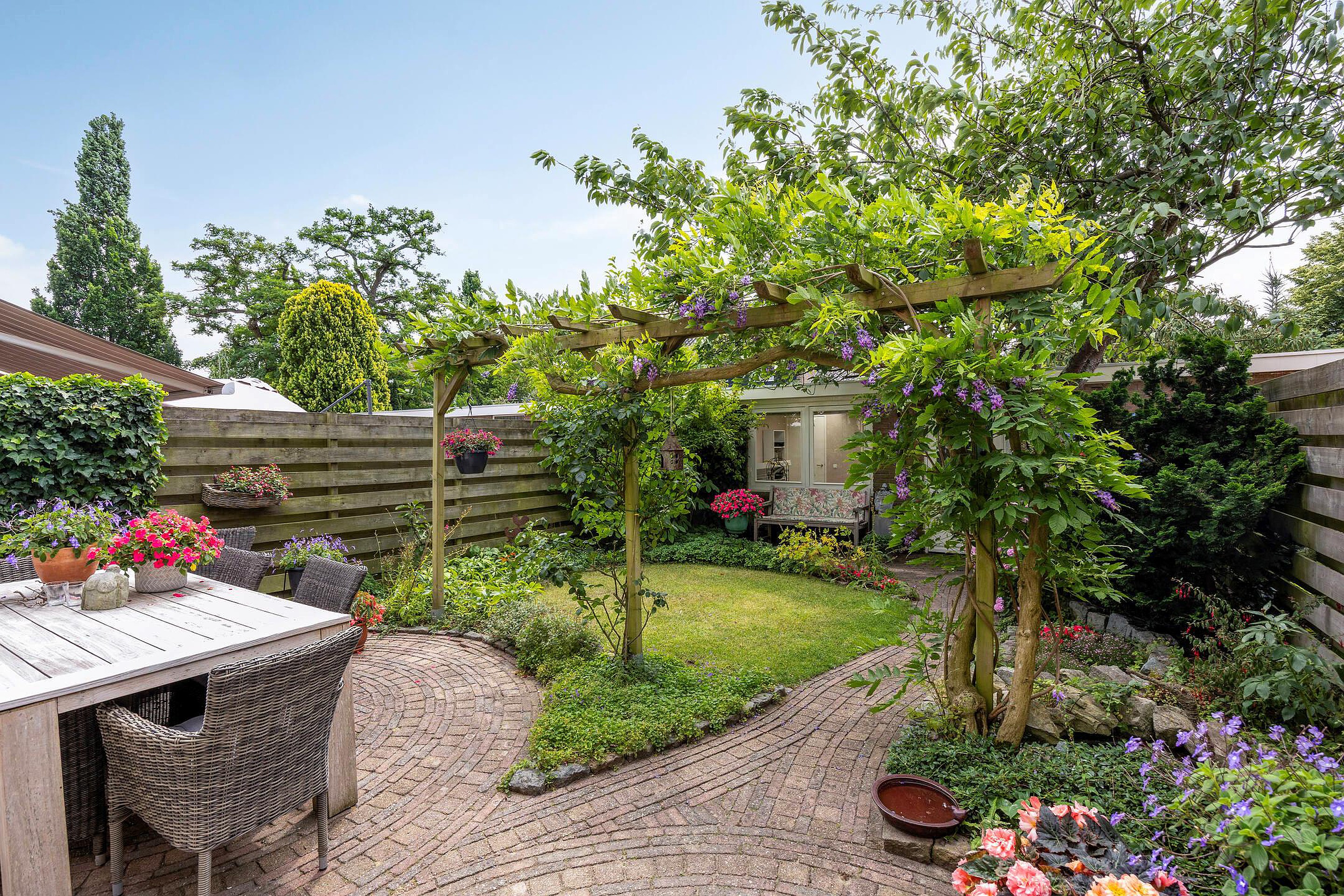 De achtertuin (afm. ca. 10,00 x 6,5) is gelegen op het zuidwesten en voorzien van een zonnescherm voor extra schaduw. De tuin heeft diverse borders, boompjes en best veel groen. De speels, maar vooral fraai aangelegde tuin heeft ook een mooi speelgazon en boom die zorgt voor wat schaduw. Je mag oprecht spreken van een sfeervolle tuin. Via de berging/kantoor ruimte is de achterom te bereiken wel zo praktisch.