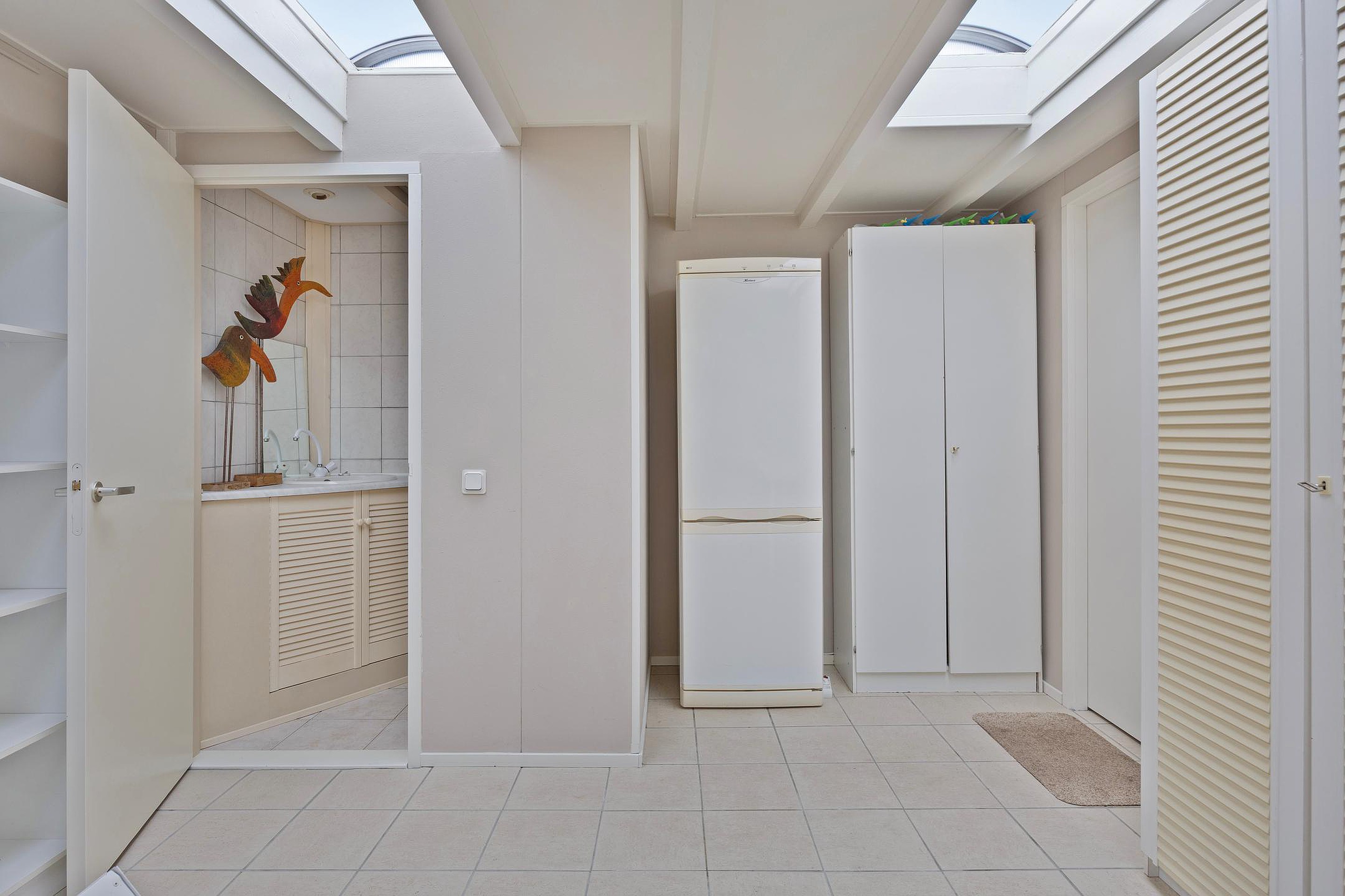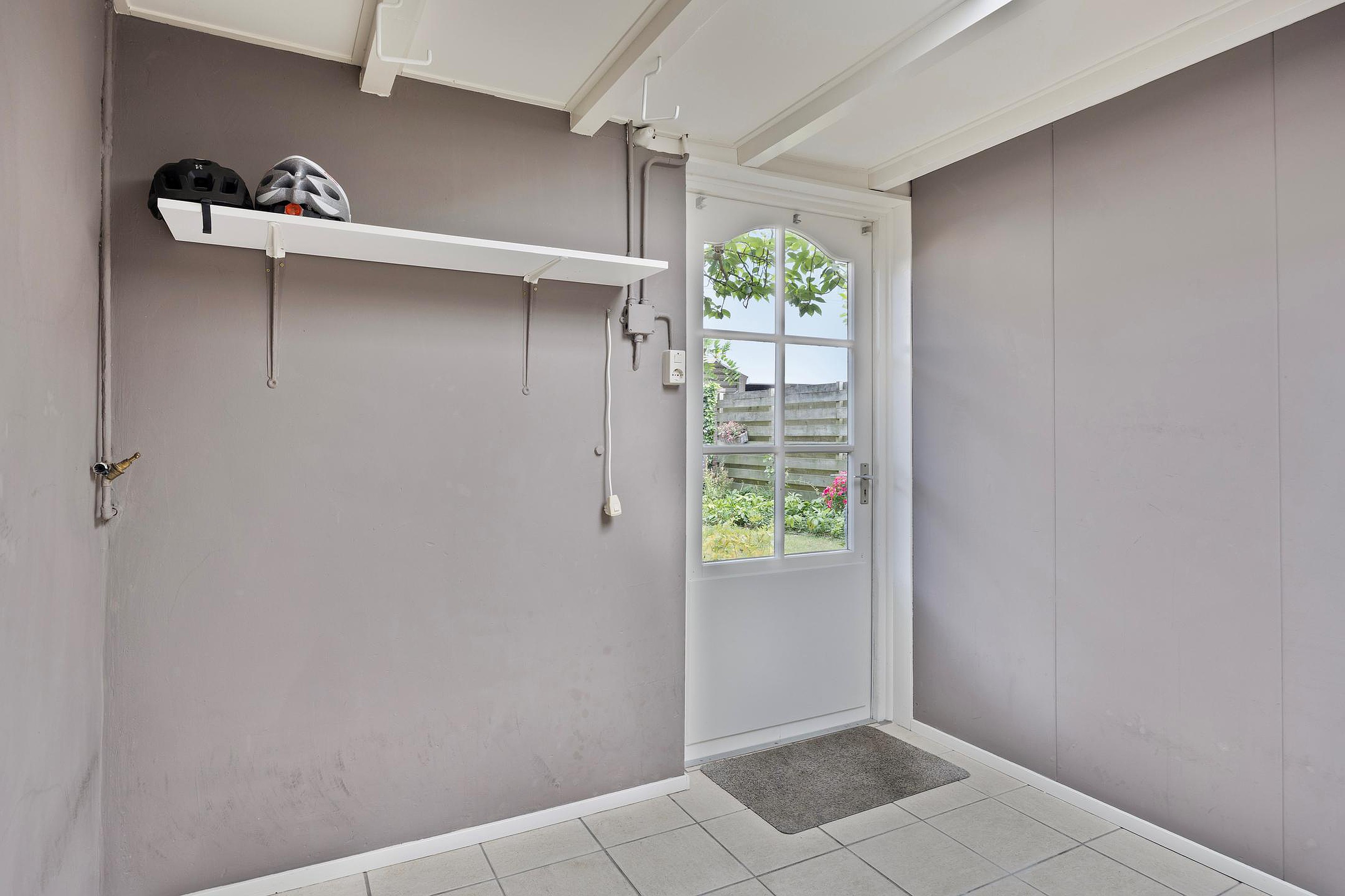 Het extraatje van de woning! De over de gehele breedte van het perceel geplaatste berging is verdeeld in een aantal ruimtes. Wat het totaal extra praktisch maakt. Totale vloeroppervlakte is circa 30 m2. De eerste ruimte is uitstekende te gebruiken als berging voor het tuingereedschap en de fietsen. Het portaal geeft toegang tot de kantoor/praktijk/hobbyruimte en het achterom. De vaste kasten zorgen voor de nodige bergruimte. Tot slot de multifunctionele ruimte van circa 14,5 m2 is voor de thuiswerkers onder ons haast een hebbeding. Hier kun je in alle rust werken en stiekem genieten van de tuin. Wil je misschien iets voor jezelf starten dan leent deze ruimte zich daar ook goed voor. In de vaste kast tref je een wastafel.