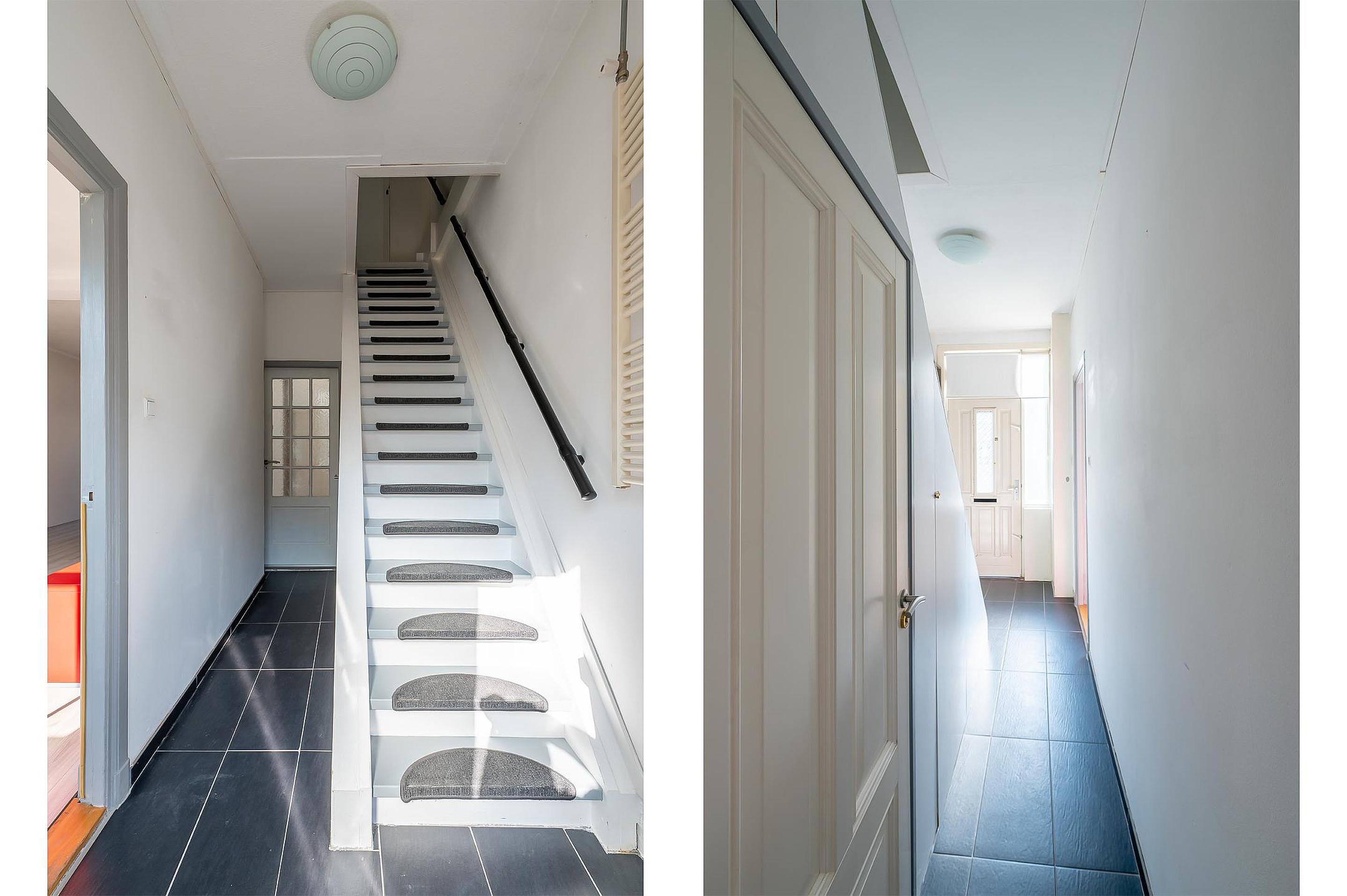 U komt binnen via de hal met toilet en trapkast. Aan de rechterzijde is de trapopgang naar de eerste verdieping en aan linkerzijde stap je de lichte woonkamer binnen. De lichte woonkamer heeft grote raampartijen die zorgen voor veel natuurlijk licht en een prettige woonsfeer. Aansluitend bevindt zich de eetkamer, de ideale plek voor een gezellig diner of een ontspannen avond met vrienden.