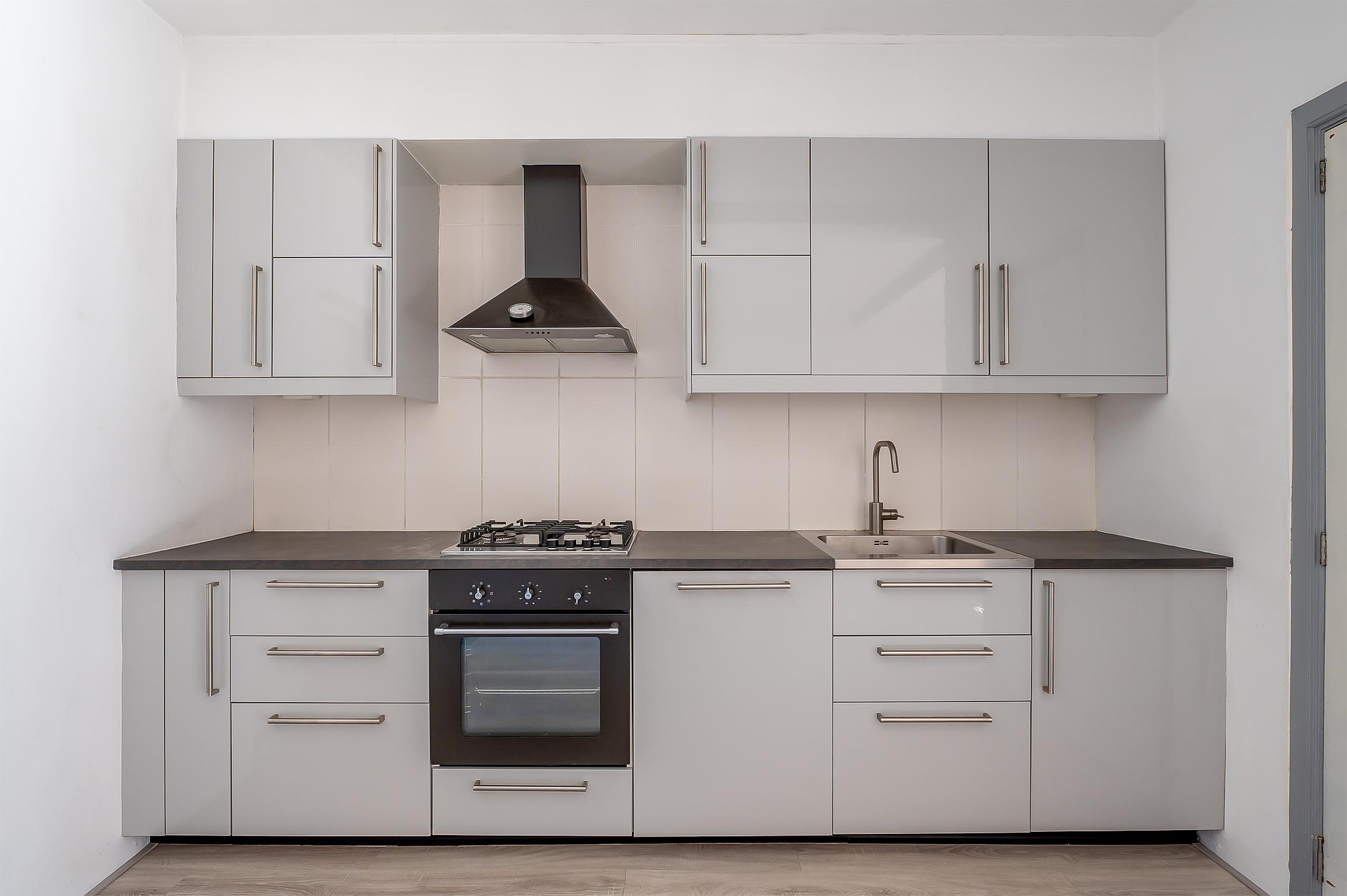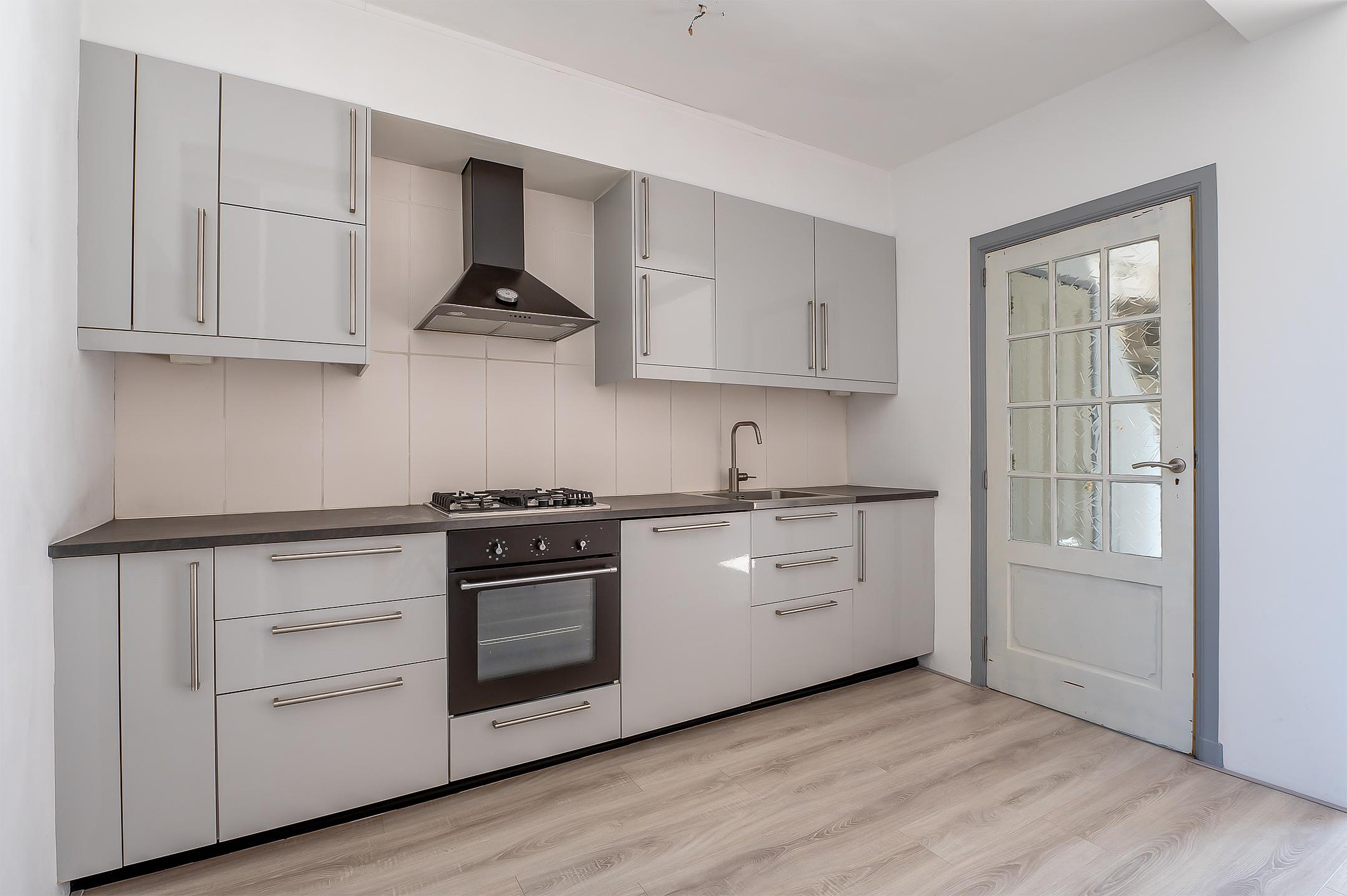 De keuken is praktisch ingericht en voorzien van diverse inbouwapparatuur. Direct aangrenzend vindt u de bijkeuken, die extra bergruimte en witgoedaansluitingen biedt. Vanuit de eetkamer en de bijkeuken heeft u toegang tot de achtertuin.