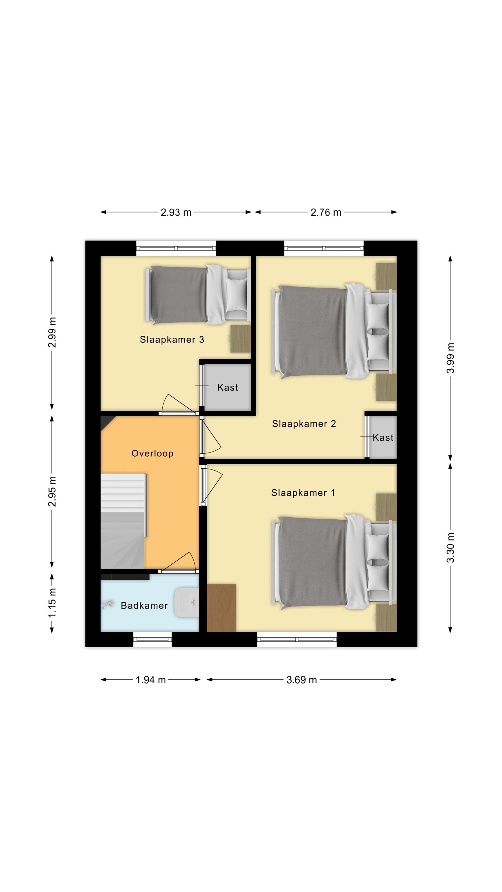 - Drie goed bruikbare slaapkamers