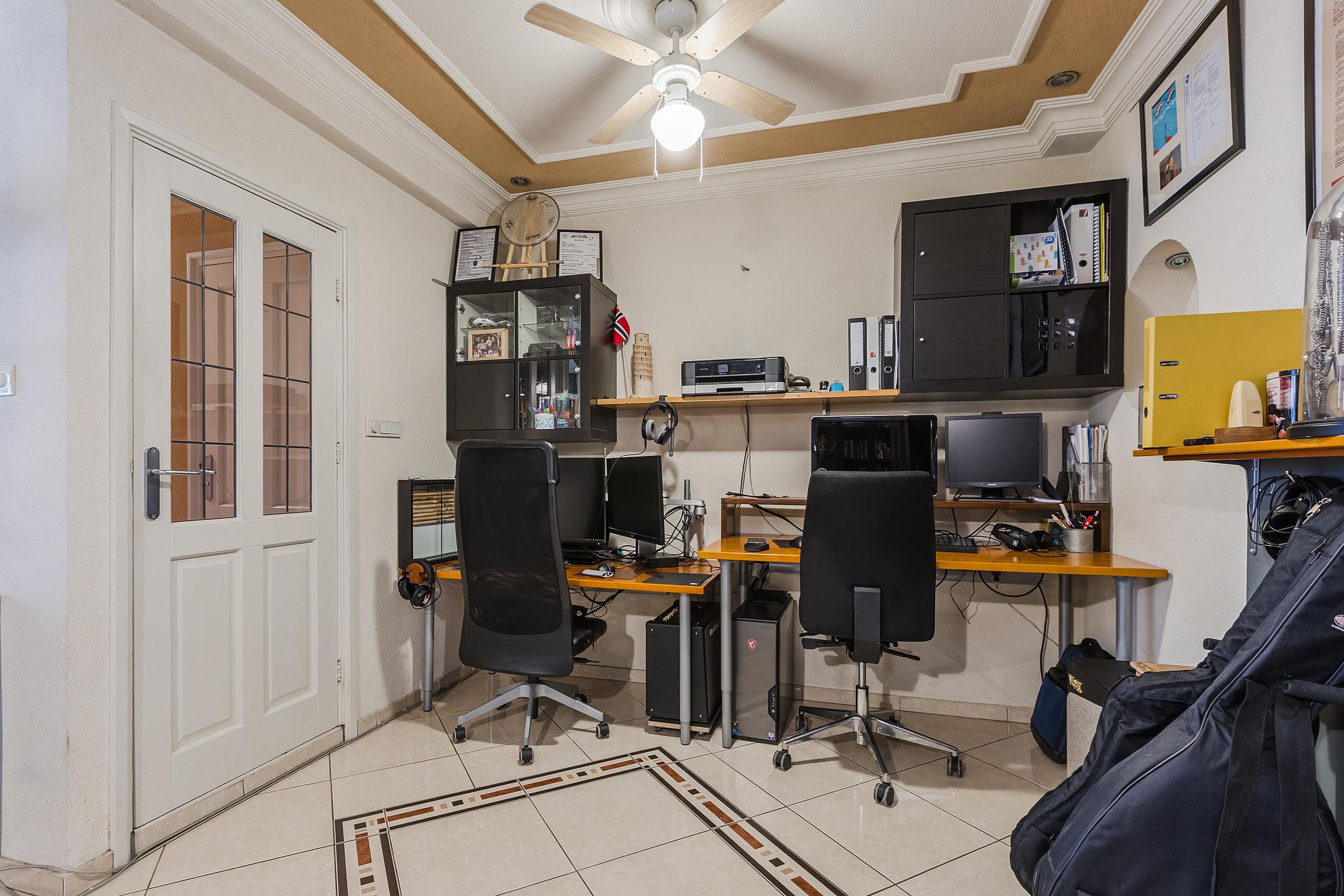 Op de eerste verdieping zijn drie slaapkamers aanwezig, elk met goede daglichttoetreding en voldoende ruimte, waardoor de kamers praktisch in te richten zijn. De badkamer is eenvoudig maar functioneel. De master-bedroom is voorzien van een rolluik en de slaapkamers achter zijn voorzien van screens.