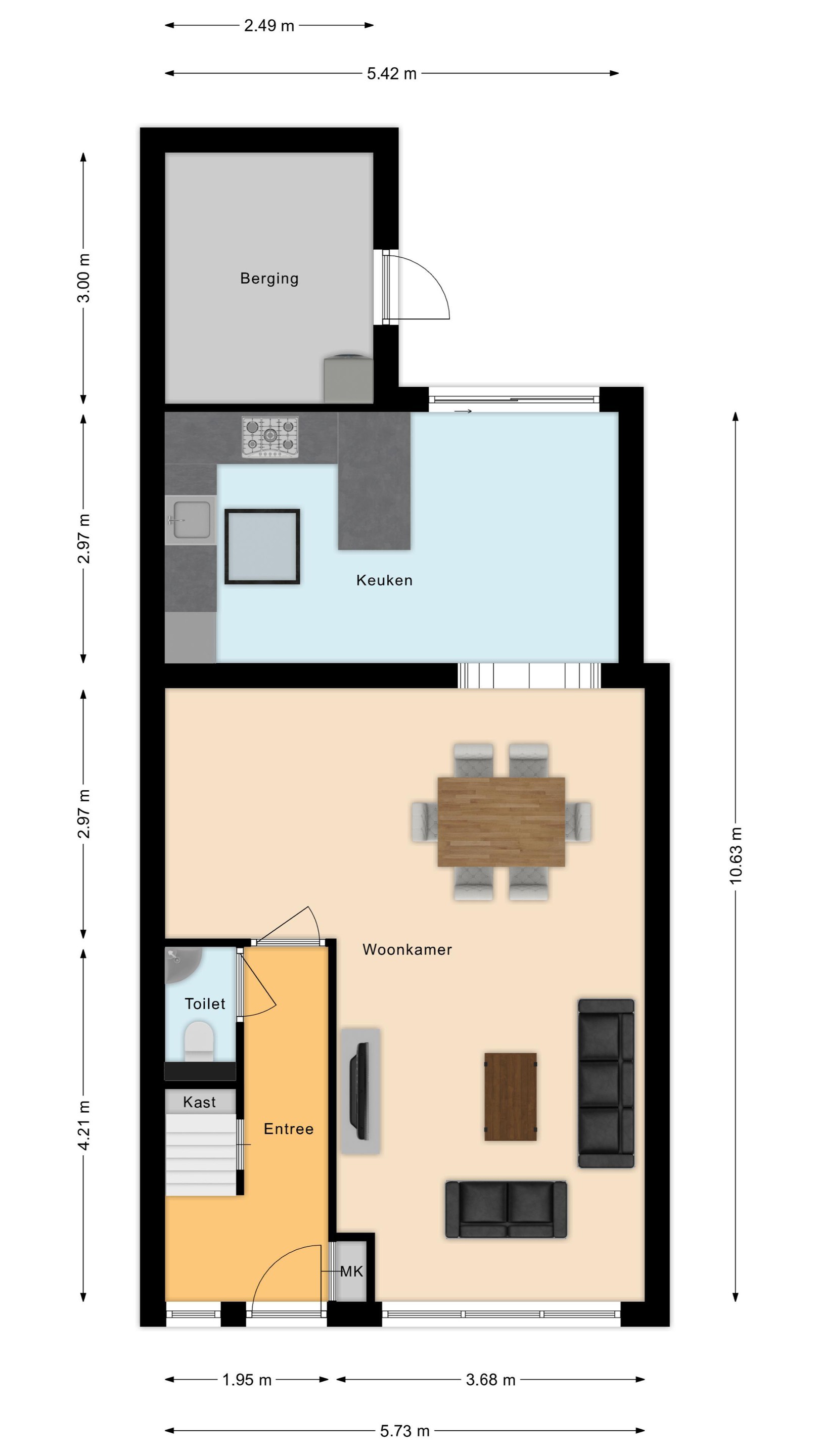 - Uitgebouwde woonkamer met halfopen keuken