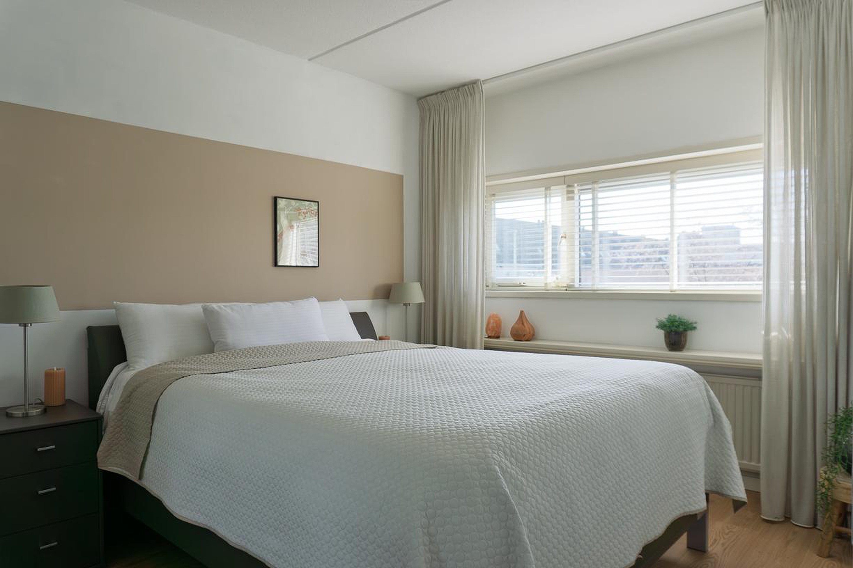 Deze kamer ligt aan de andere zijde van de trap en beschikt eveneens over grote ramen. Ook in deze kamer bevindt zich een vaste inbouwkast. De afwerking is gelijk aan de afwerking van slaapkamer 4.