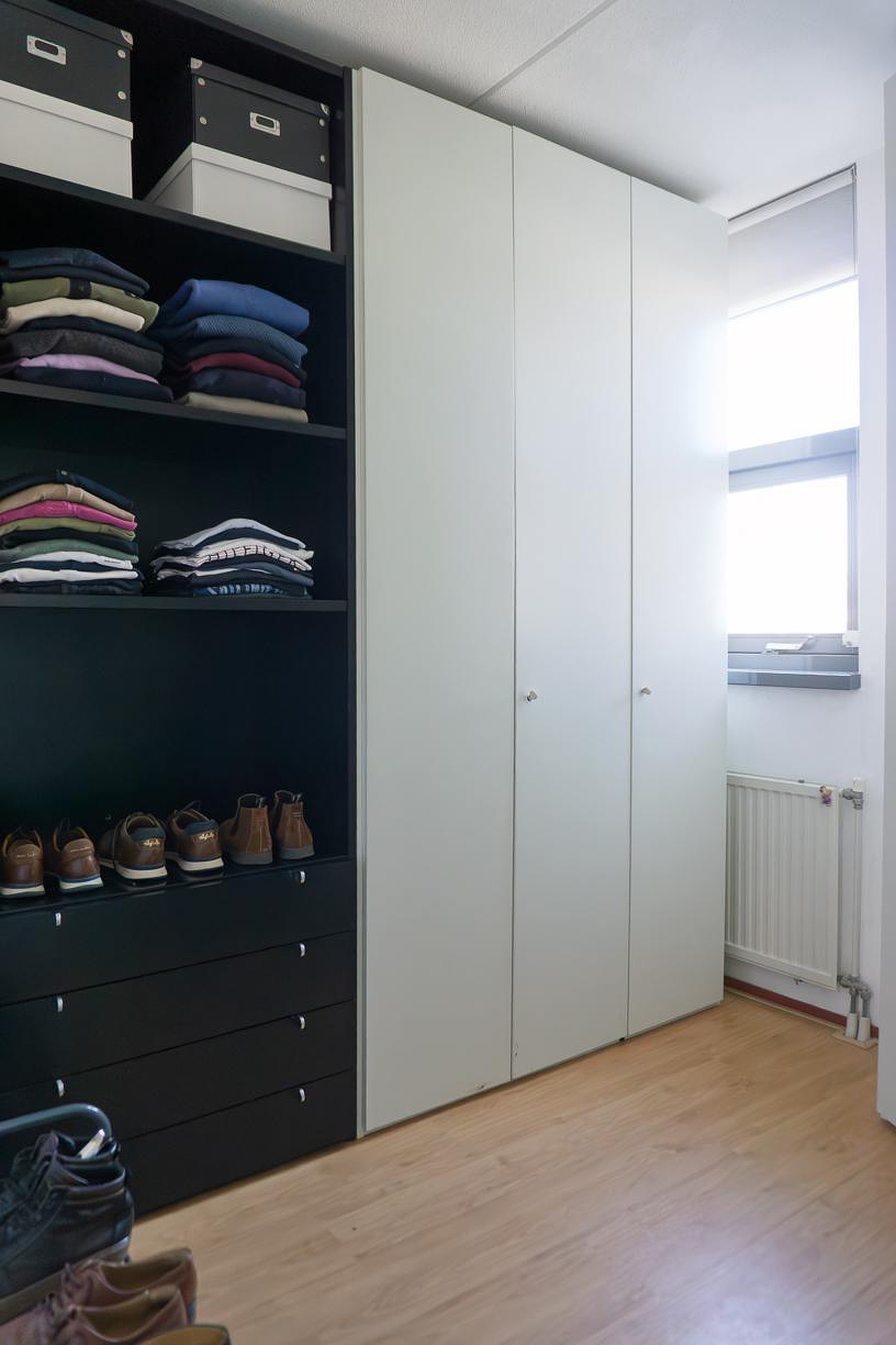 Deze slaapkamer is aan de voorzijde van de woning gelegen. Een vaste kast voor kleding is aanwezig. De wanden zijn afgewerkt met stucwerk en het plafond is afgewerkt met spuitwerk. Op de vloer ligt laminaat.