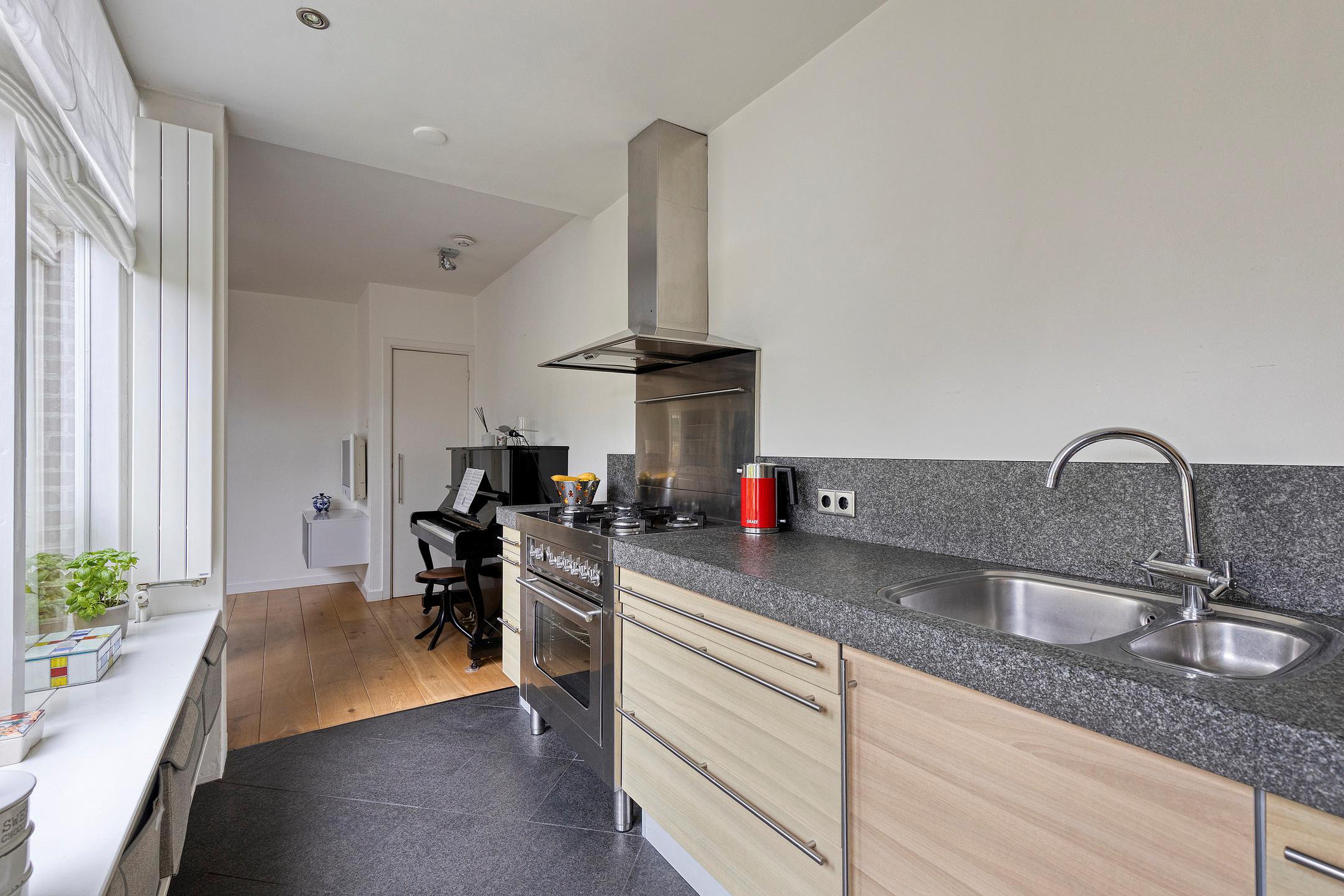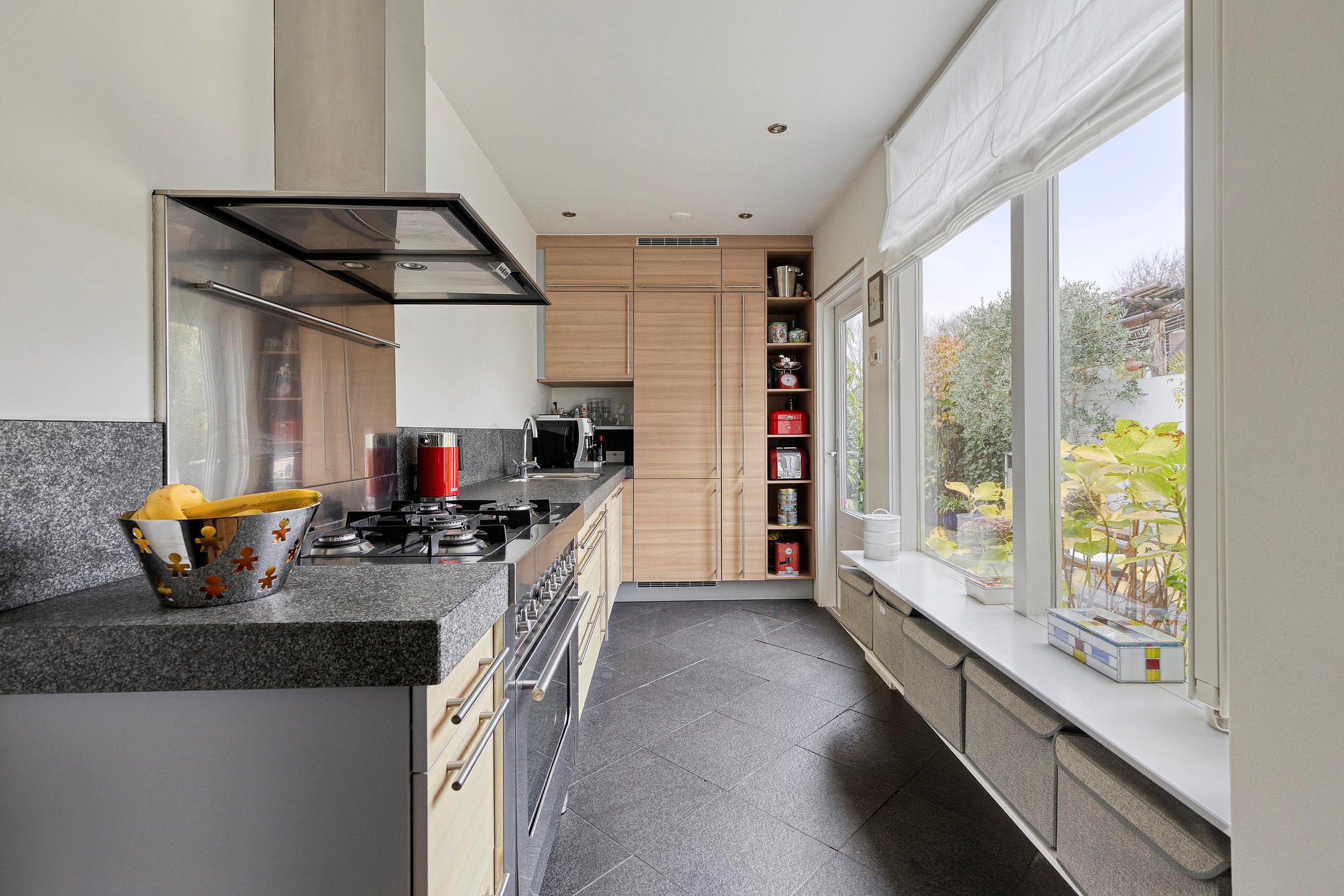 De openkeuken - in hoekopstelling - is super praktisch om de heerlijkste maaltijden in te bereiden. Het is een lichte ruimte door het flinke raampartij en via de achterdeur is er toegang tot de tuin. Het keukenblok heeft een massief natuursteen werkblad en is van alle gemakken voorzien, zoals: