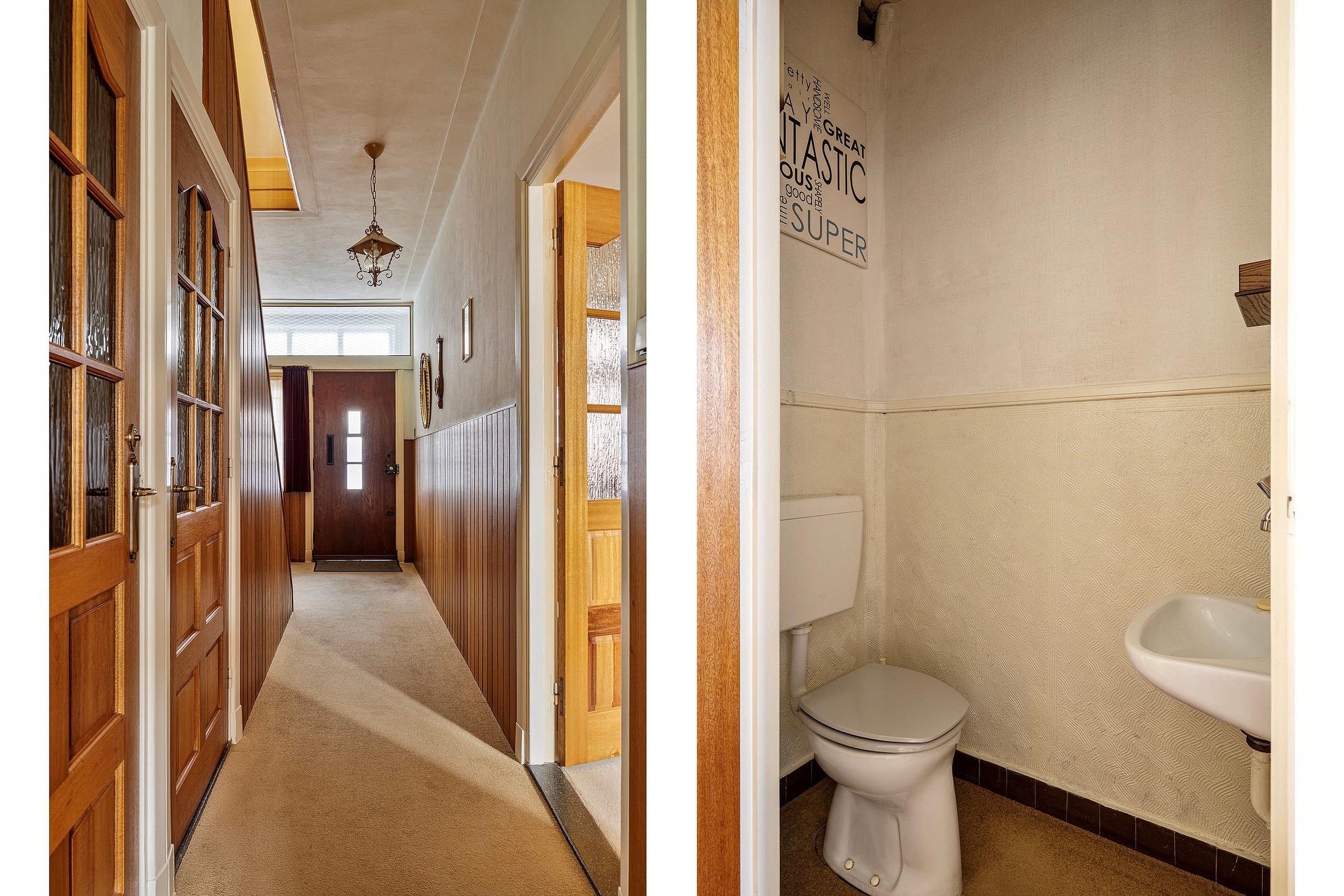 Heerlijk langwerpige hal waar voldoende ruimte is om de jassen op te hangen, zonder dat deze in de weg hangen. Via het overdekte portaaltje stap je de hal binnen die direct het sfeertje van een woning laat voelen. Het bovenlicht, het nisje naaste de deur zijn allemaal leuke details. De hal geeft toegang tot de woonkamer, keuken, meterkast, trapkast, het toilet en de trapopgang naar de verdiepingsvloeren.