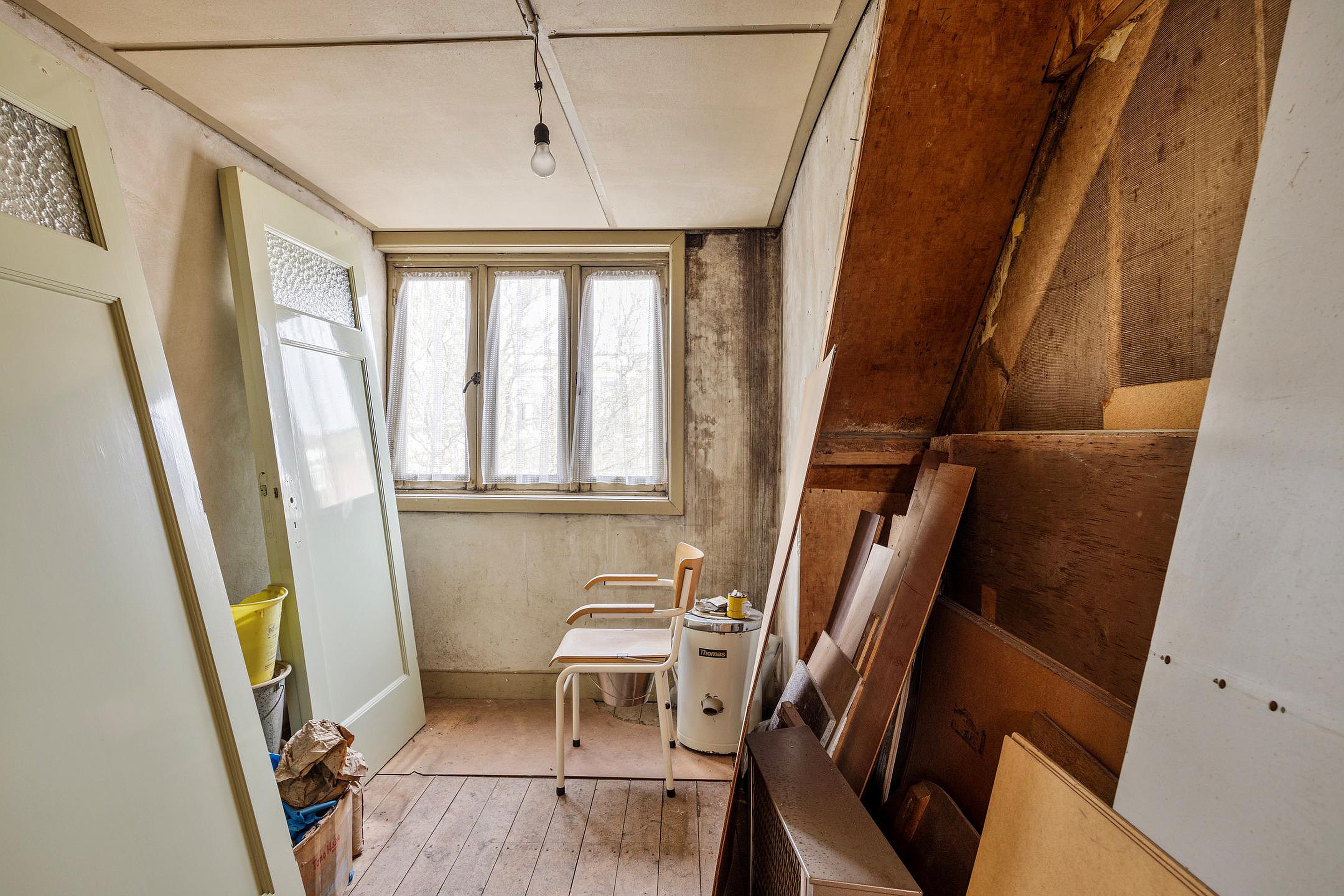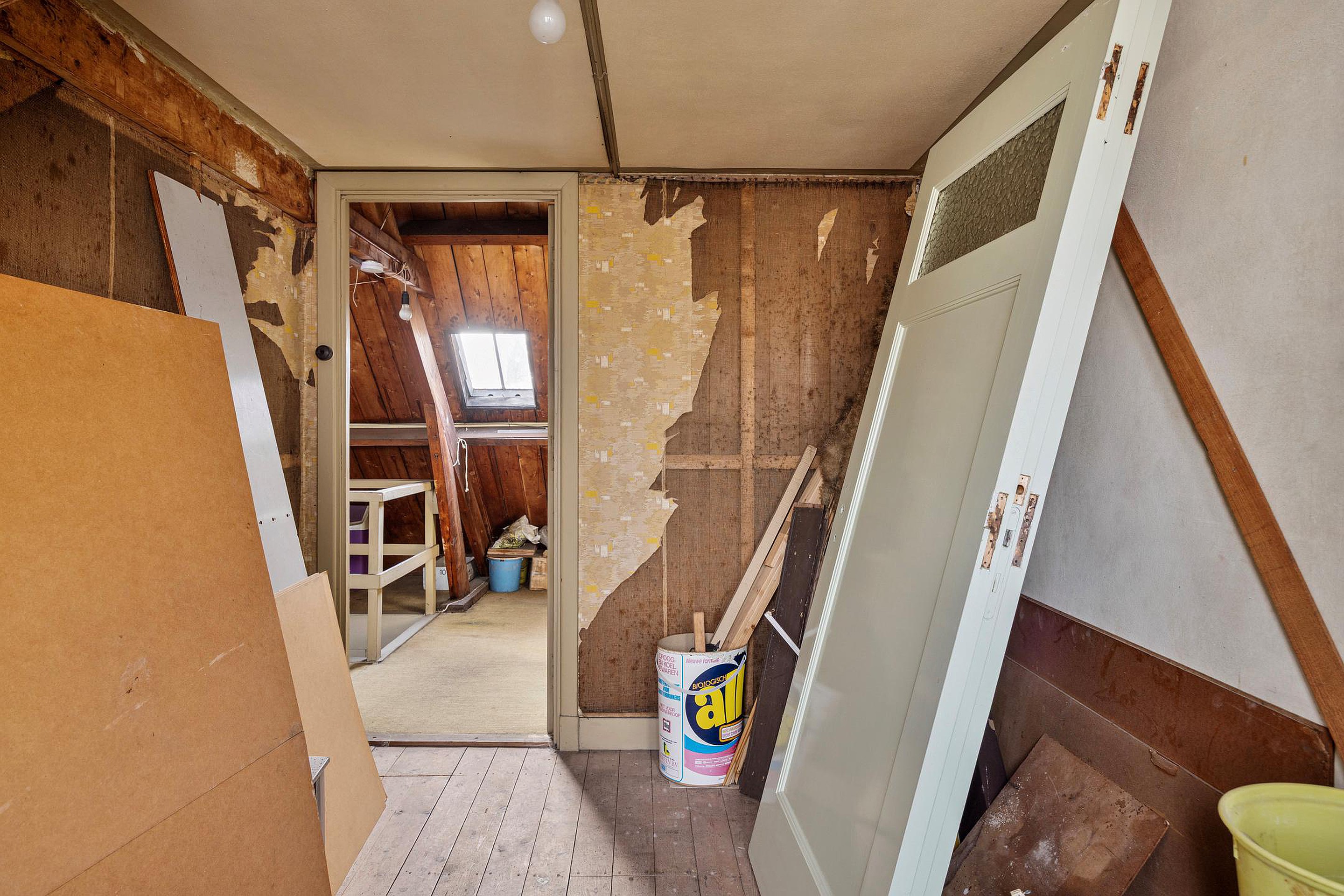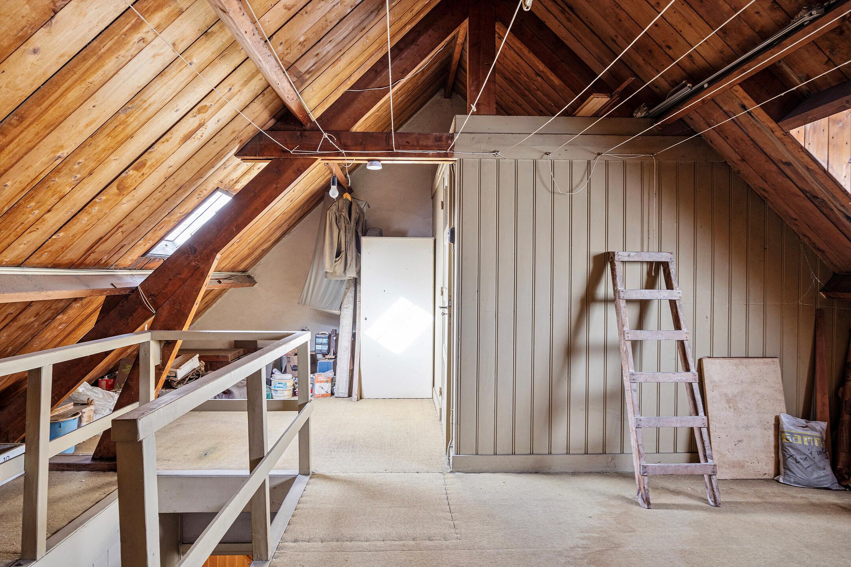 Het extraatje van de woning. De spanten en balken zijn nog mooi in het zicht. Maak je hier een hele verdieping voor je zelf en je partner? Of breidt je (net als de beide buren) de zolder uit, waardoor je met gemak twee extra slaapkamers kunt creëren. Dit kun je allemaal met de tijd ook aanpakken. De dakkapellen zorgen voor veel lichtinval. Momenteel is er op de zolder al een kamertje gecreëerd. Er is volop ruimte voor de technische ruimte.