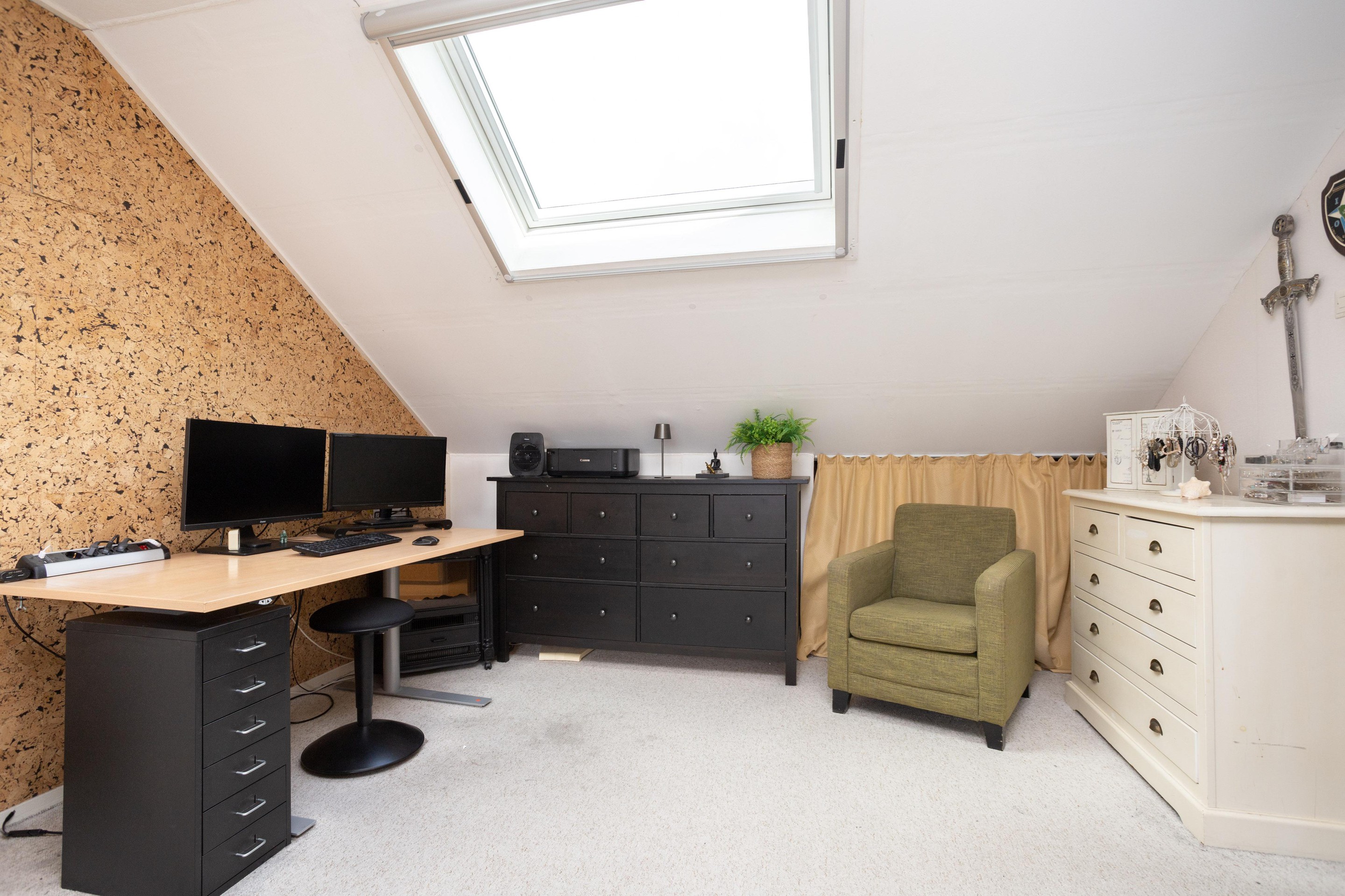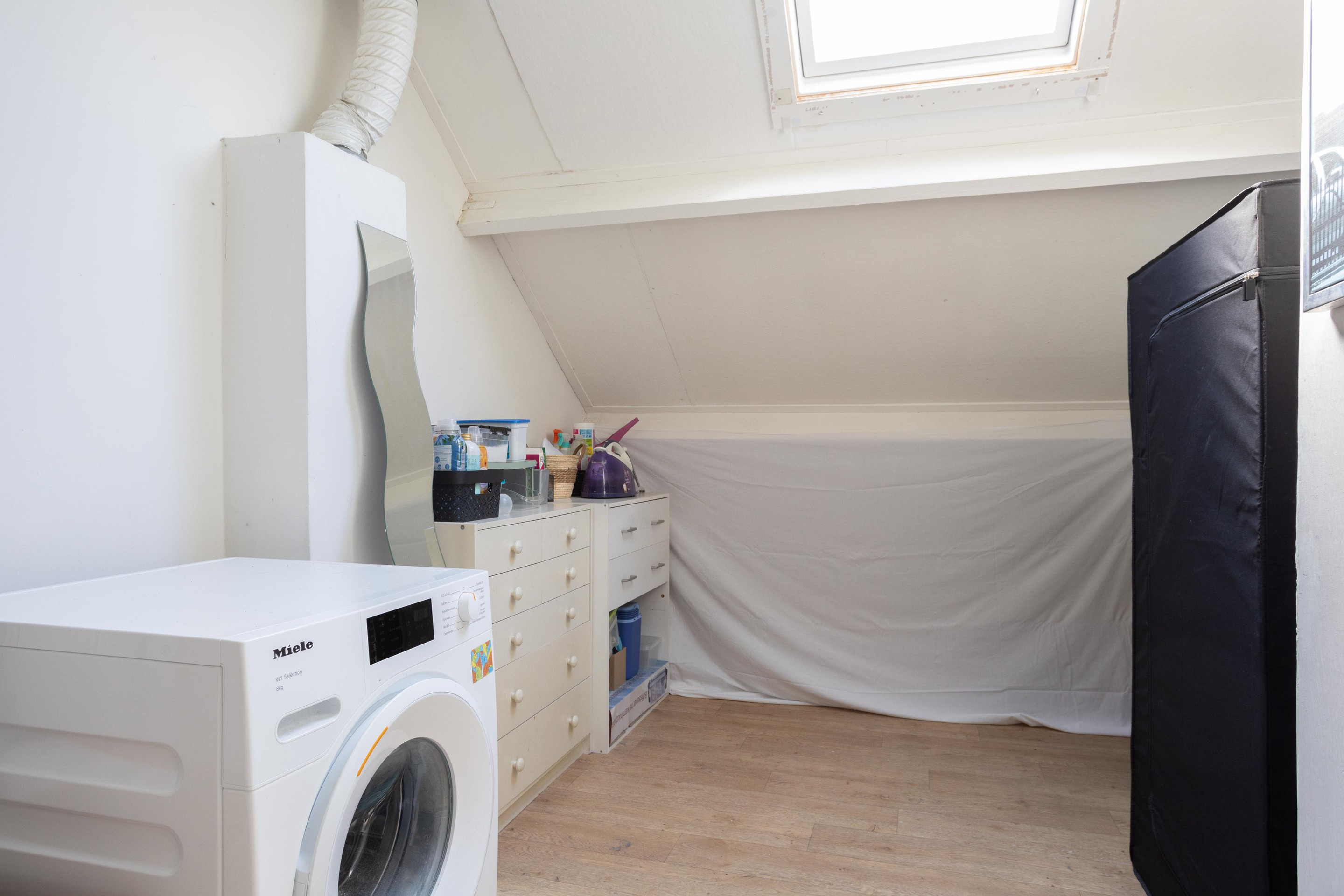 Wat een ruimte op deze verdieping. Een riante voorzolder met opstelling van de cv-combiketel (Remeha 2016) en de wasmachine. Maar ook treft u hier de ruime vierde slaapkamer aan. Een ruime slaapkamer met dakkapel en een dakraam.