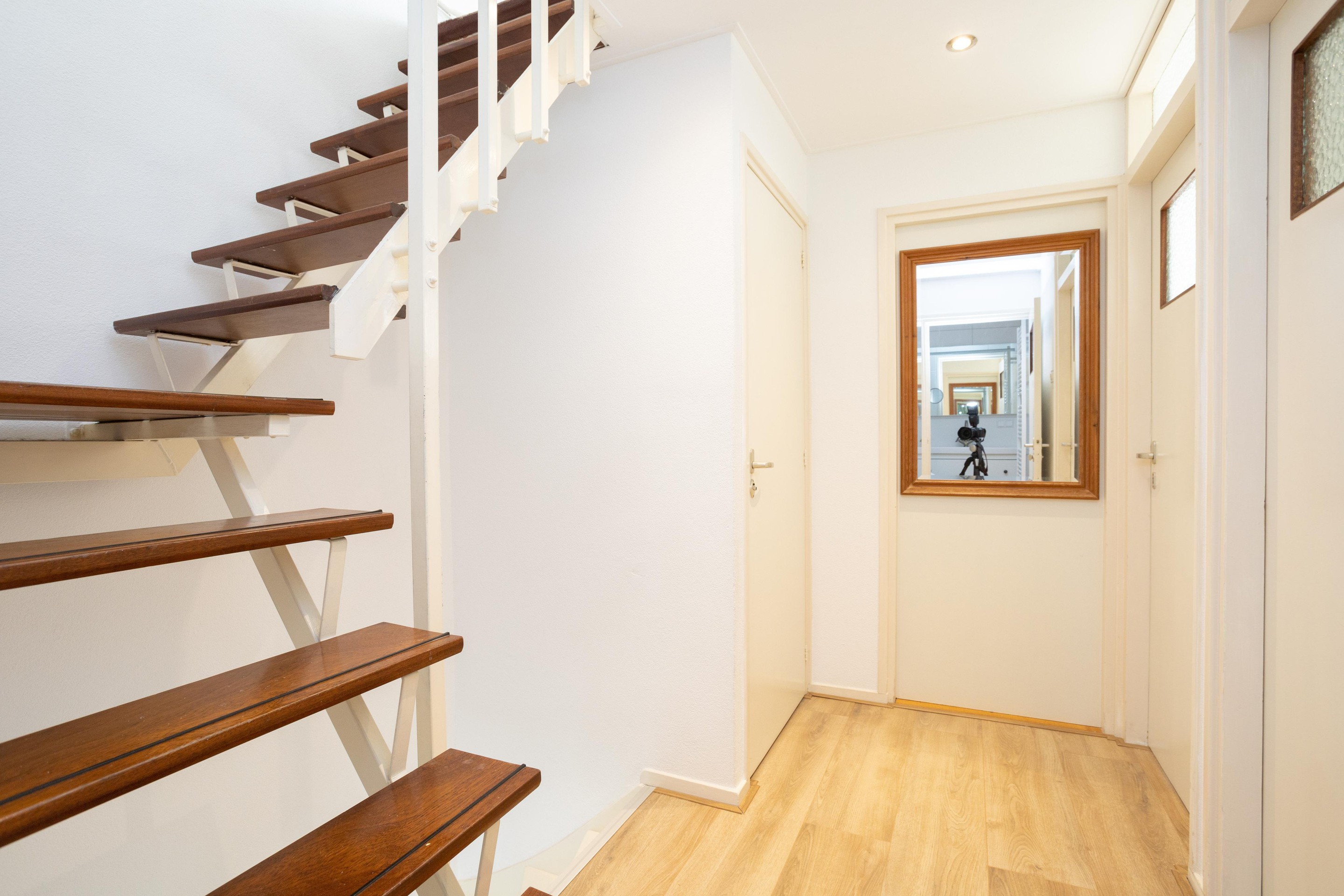 Op deze verdieping 2 royale slaapkamers en de badkamer. De slaapkamer aan de achterzijde is over de gehele breedte en beschikt over een heuse walk- in closet en sunscreens (2024). De mogelijkheid is er om van de deze ruime inloopkast een extra slaapkamer te realiseren. De luxe badkamer (2022) is volledig betegeld en geschikt over een royale inloopdouche en een verwarmde spiegel. Let ook op het plafond deze is prachtig verlaagd en voorzien van spots. Tot slot is er nog een apart toilet (2022). De begane grond en de eerste verdieping is voorzien van een keurige laminaatvloer (2021).