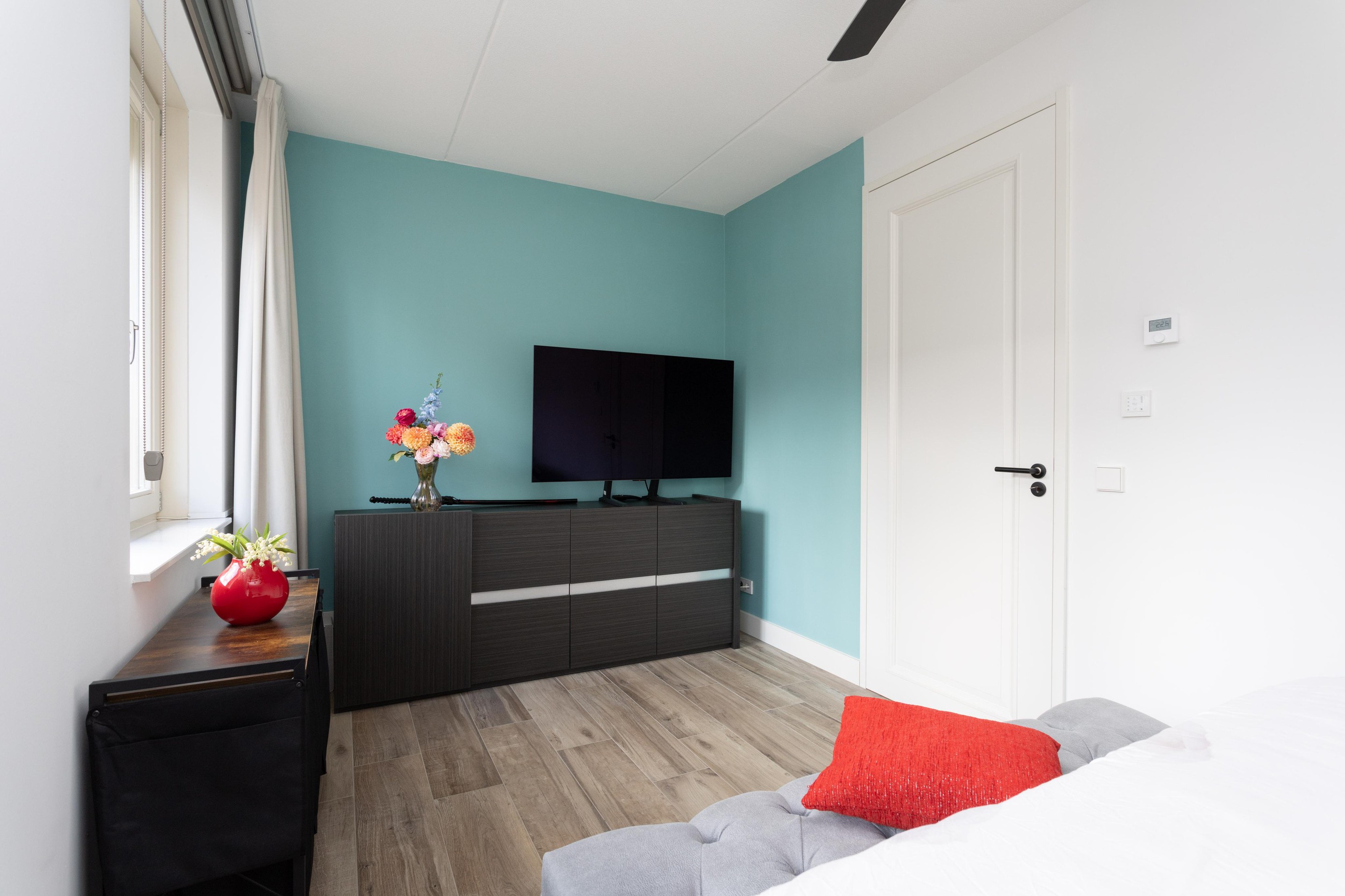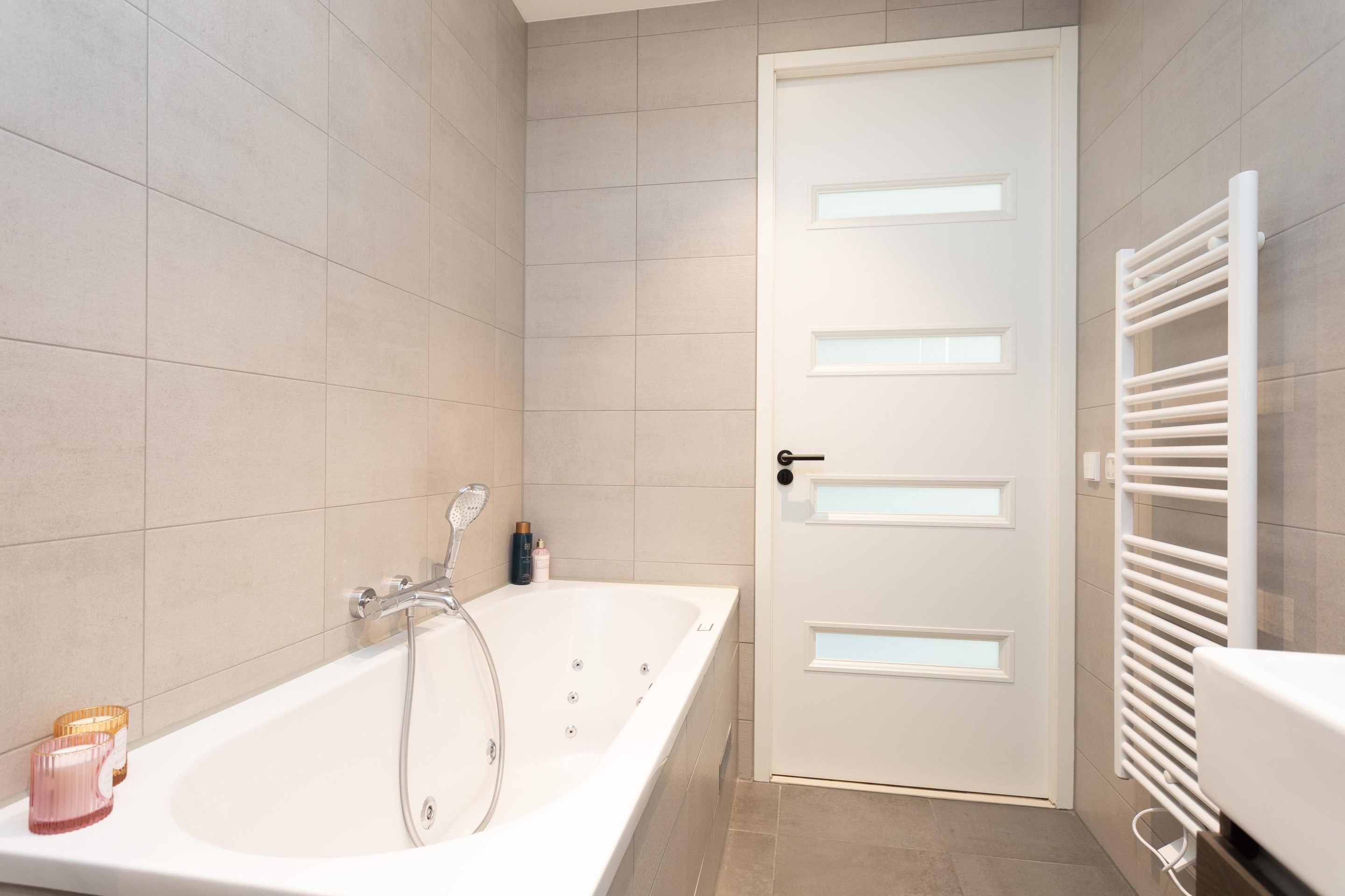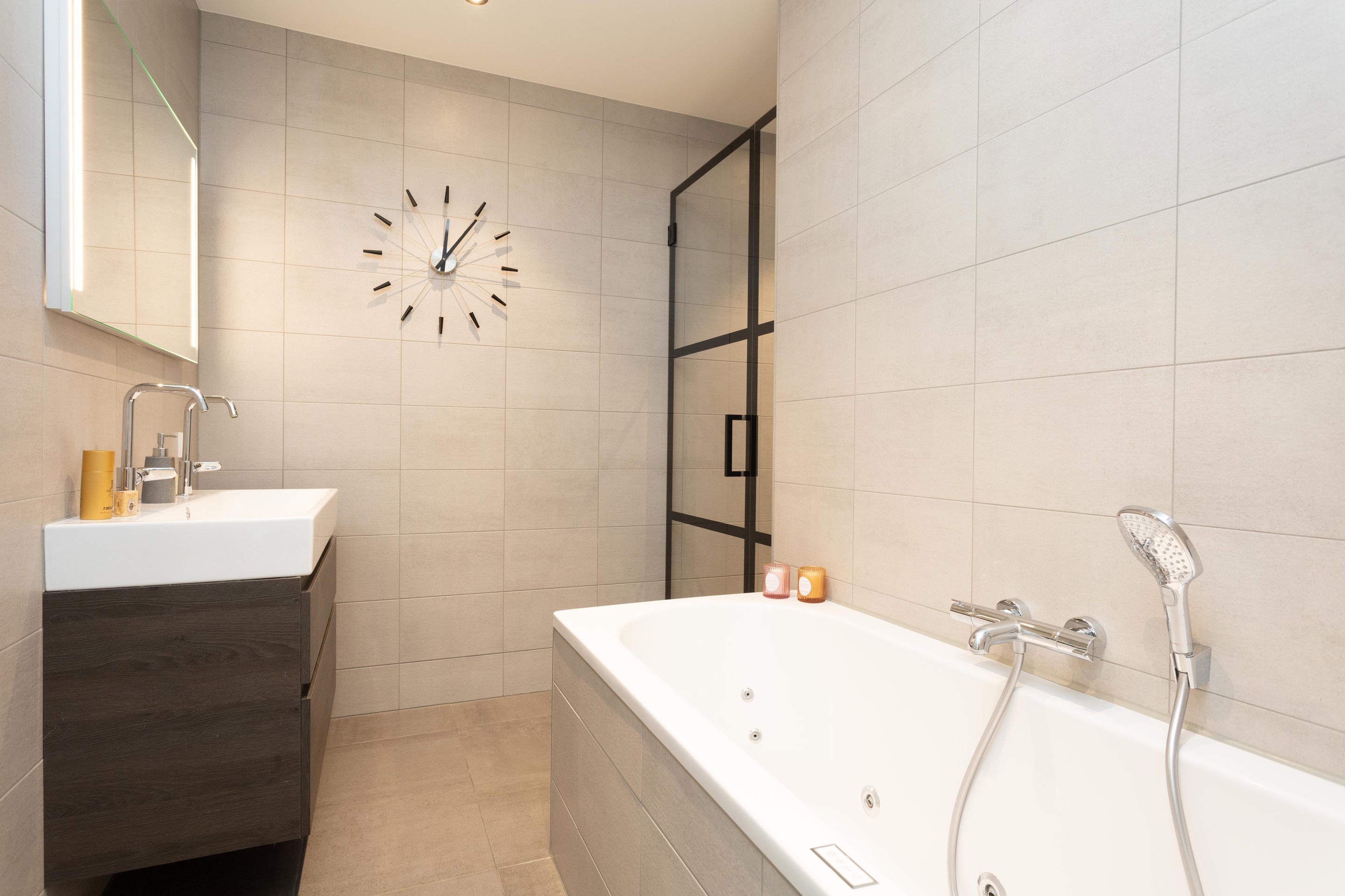 Op deze verdieping 2 slaapkamers en de badkamer. Beide slaapkamers zijn over de gehele breedte van de woning. De luxe badkamer beschikt over een ligbad met streams, royale inloopdouche, dubbele wastafel en een verlaagd plafond met spots. Tot slot is er een apart toilet met fonteintje.