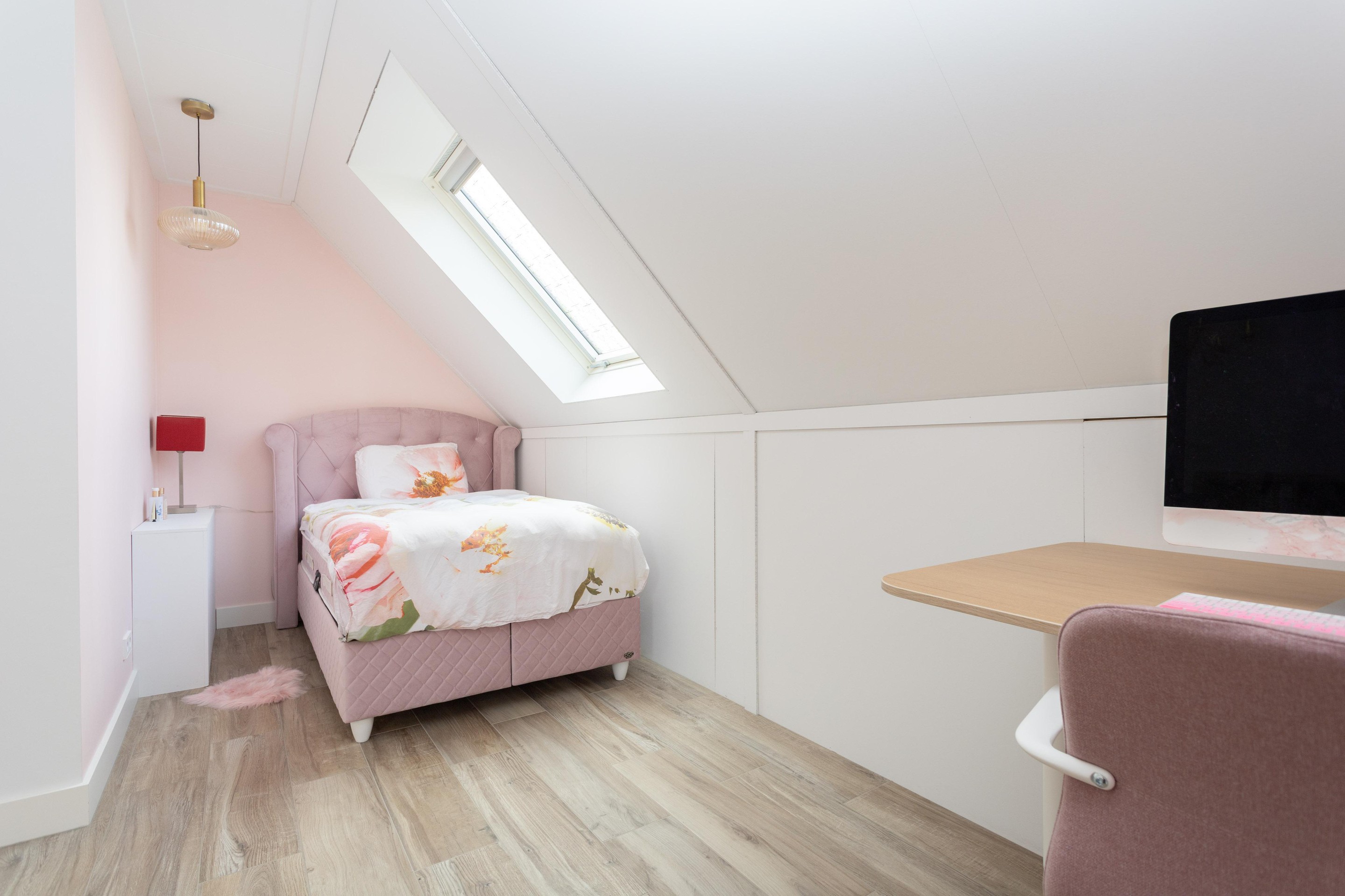 Dit is echt de bonus van de woning. Een prachtige verdieping met 2 slaapkamers. Beide kamers zijn voorzien van dakramen. Tot slot treft u op deze verdieping de hybride warmtepomp en de aansluiting van de wasmachine. Tot slot is er nog een ruime vliering van 17 m2.