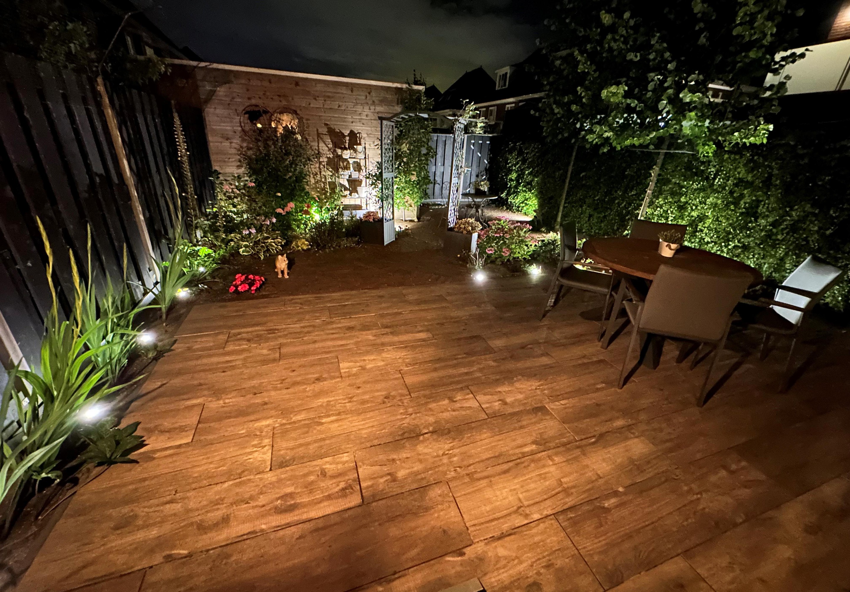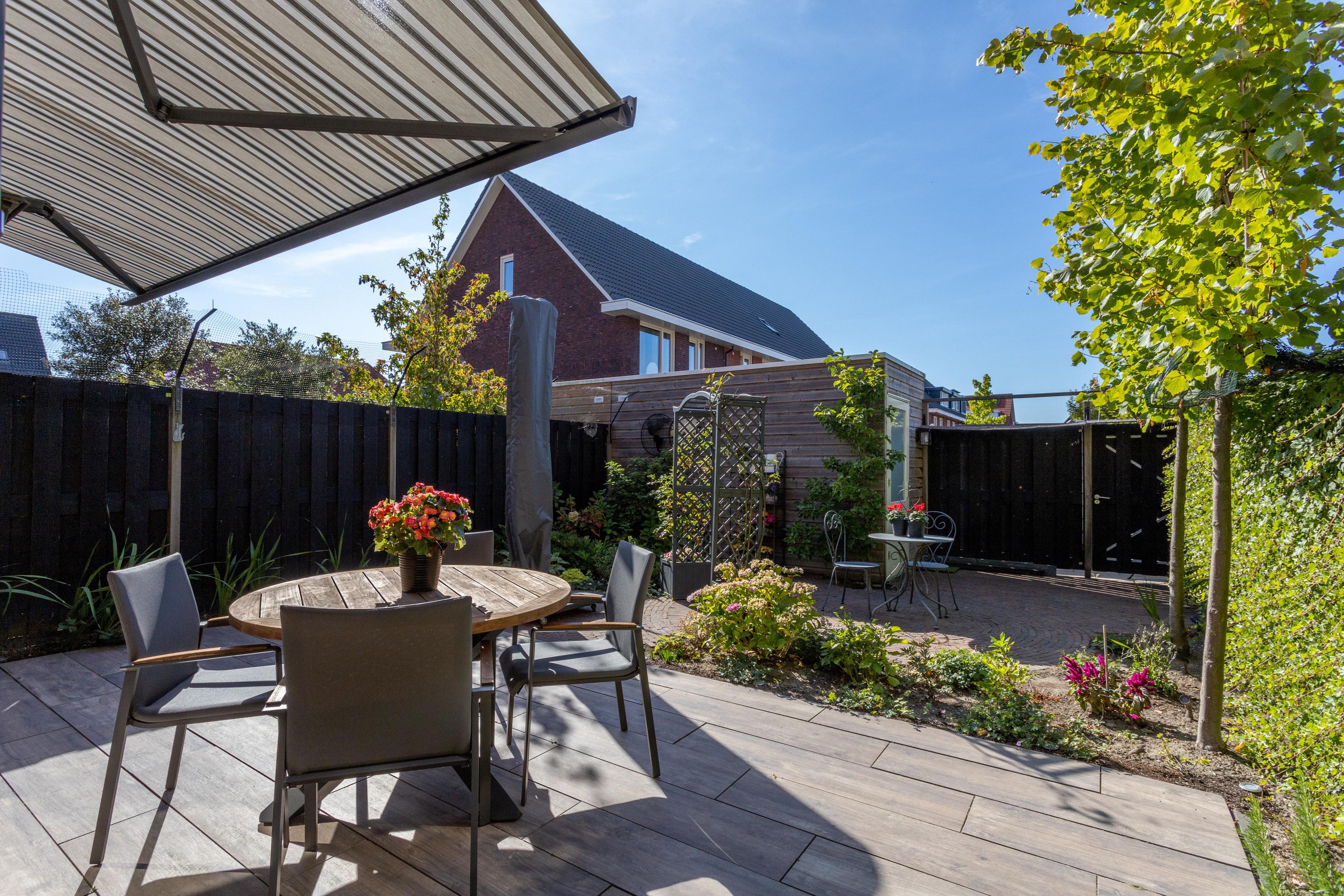 De voor- en achtertuin zijn bijzonder smaakvol aangelegd en ingericht. De achtertuin is gelegen op het zonnige westen en is voorzien van een houten berging met elektriciteit.