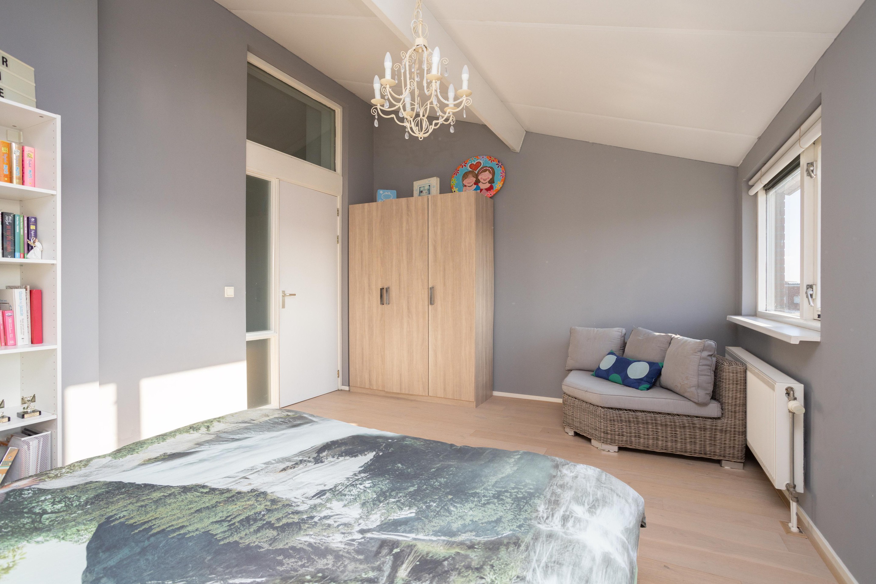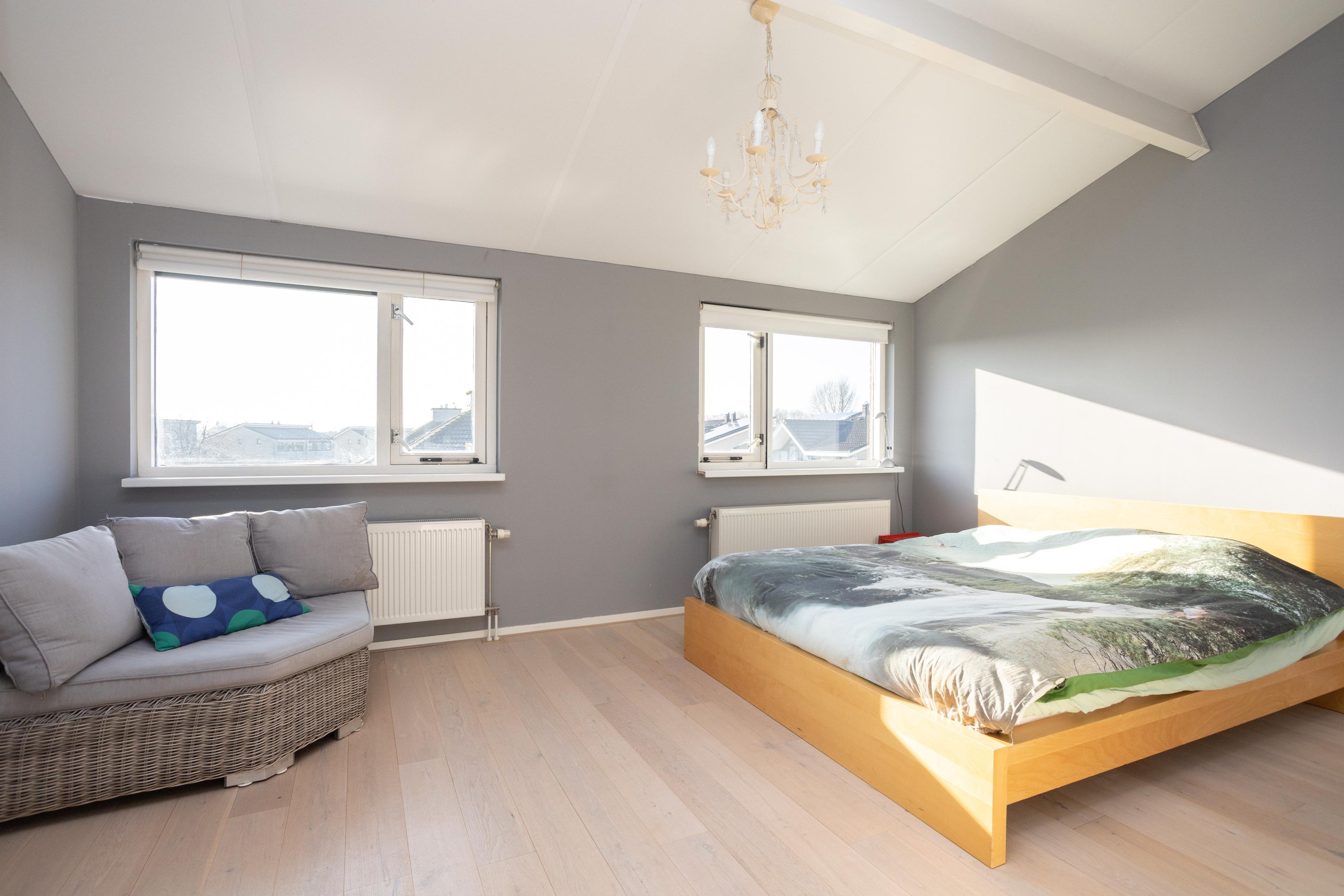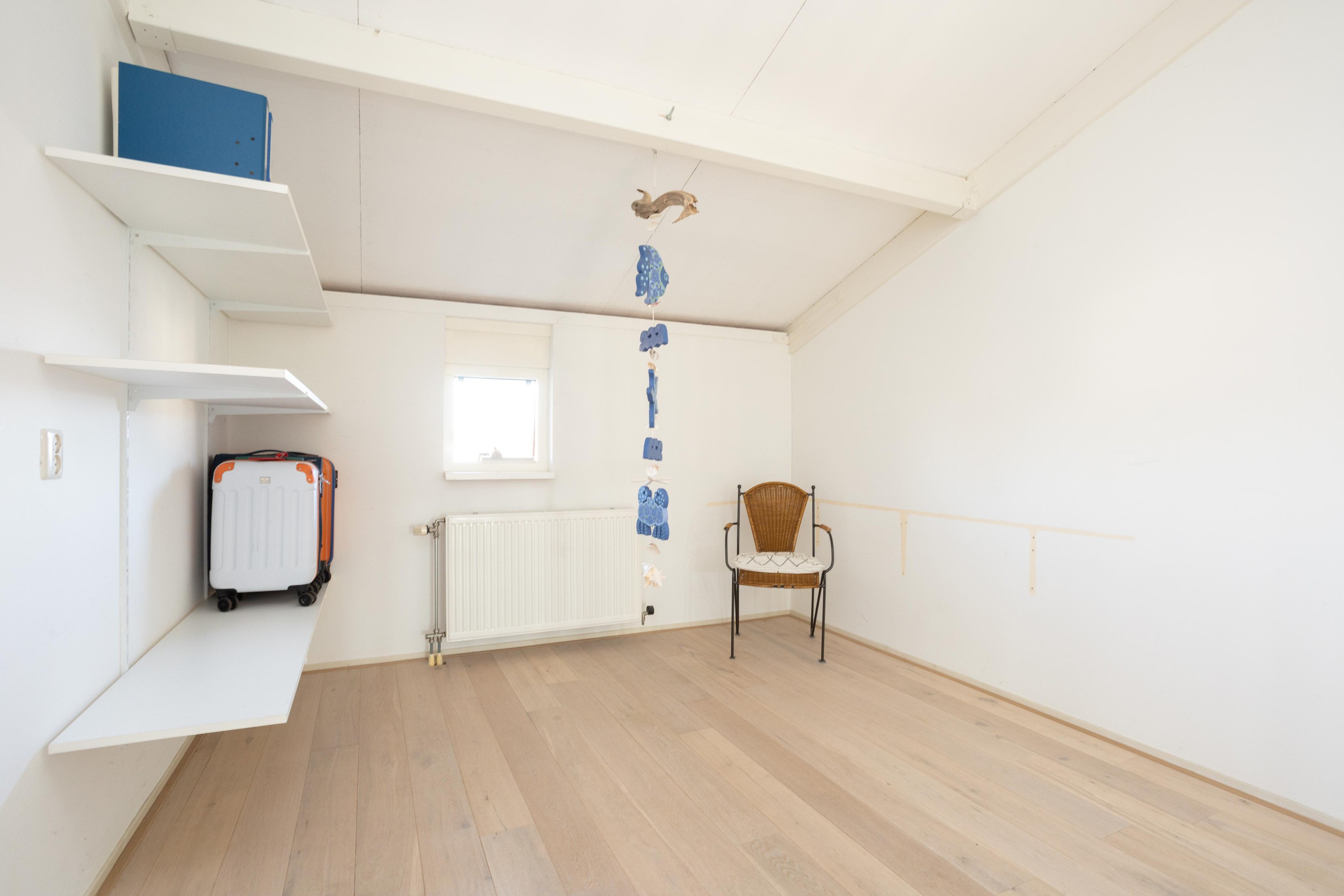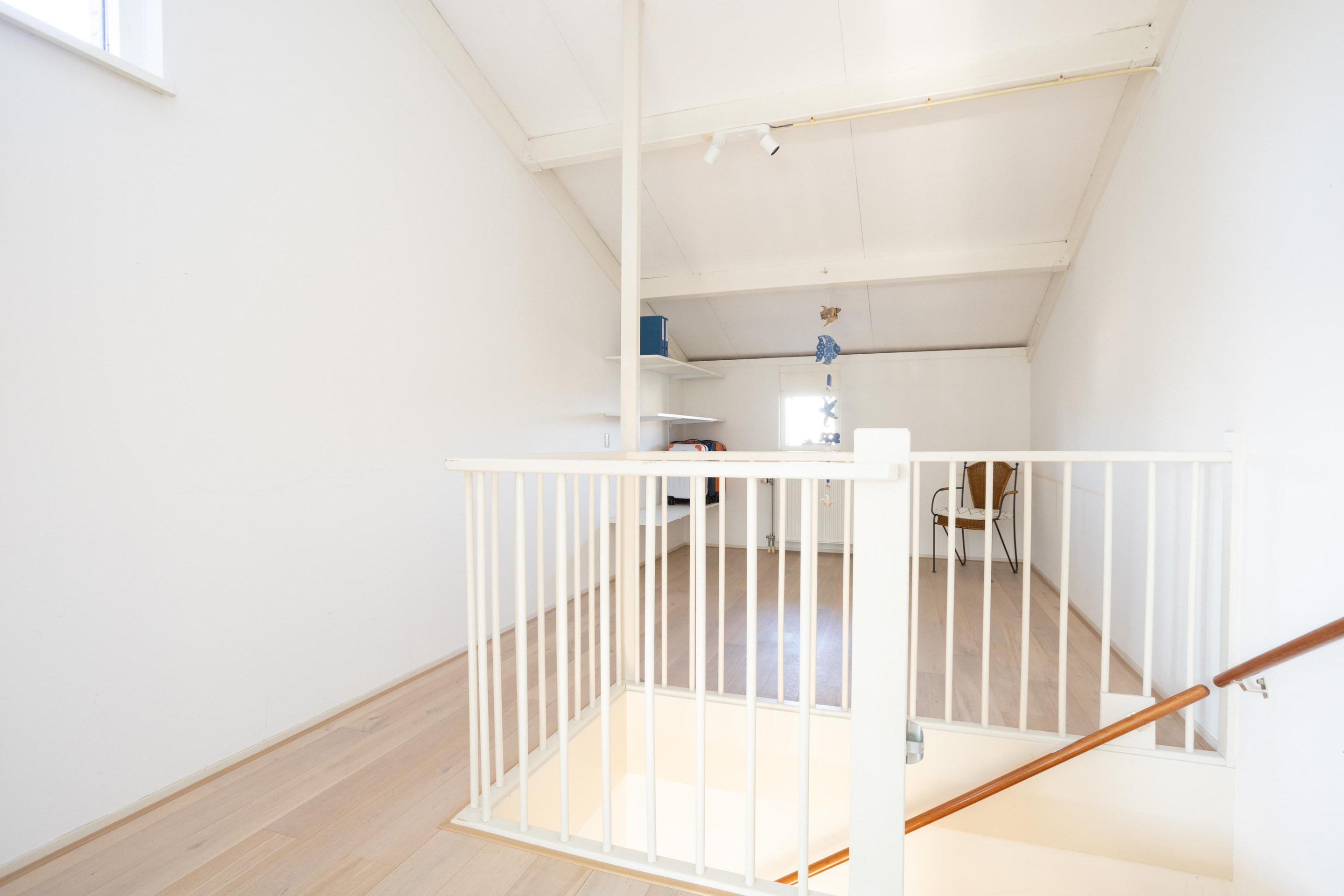 Dit is toch wel de verrassing van de woning. De voorzolder is nu open, zonder heel veel moeite zou hier nog een extra kamer kunnen worden gerealiseerd. Verder op deze verdieping een hele ruime 4e slaapkamer met op de vloer prachtig lamelparket.