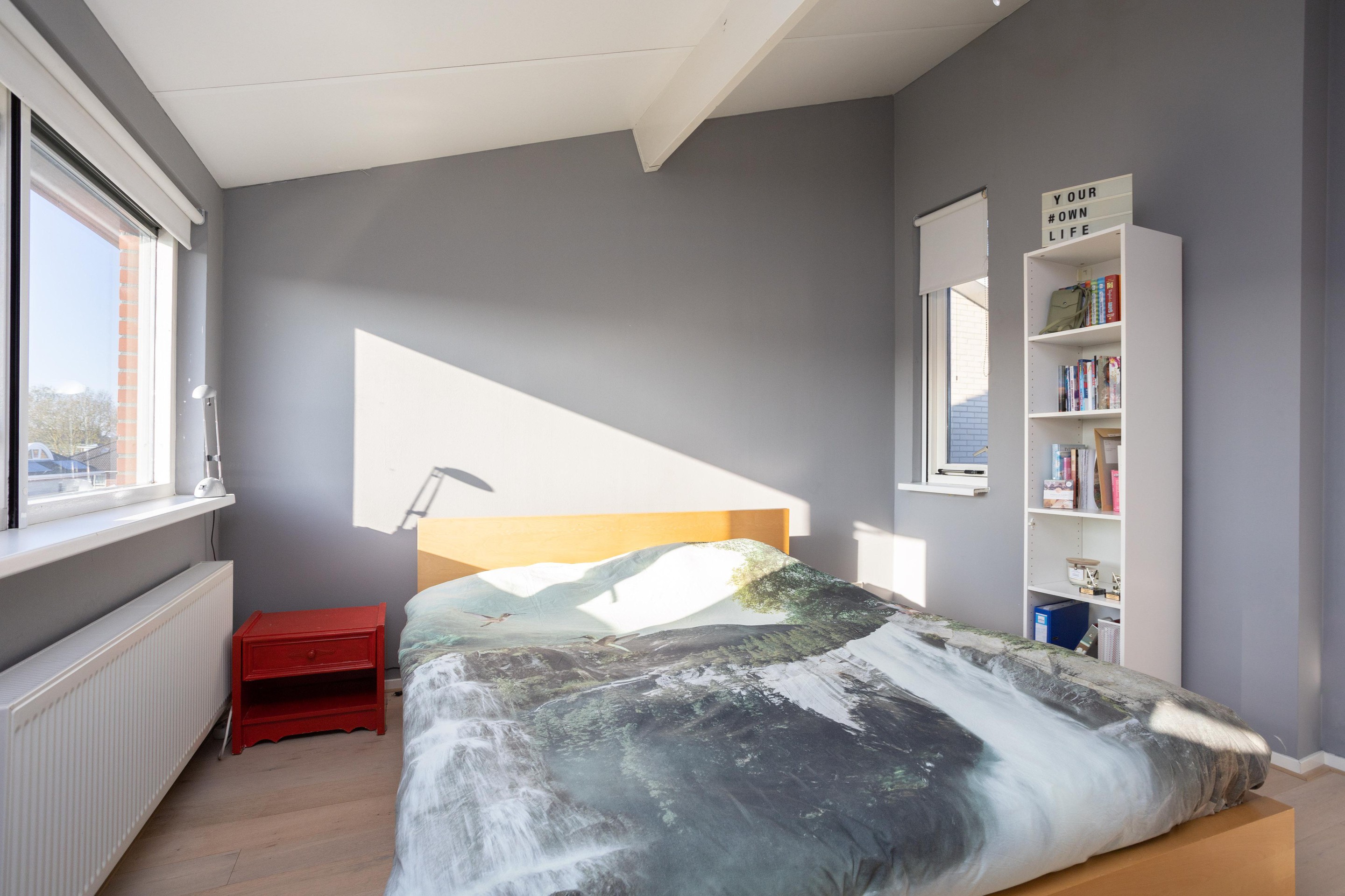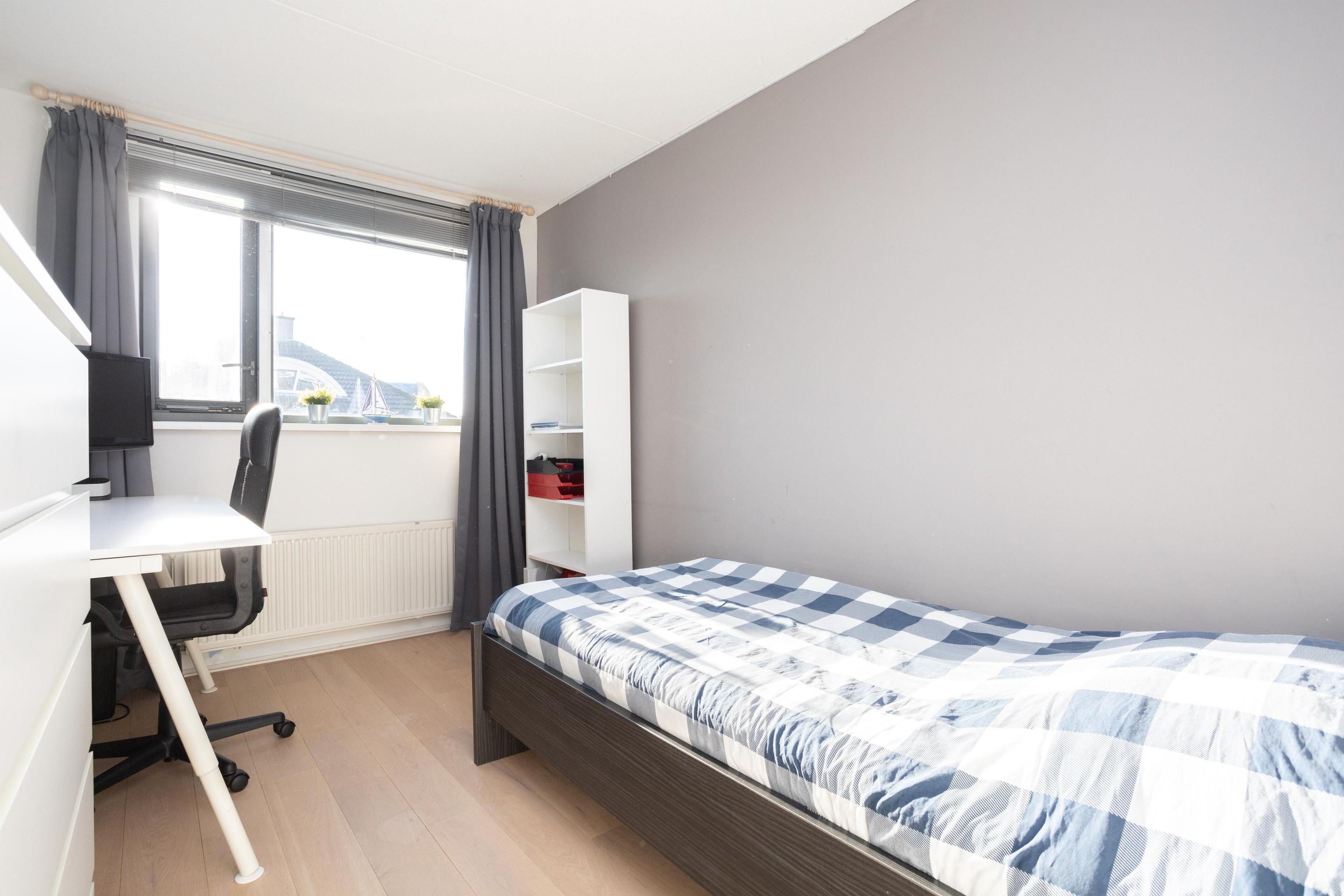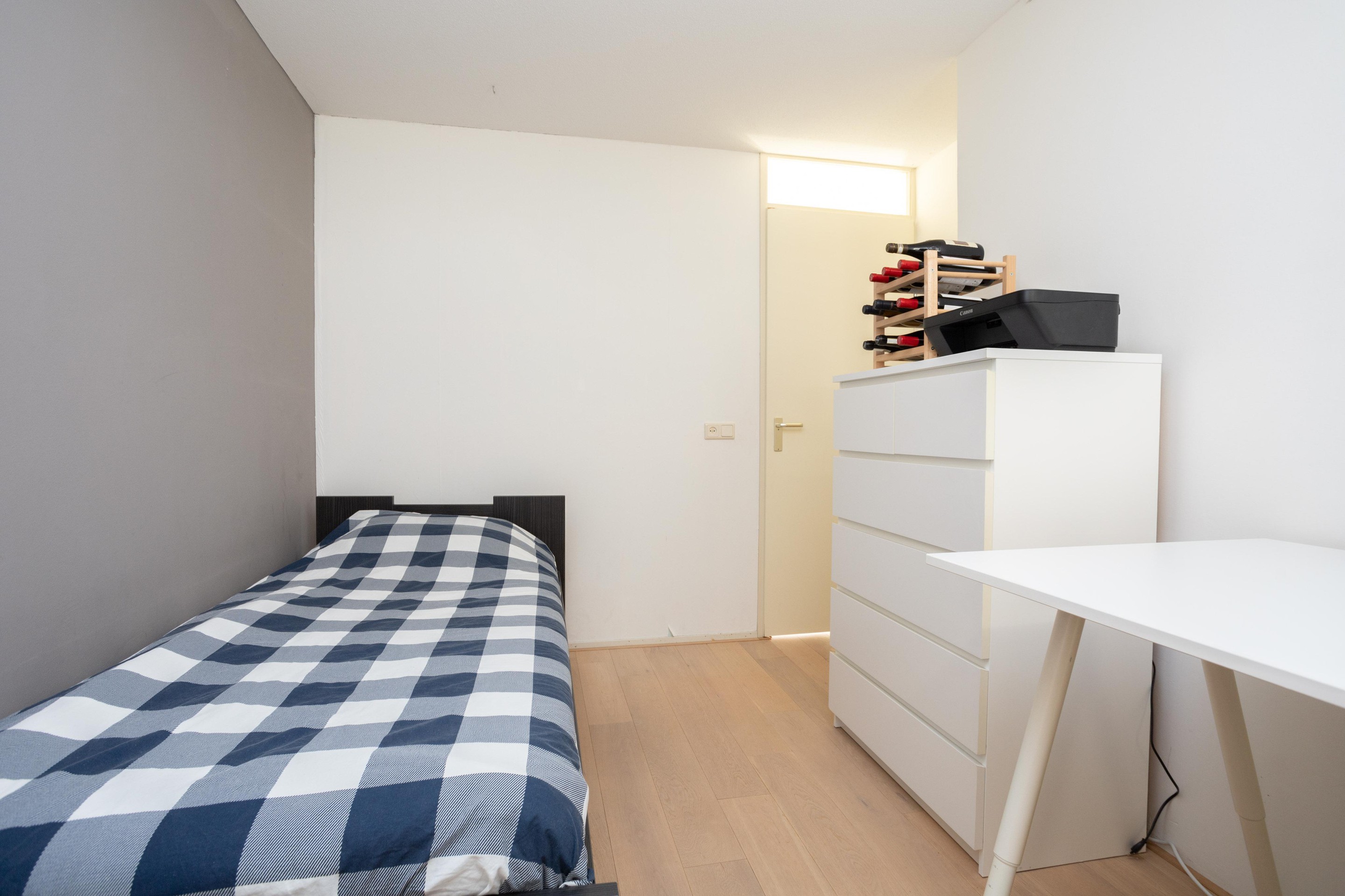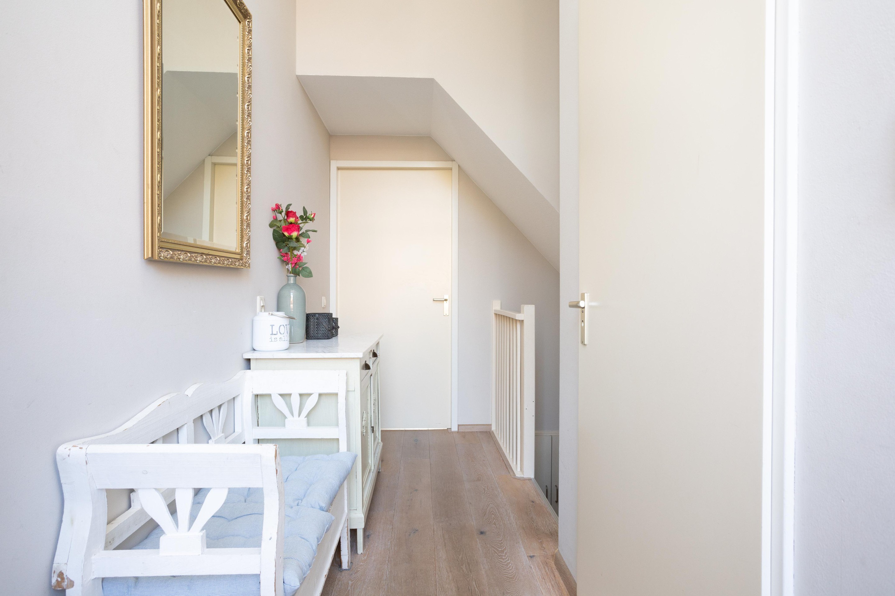 Dit is toch wel de verrassing van de woning. De voorzolder is nu open, zonder heel veel moeite zou hier nog een extra kamer kunnen worden gerealiseerd. Verder op deze verdieping een hele ruime 4e slaapkamer met op de vloer prachtig lamelparket.