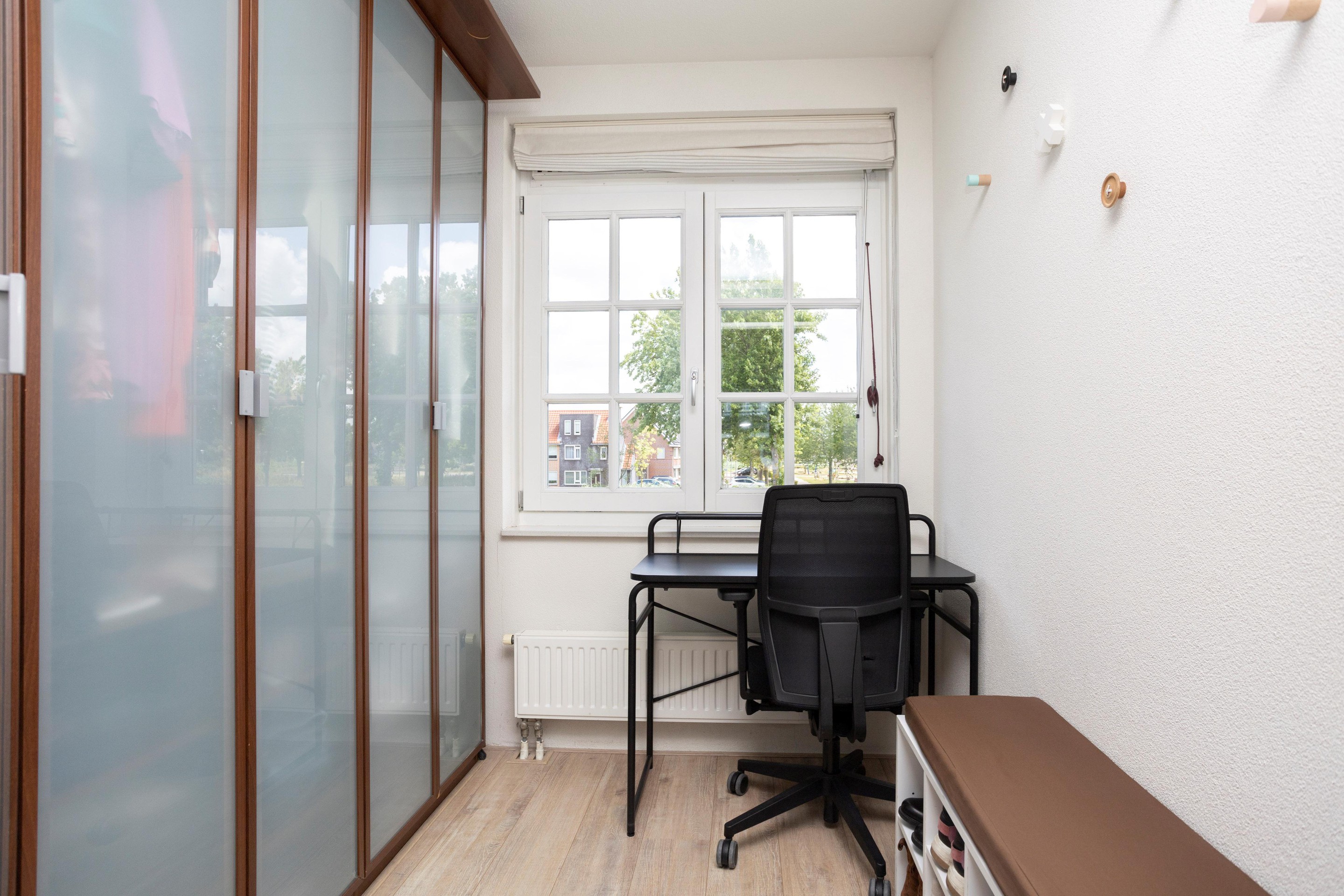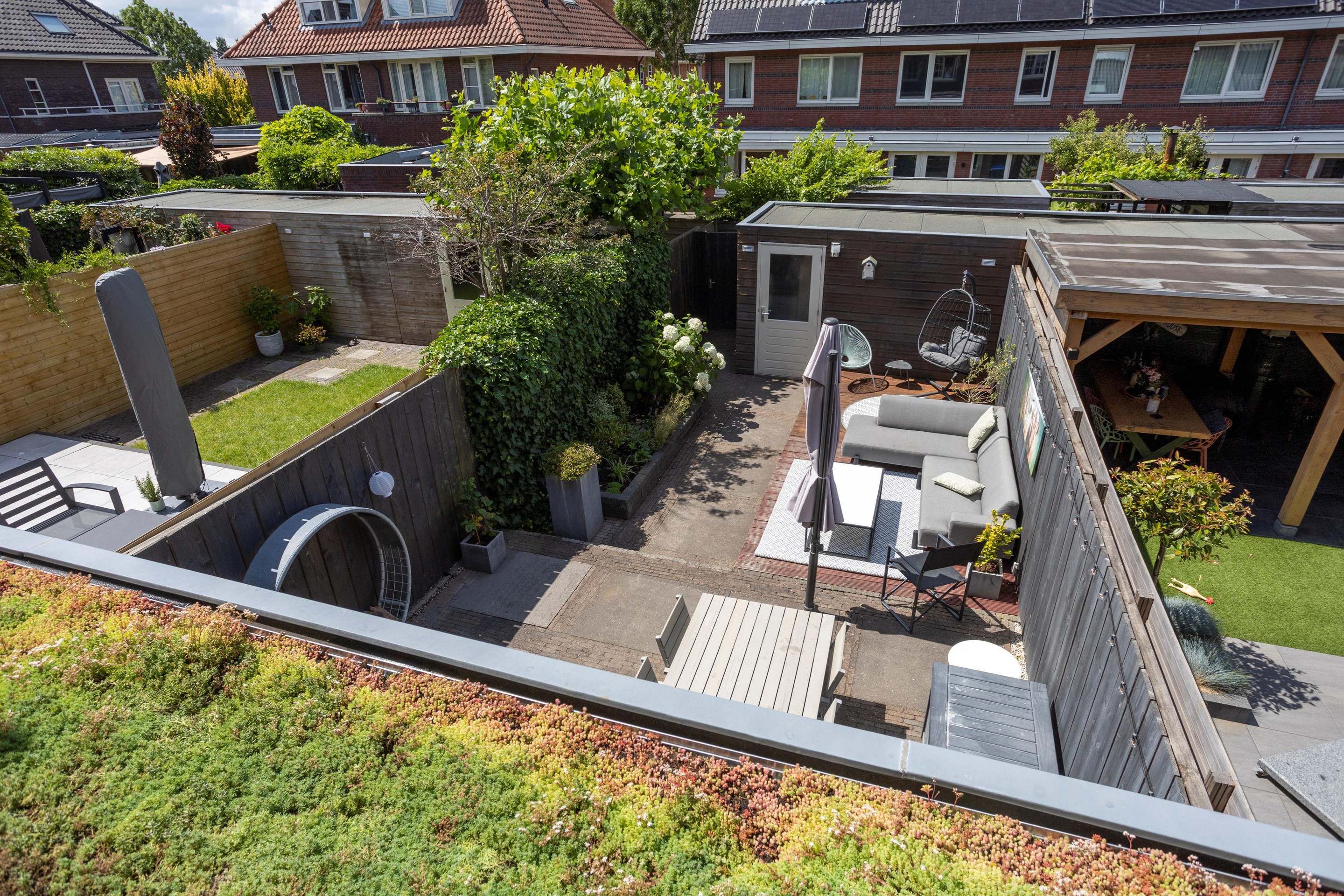 De verdieping is direct vanuit de woonkamer te bereiken. Naast een ruime overloop zijn er op deze verdieping 3 volwaardige slaapkamers en een badkamer. De betegelde badkamer is keurig afgewerkt en beschikt over een royale inloopdouche, bad, wastafelmeubel en een 2e toilet. Tevens is er op deze verdieping een ruimte met opstelling voor de wasmachine, droger en de cv-combiketel (ATAG 2016). Geniet van het uitzicht op het groene sedumdak (uit 2024) vanuit de charmante, typische ramen.